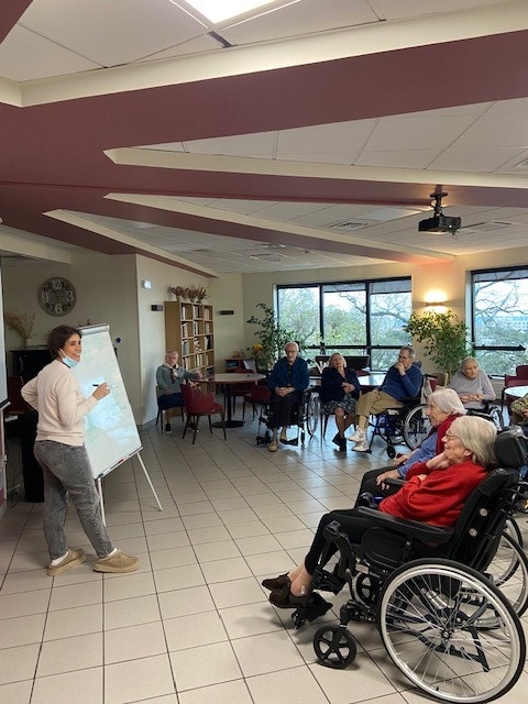 L’animatrice organise régulièrement des jeux de mots pour travailler la mémoire.