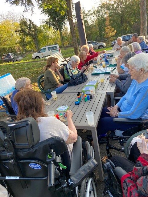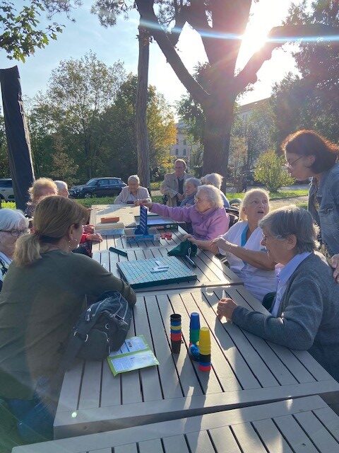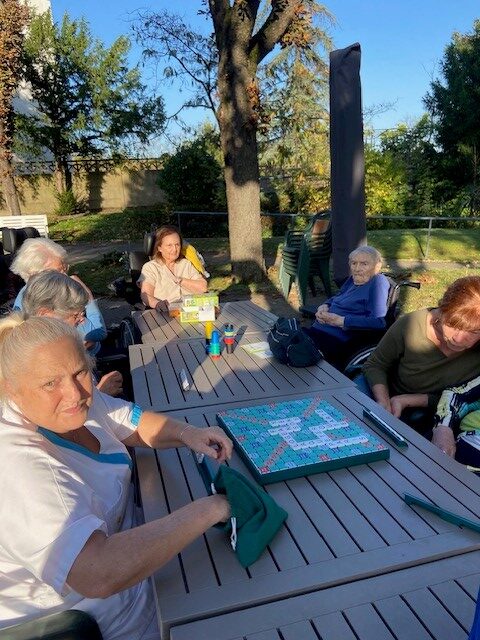 Le lundi 28 octobre, nous avons profité des rayons de soleil pour faire des jeux de société dans notre beau parc.