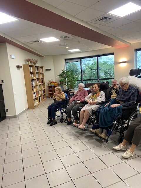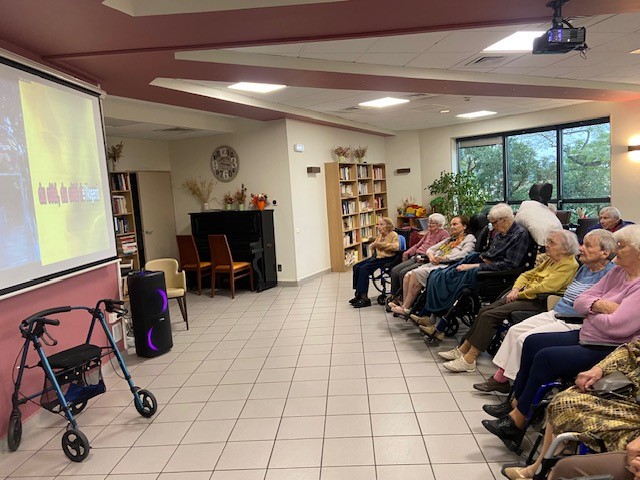 Régulièrement, nous organisons des karaokés aux Amandines. Les résidents apprécient : ça chante haut et fort !