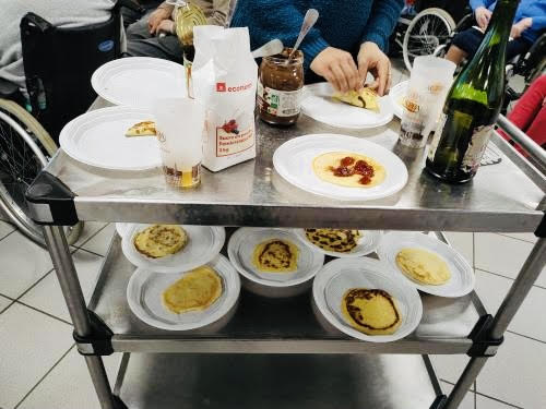 Elisabeth au fourneau a préparé une bonne centaine de crêpes qui ont été toutes avalées. L’après-midi était très festive avec de la musique et beaucoup de monde dans le salon du Framboisier. Nous avons fini par un jeu de questions sur la chandeleur en apprenant de nombreuses anecdotes.