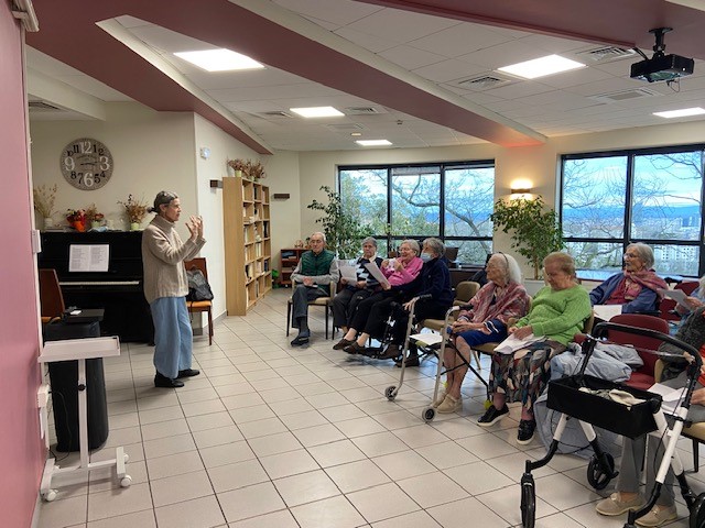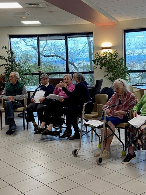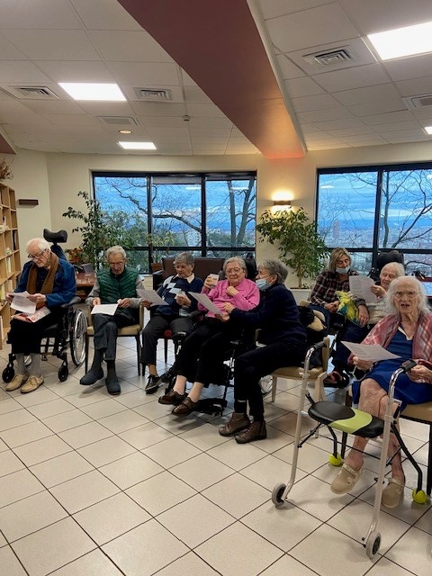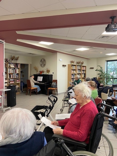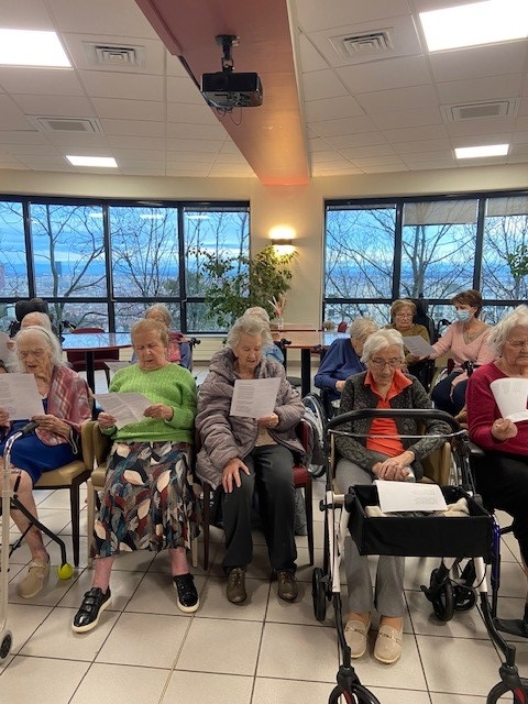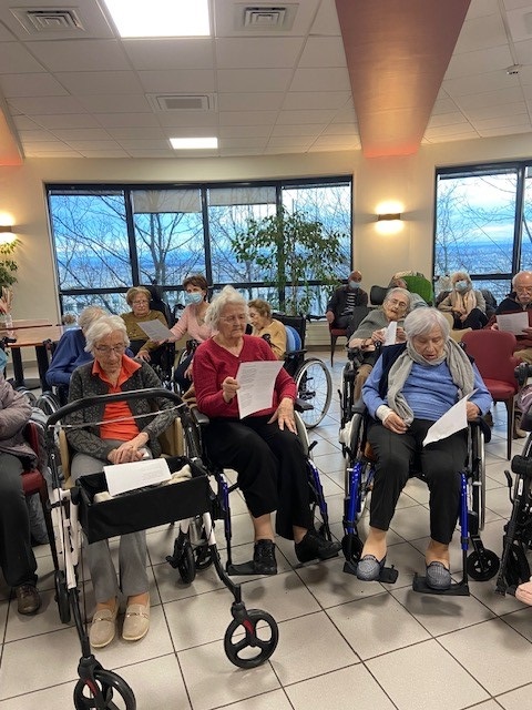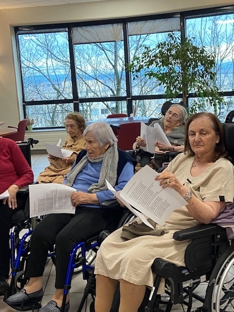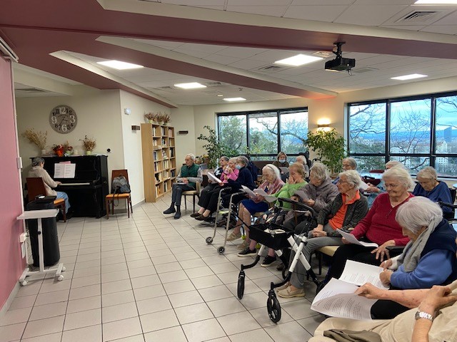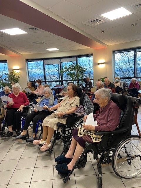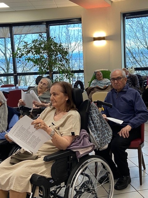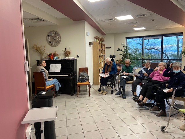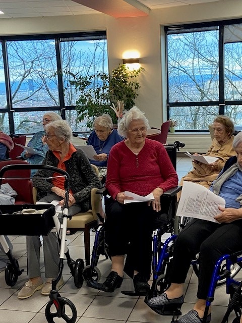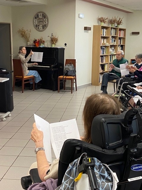La chorale des Amandines « La Cantadine » se réunit une fois par mois dans notre salon Confluence. Nous remercions beaucoup Mme COMTE Anne-Marie, Représentante des familles au CVS qui participe toujours à l’animation de cette chorale en jouant notamment du piano et en proposant des chants. La chorale permet de « mettre en mouvement » en douceur et avec beaucoup de bienveillance chacun des participants.