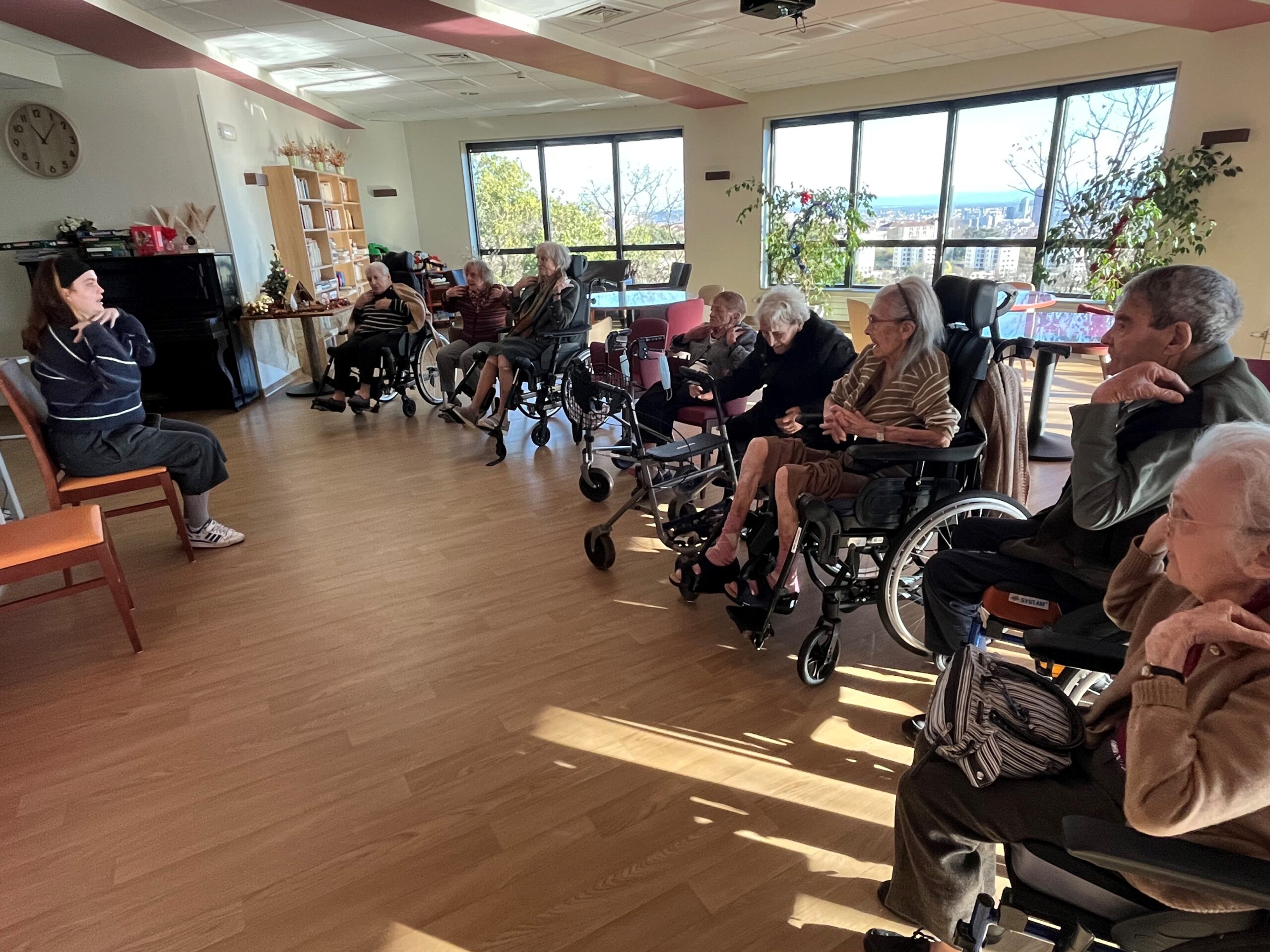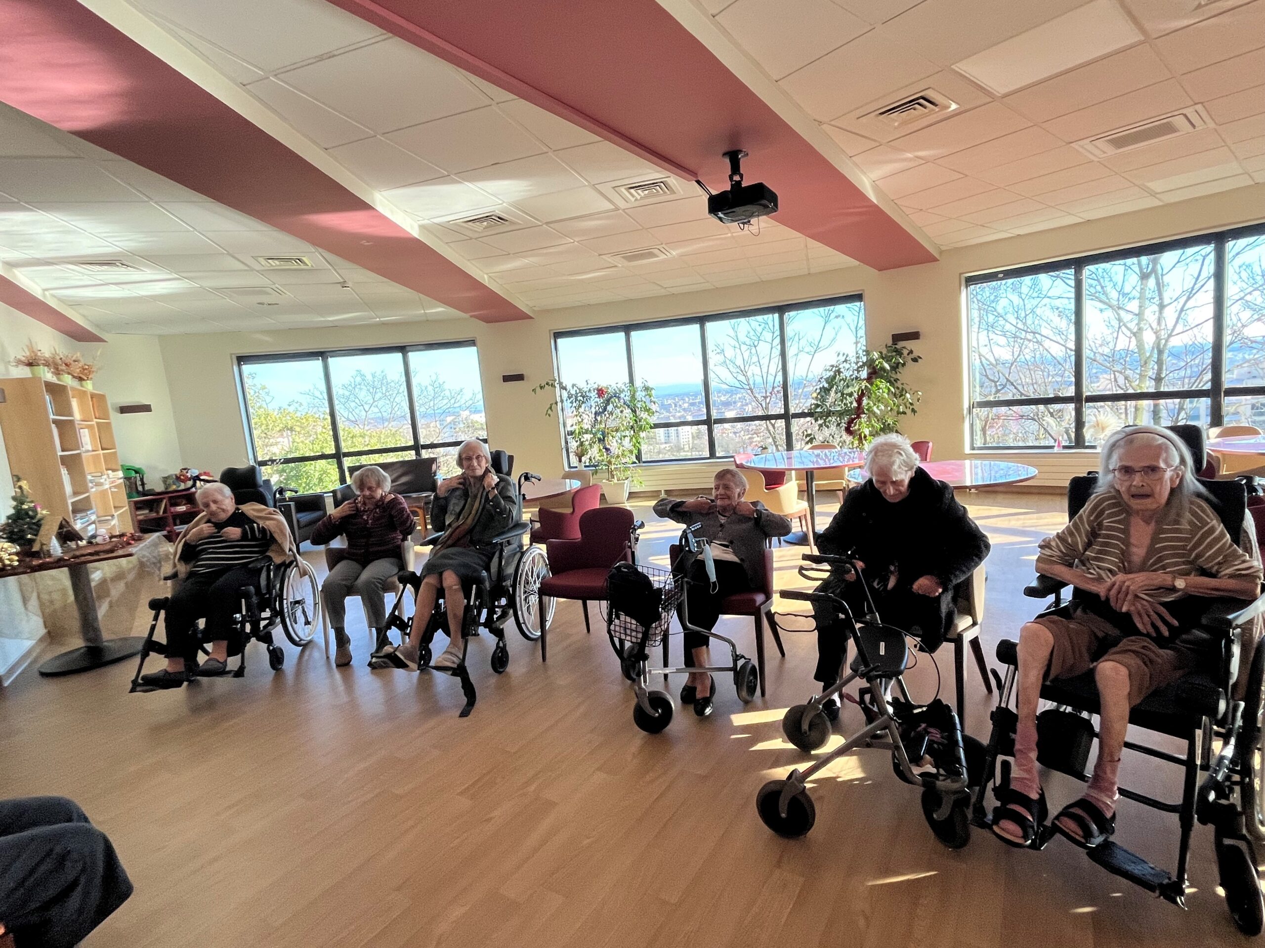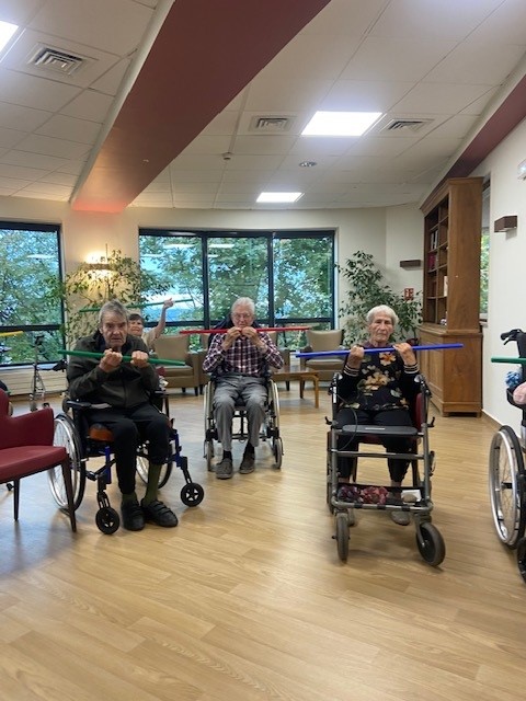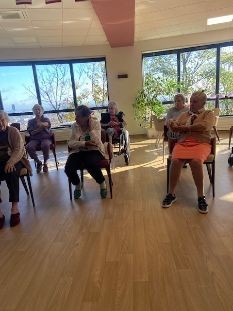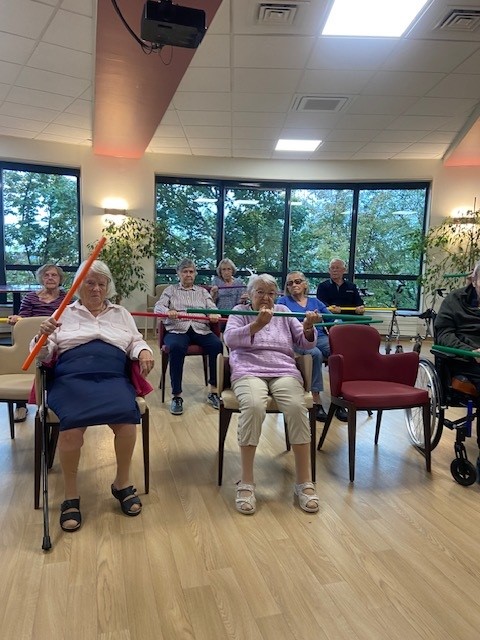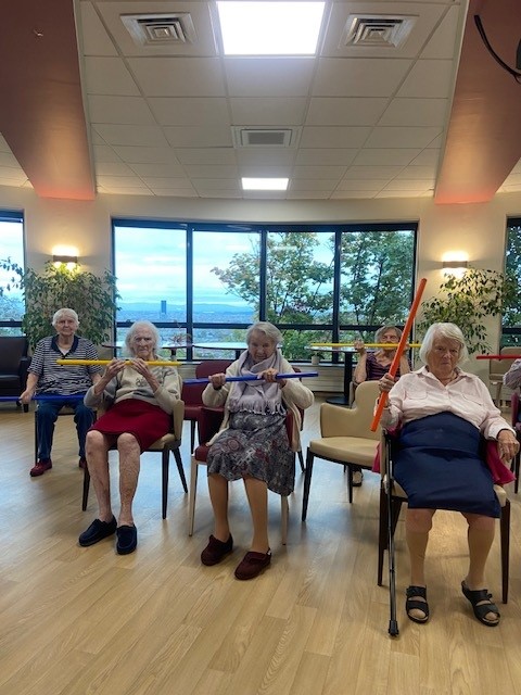 Le bien-être des résidents passe aussi par le mouvement. C’est dans cet esprit que l’animatrice propose régulièrement des ateliers de gymnastique douce, des rendez-vous attendus qui allient activité physique, convivialité et bonne humeur.