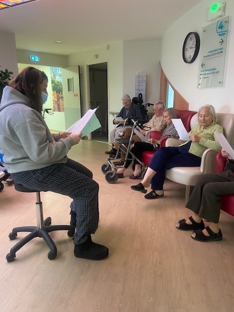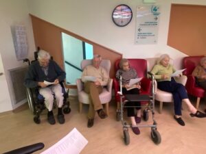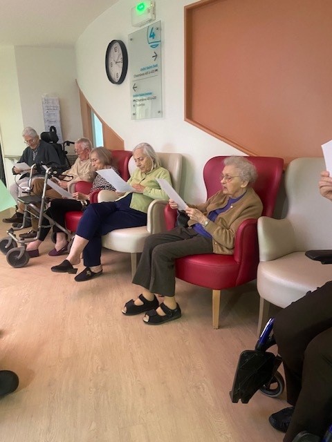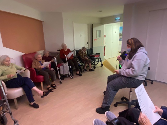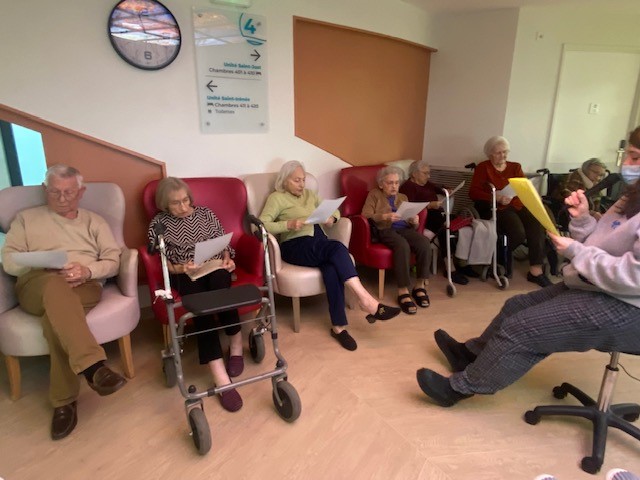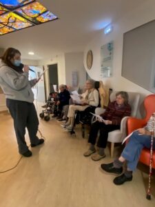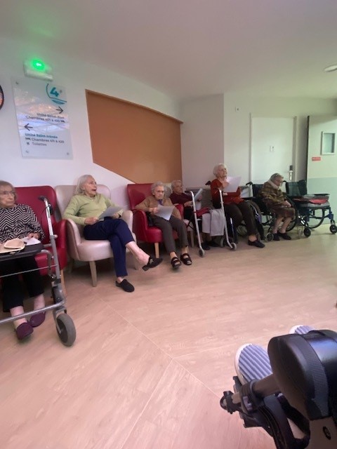 Les résidents ont chanté avec enthousiasme, partageant des chansons connues et chargées de souvenirs.