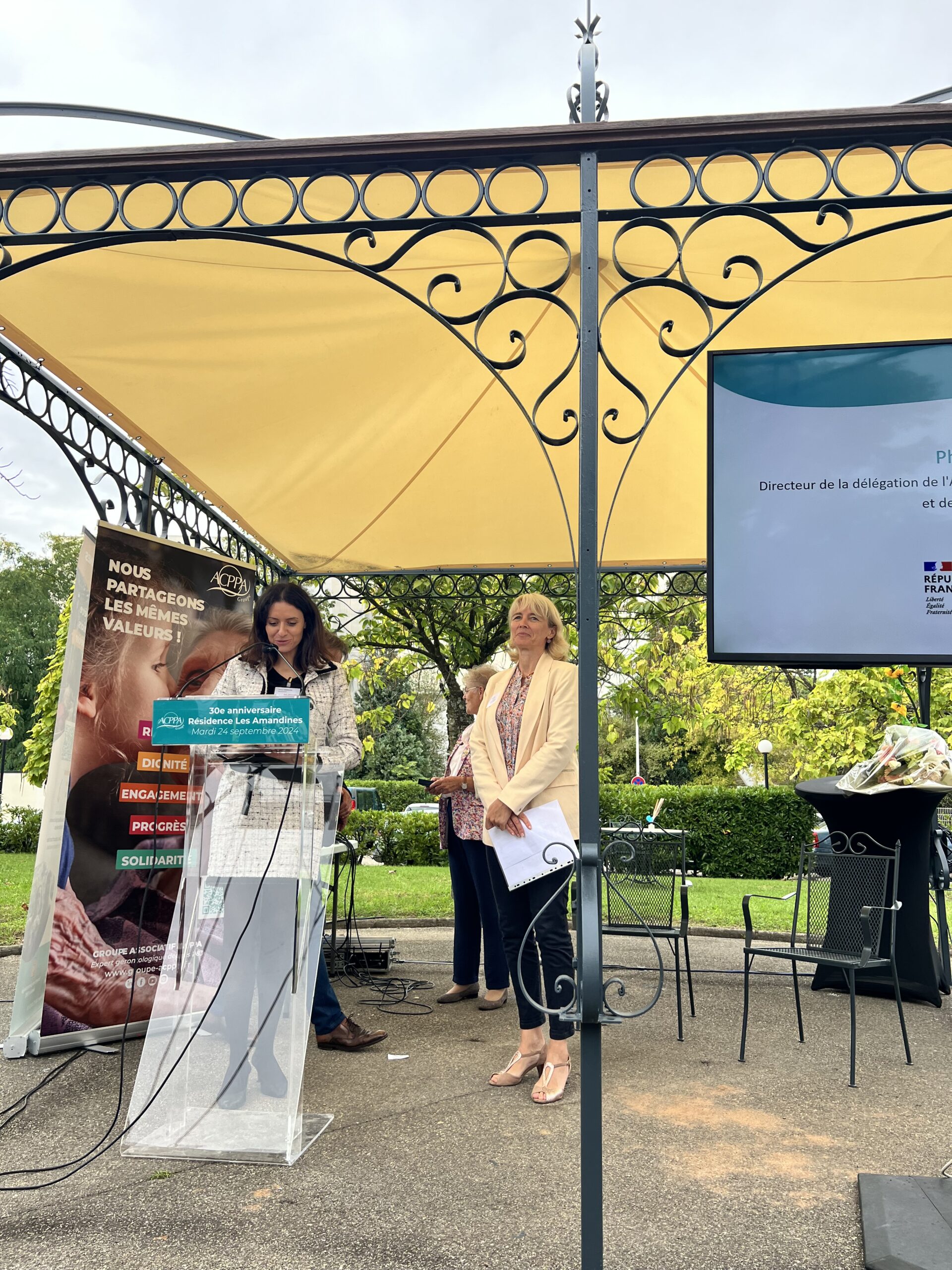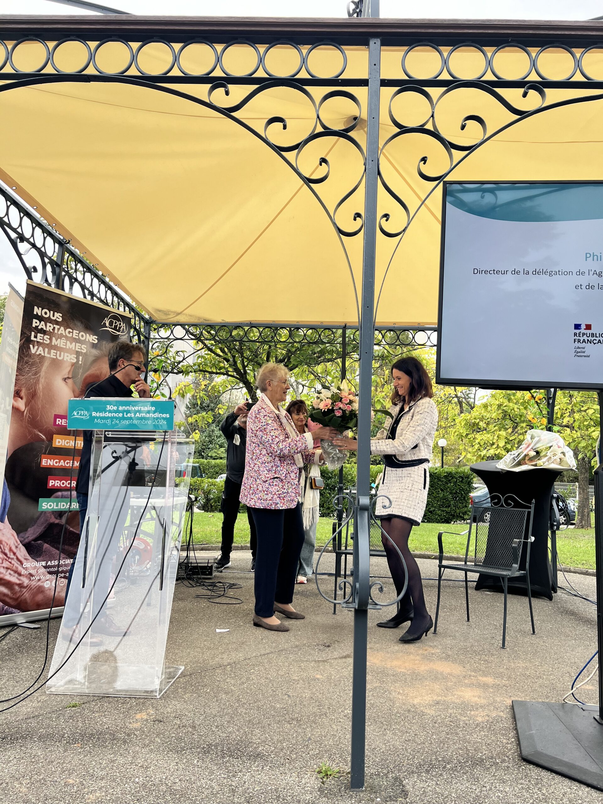 Le mardi 24 septembre, le matin, nous avons fêté les 30 ans des Amandines avec nos partenaires. Une occasion pour revenir sur l’histoire de l’établissement, de partager les projets à venir et de remercier toute l’équipe des Amandines. Nous avons profité de cette occasion pour remettre la médaille du travail à Mme LUCA, Cadre de santé aux Amandines depuis 13 ans et depuis 20 ans dans le Groupe. Nous saluons l’engagement et la participation de M. GUETAT Directeur de la délégation départementale du Rhône et de la Métropole de Lyon à l’Agence Régionale de Santé Auvergne Rhône Alpes, M. BLANCHARD Vice-Président de la Métropole de Lyon Délégué à la Santé, Personnes âgées et personnes en situation de handicap, Mme GEORGEL, Maire du 5ème arrondissement de Lyon, la présidente de l’ACPPA Mme COMTE Brigitte et M. GUIAVARCH, Directeur Général du groupe ACPPA.