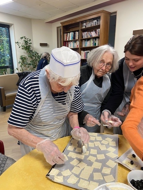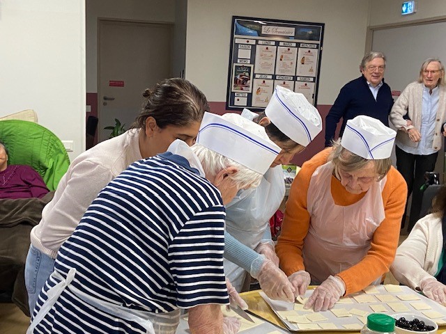 Les ateliers cuisine stimulent les nombreux sens : l’odorat, le goût, la vue et le toucher. Ils favorisent également la mémoire, notamment à travers les échanges autour des recettes, des astuces et des souvenirs familiaux. Ces moments sont riches en discussions et en convivialité.