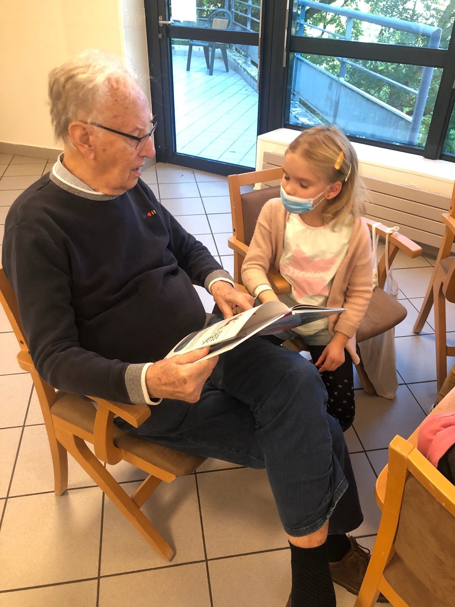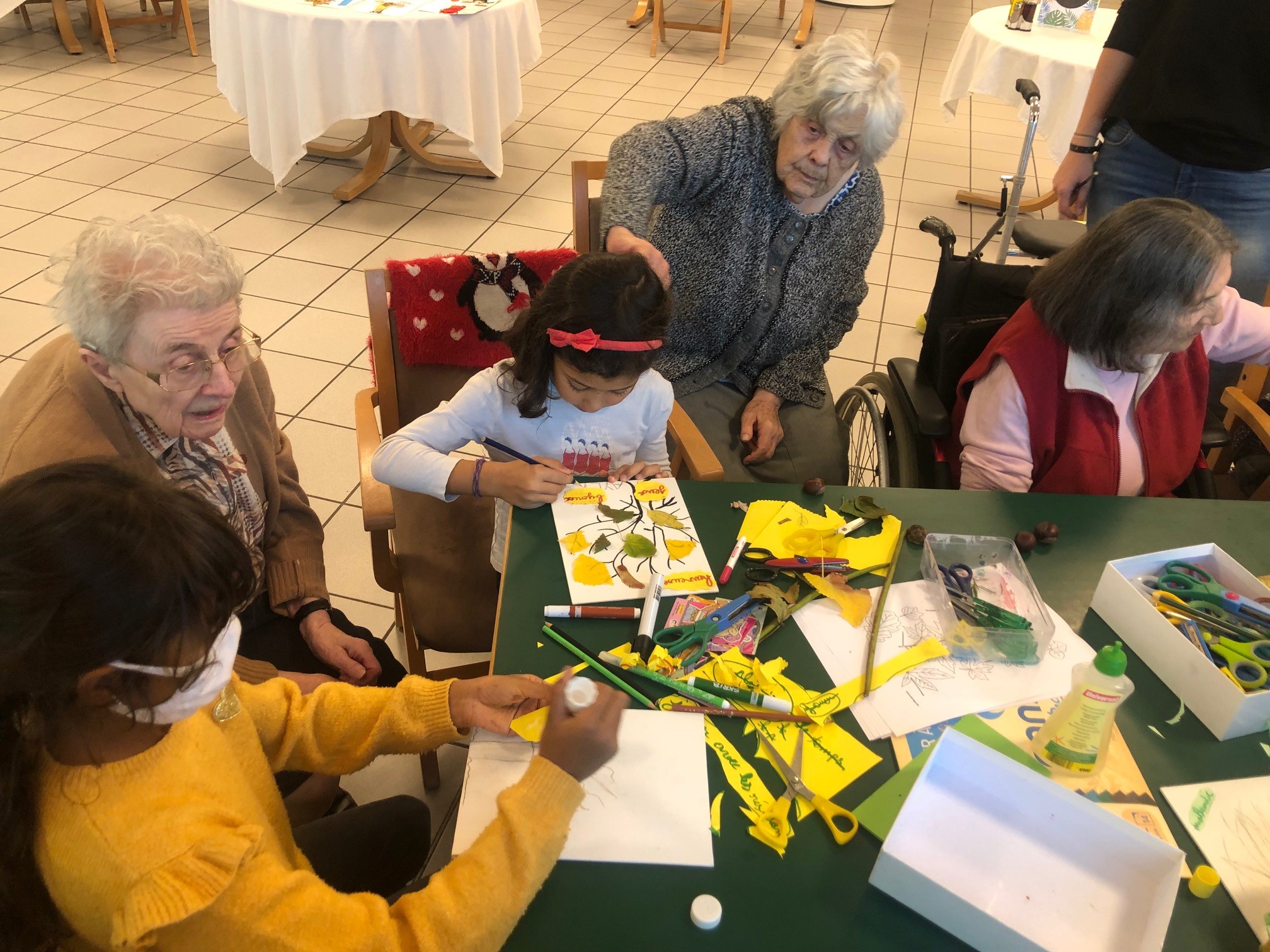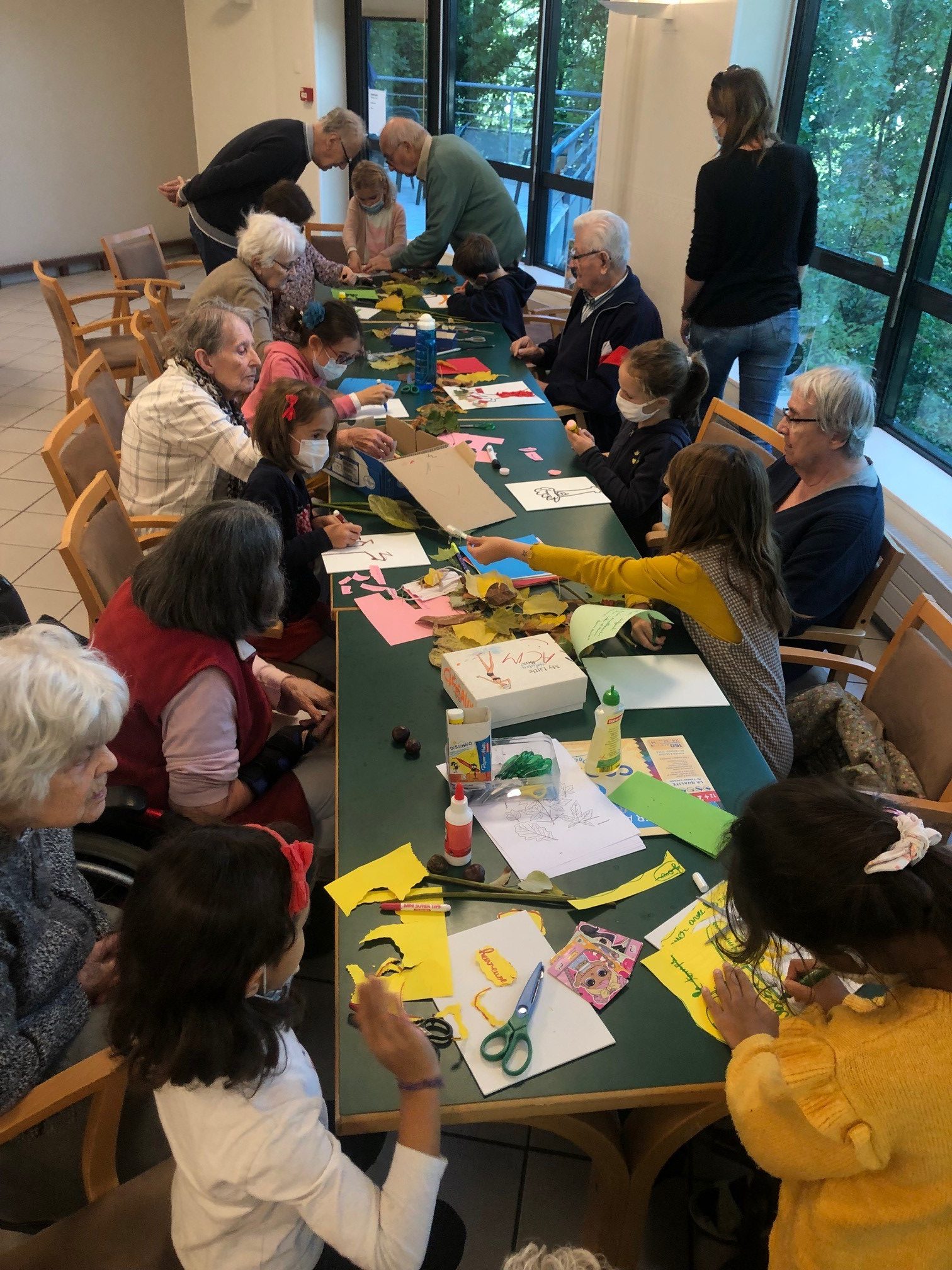 Les mercredis, tous les 15 jours, nous avons la visite d’un groupe d’enfants de la Maison de la Jeunesse et de la Culture (MJC) de Saint-Just. Nous avons partagé un premier après-midi pour se rencontrer. Les enfants ont bien participé aux différents jeux. Un bon moment passé ensemble qui s’est clôturé par un goûter partagé. Les enfants nous ont servi les boissons.