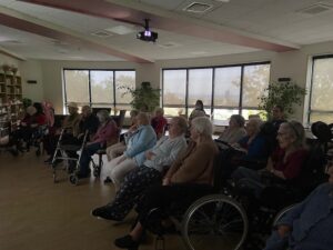 De temps en temps, nous organisons des séances cinéma. Elles offrent une parenthèse de détente et d’évasion, tout en recréant l’ambiance conviviale d’une salle de cinéma sans quitter l’établissement.