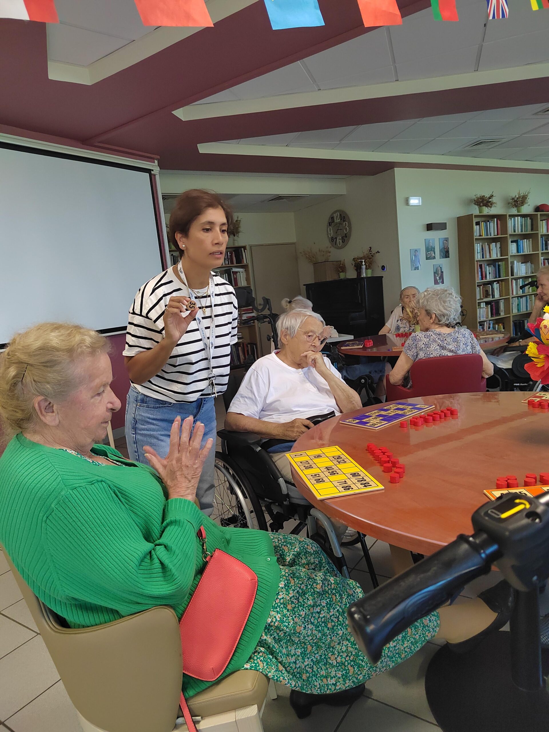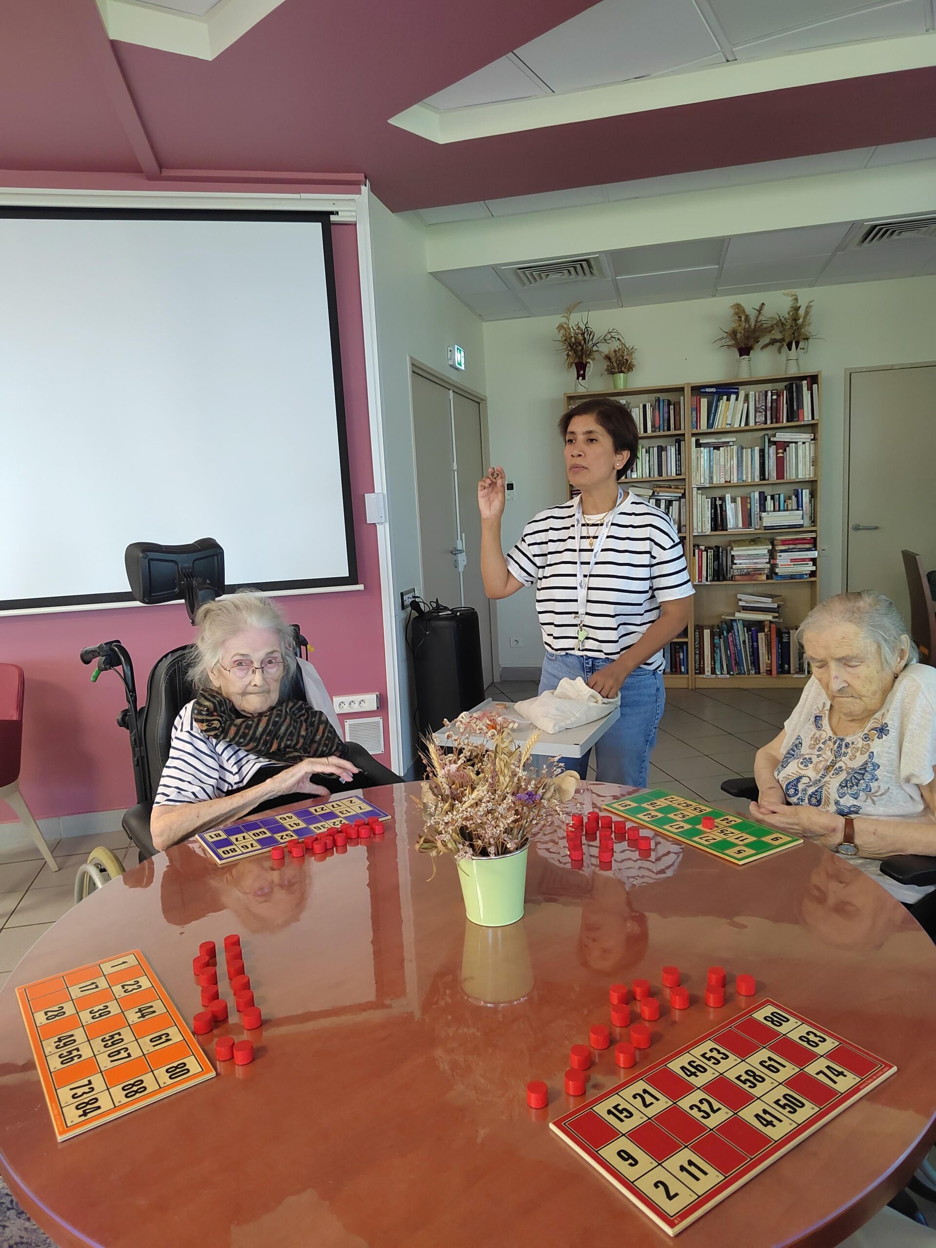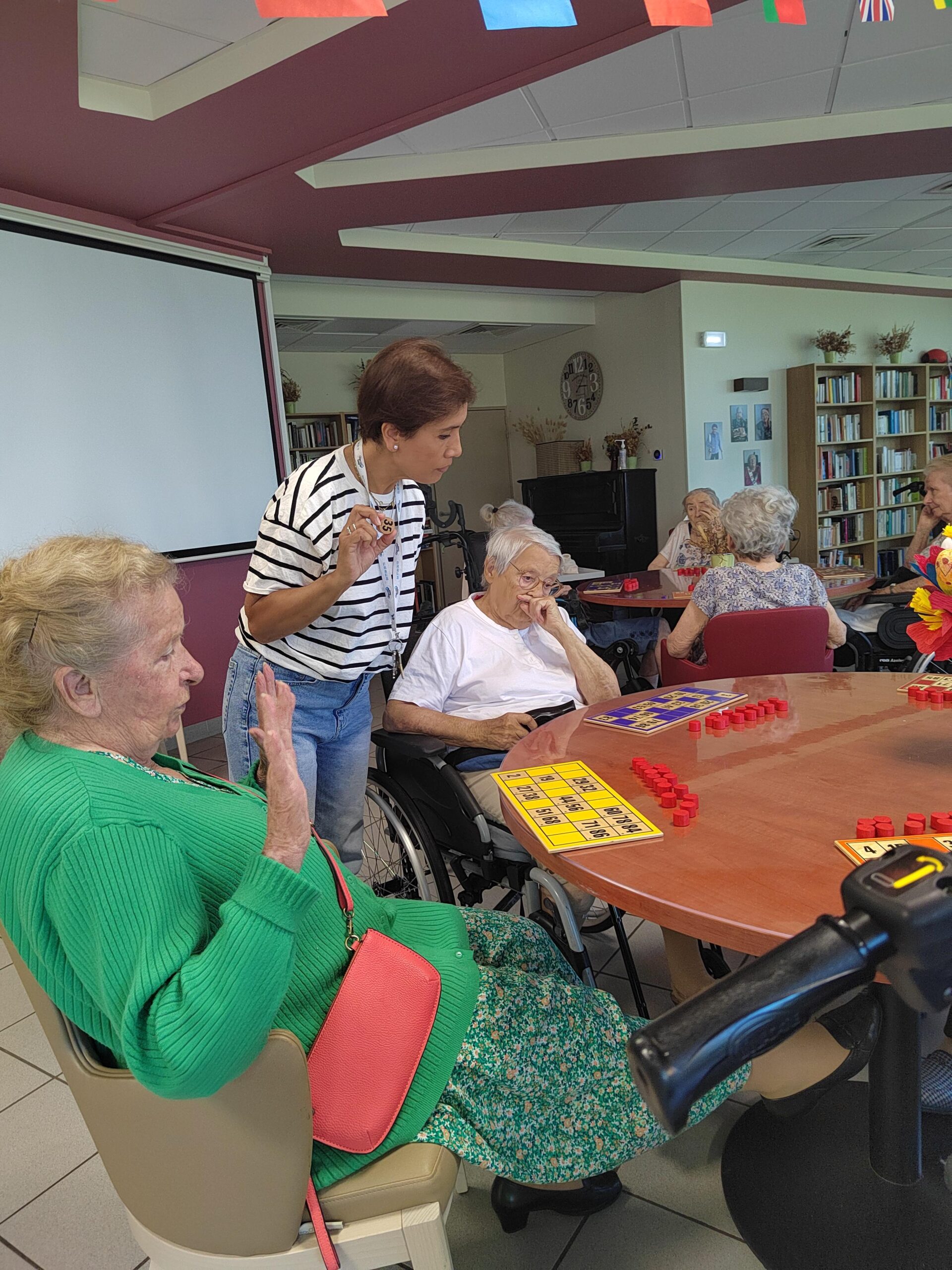 Habiba, la nouvelle animatrice des Amandines en septembre, suite au départ de Clara a réalisé un loto avec une vingtaine de résidents dans le salon Confluence aux Amandines le vendredi 24 juillet. Un loto très dynamique avec une bonne participation de tous les résidents et proches présents.