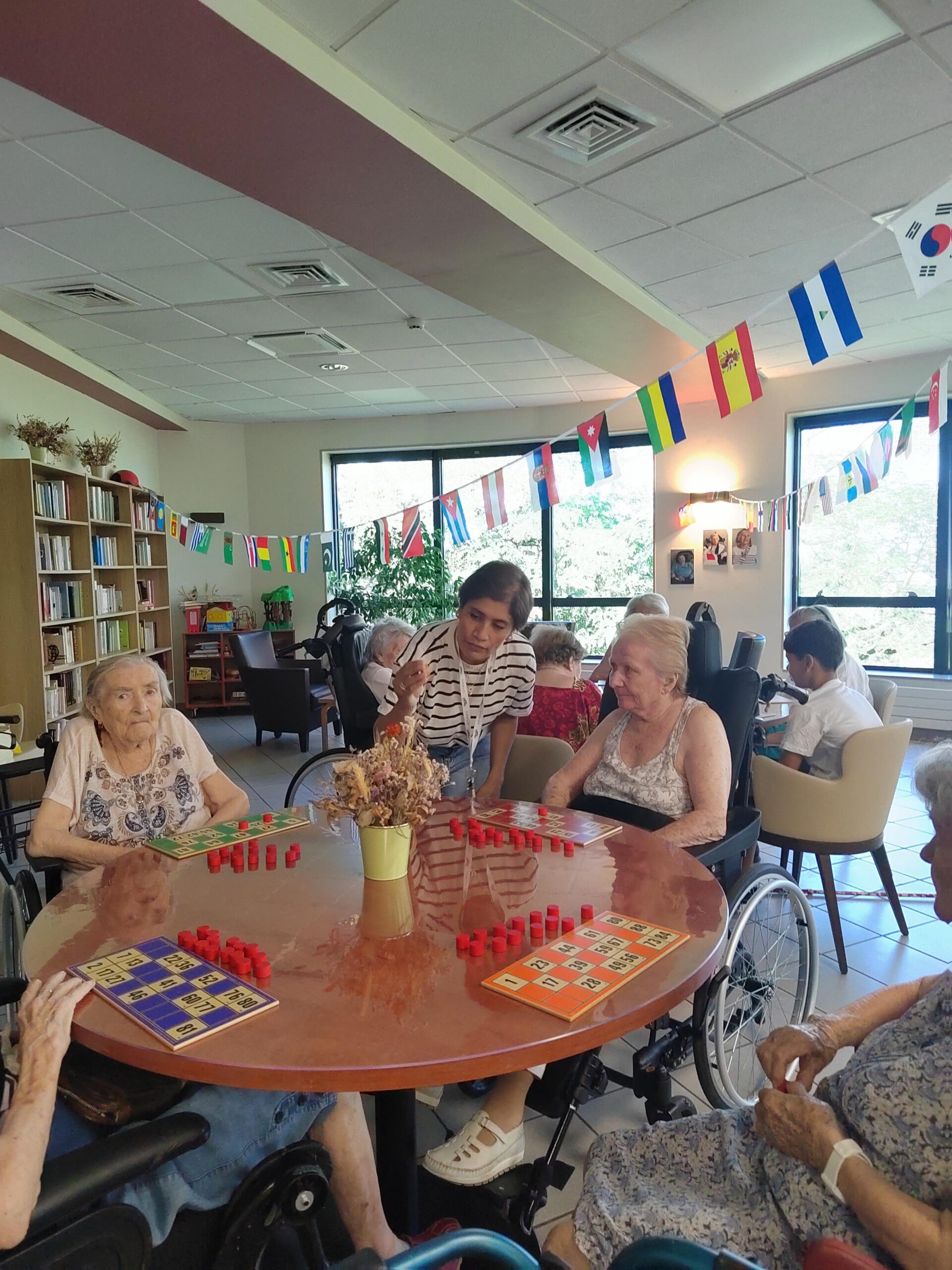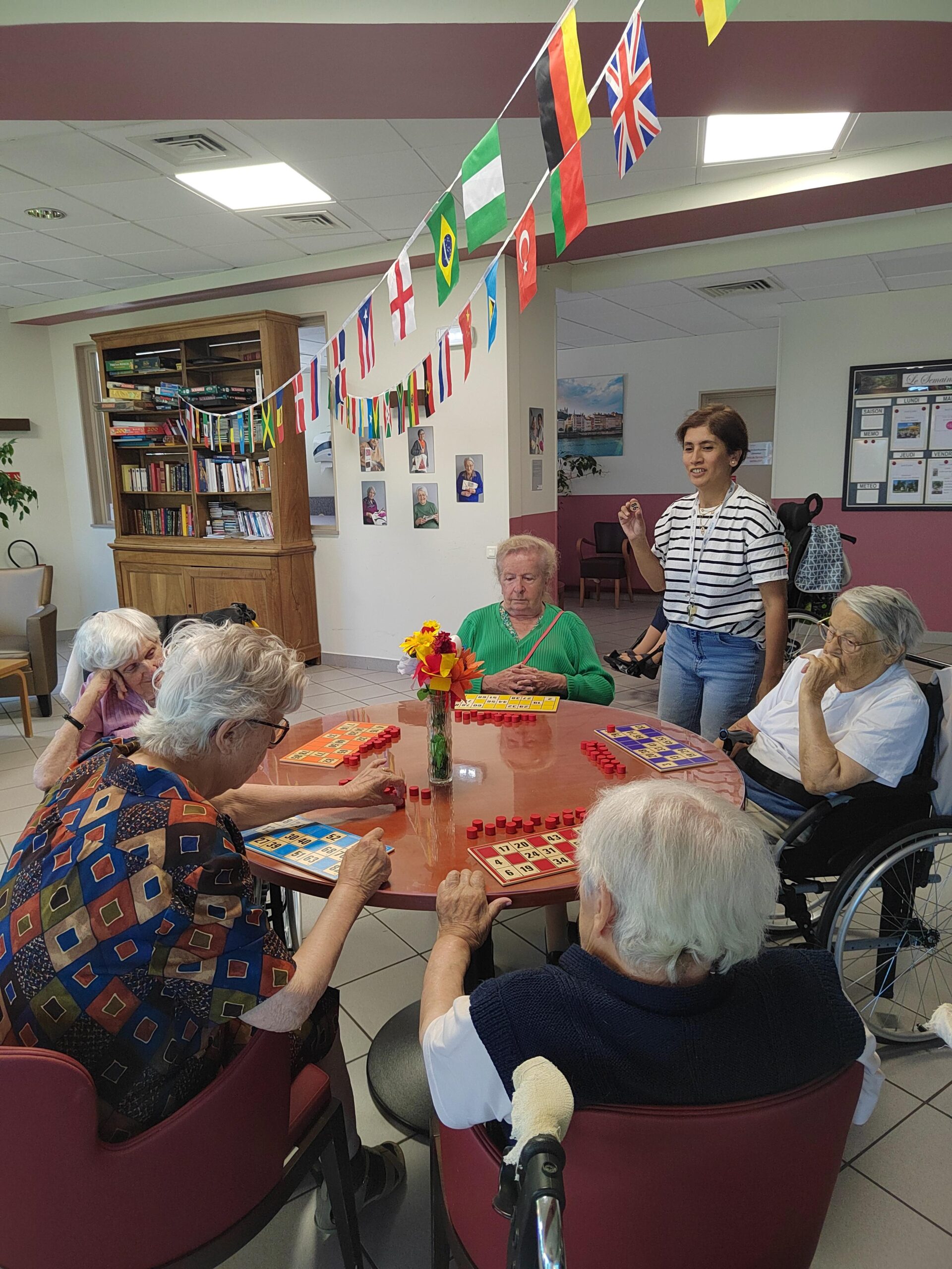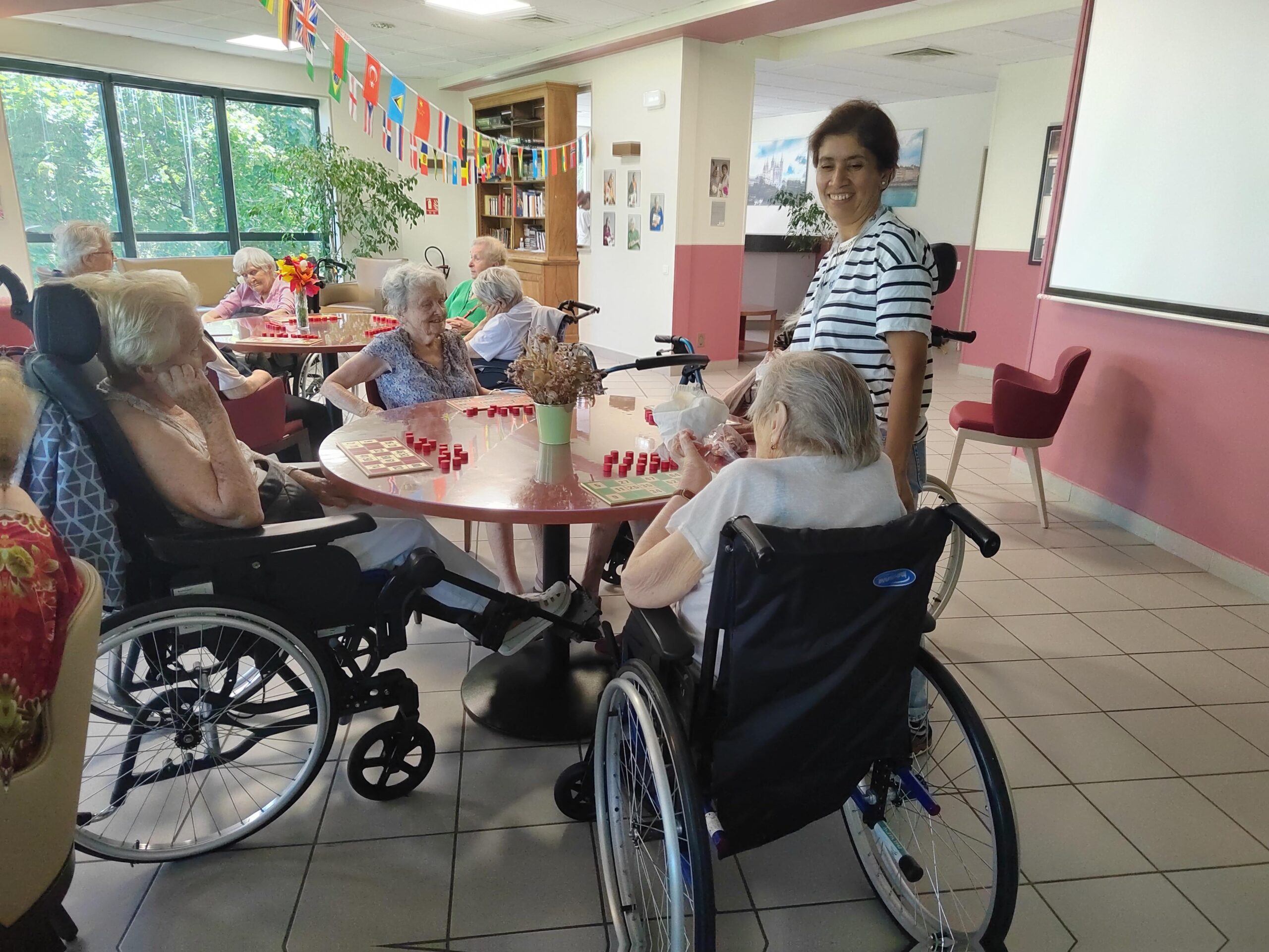 Habiba, la nouvelle animatrice des Amandines en septembre, suite au départ de Clara a réalisé un loto avec une vingtaine de résidents dans le salon Confluence aux Amandines le vendredi 24 juillet. Un loto très dynamique avec une bonne participation de tous les résidents et proches présents.