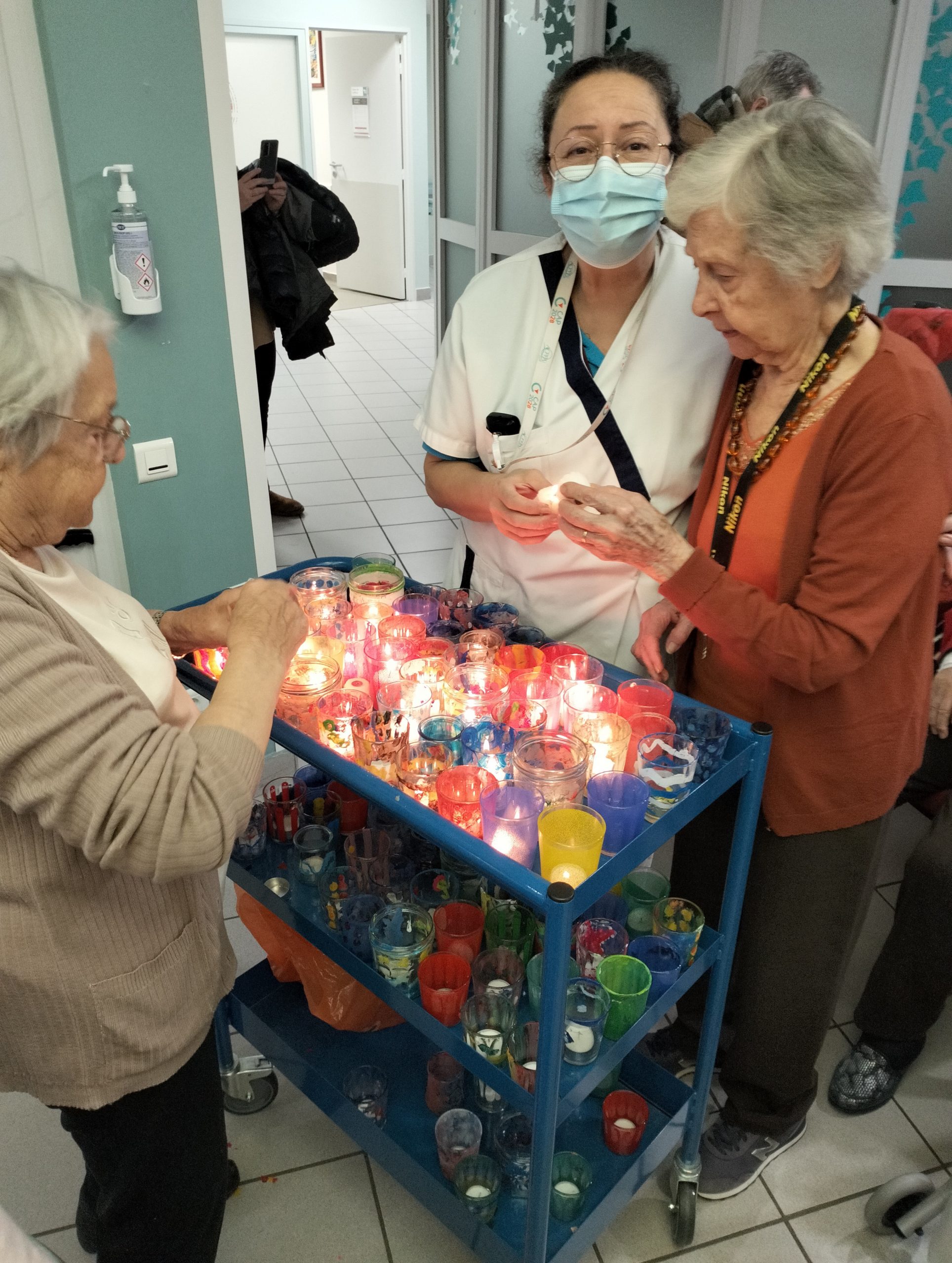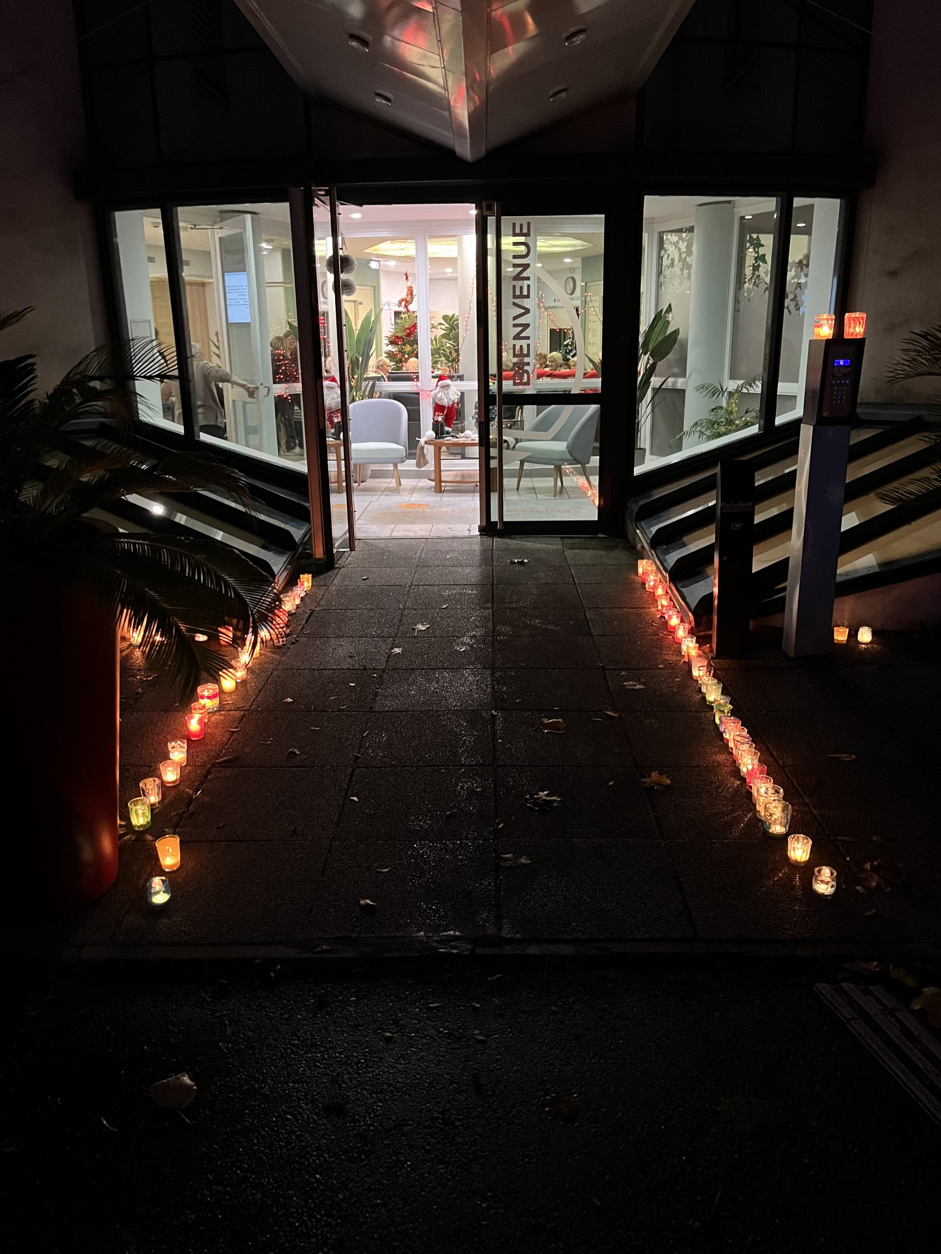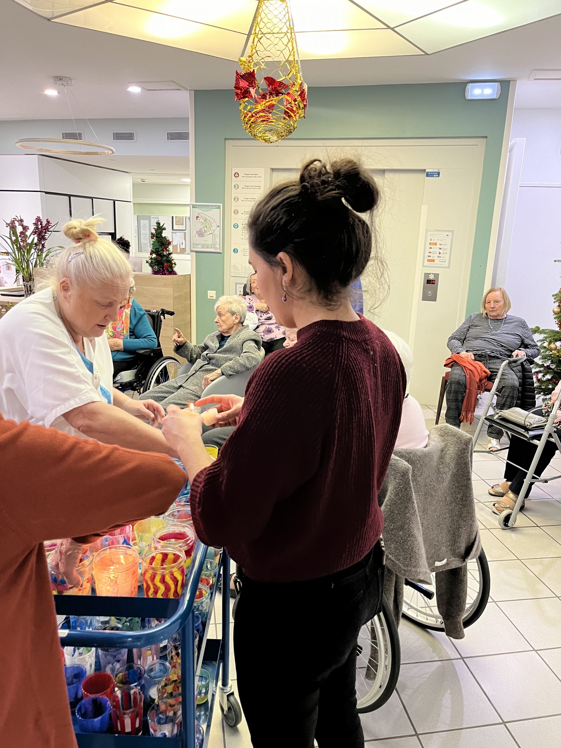 Pour le 8 décembre, les Amandines ont fait leur fête des lumières. Au programme, illumination à l’entrée de la résidence par des lumignons décorés par les résidents, dégustation de vin chaud et chants de Noël. L’ambiance était au rendez-vous !
