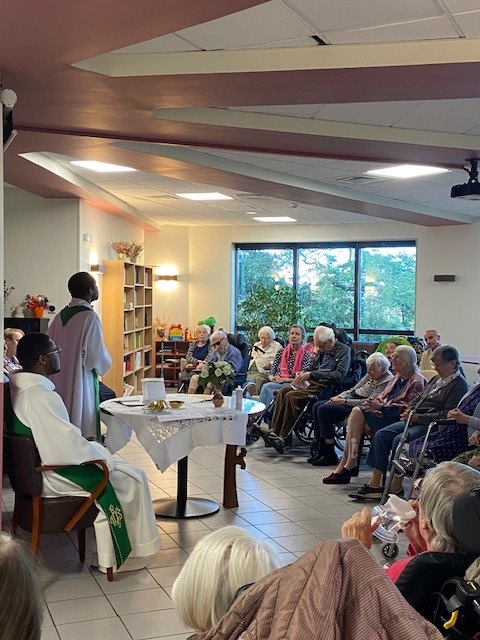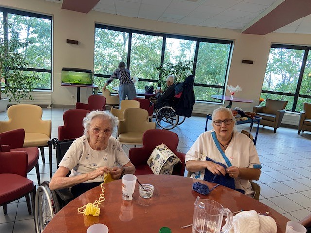 Une fois par mois, une messe est organisée aux Amandines suivie d’un atelier tricot avec beaucoup de participantes.