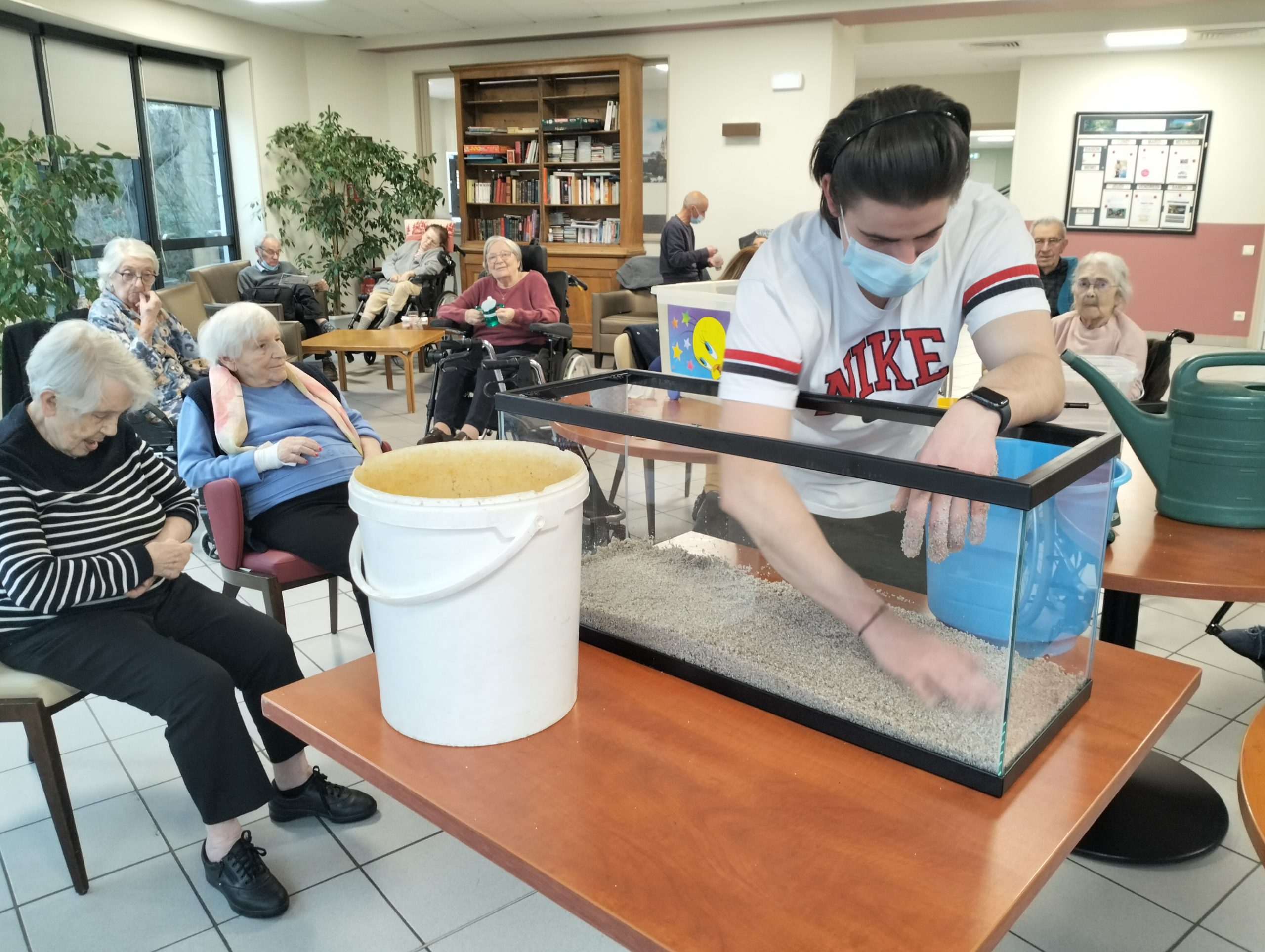 Sur le début du mois de février, nous avons installé un aquarium dans le salon Confluence. La première étape a été de monter l’aquarium avec la mise en place du sable, de l’eau, des plantes et décorations, une étape cruciale pour le bon fonctionnement de l’aquarium. Il va tourner trois semaines puis les poissons arriverons le 21 février. Un beau projet de nos services civiques. Observer les poissons évoluer dans leur aquarium, se déplacer, se cacher et chercher de la nourriture est très apaisant.