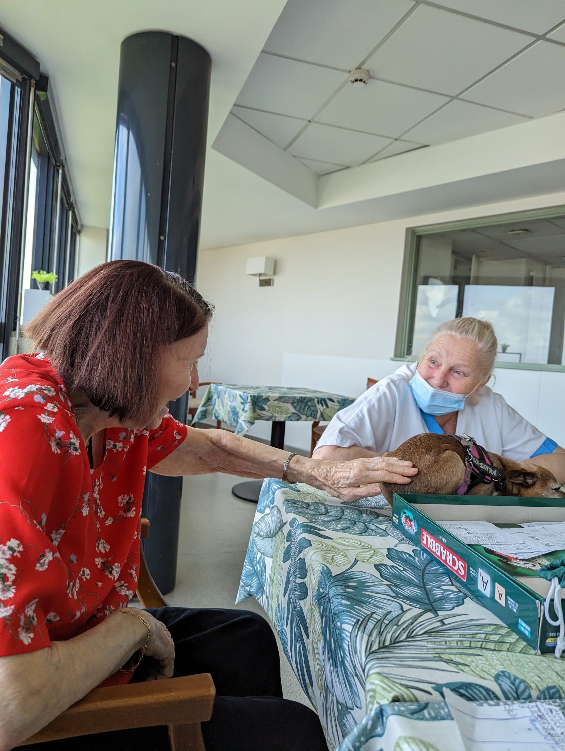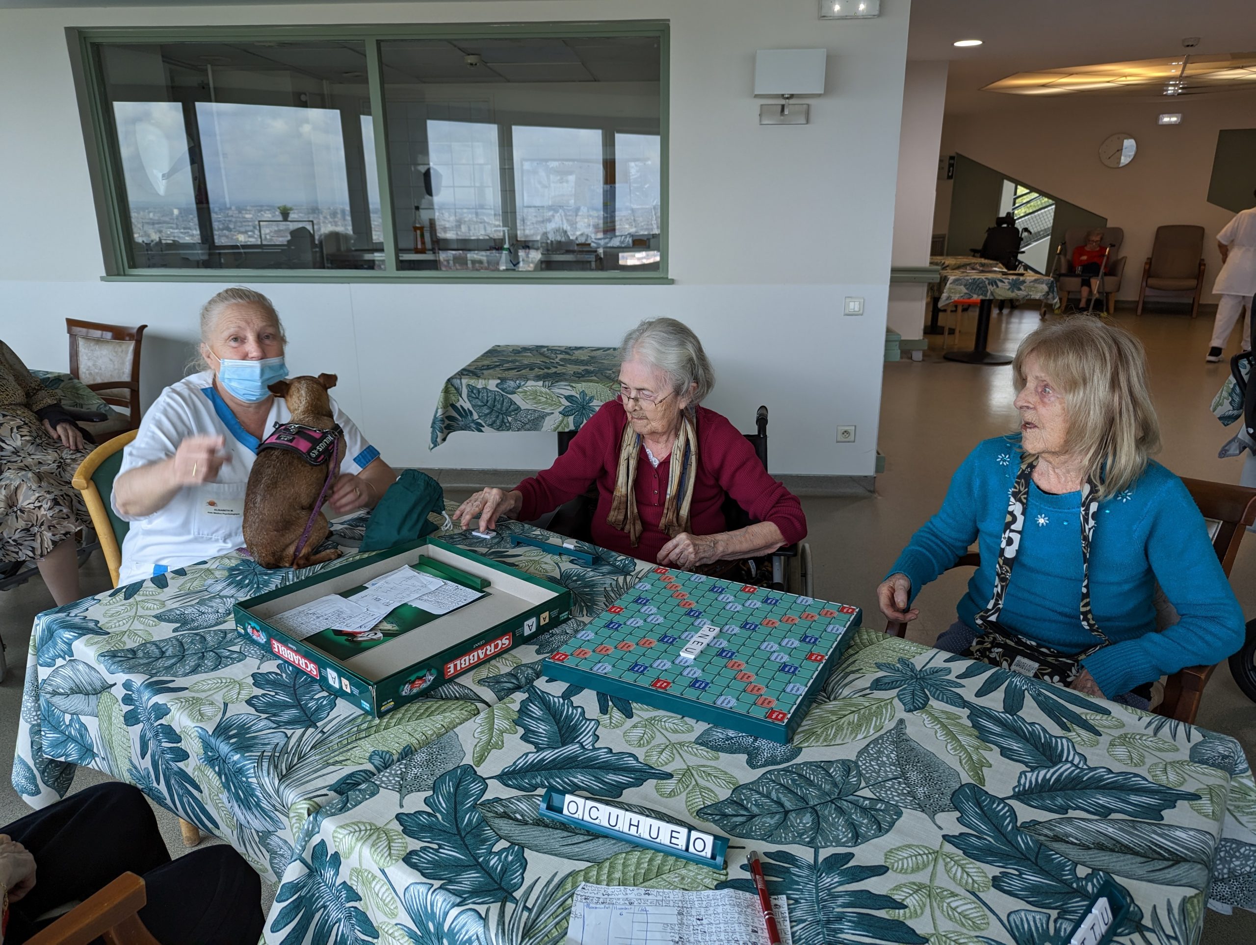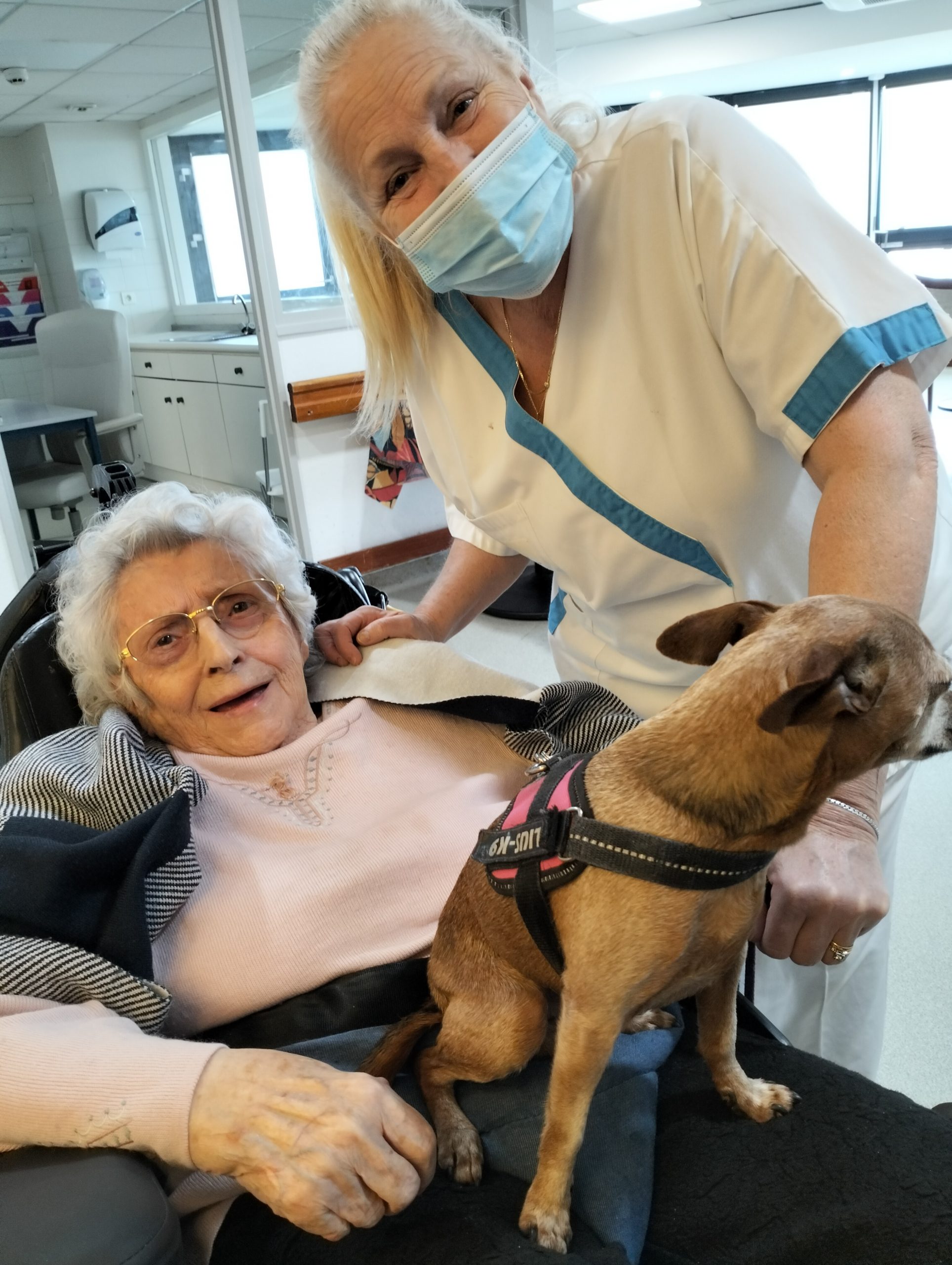 Jeudi 20 avril, nous avons eu la visite de Biscotte, la petite chienne d’Elisabeth. Elle a su égayer l’après-midi des résidents en passant par chaque étage. Malgré le mauvais temps, la journée a été bien remplie, surtout de caresses pour Biscotte. Merci à Elisabeth de venir avec elle pour nous faire passer de bons moments.