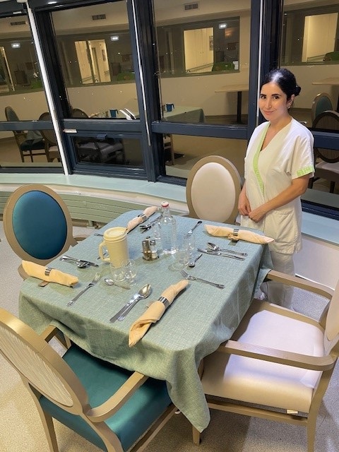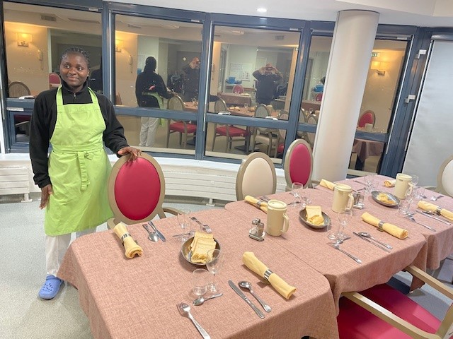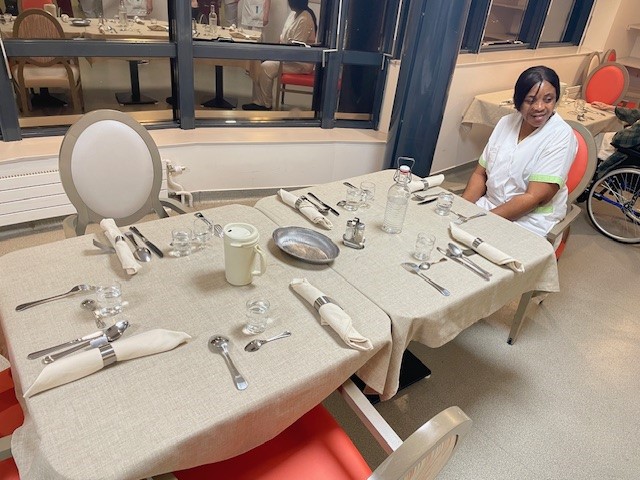 De nouvelles nappes et serviettes de tables ont été mises en place dans les salles à manger des étages. Merci à nos agents hôtelières pour leur dressage de qualité.