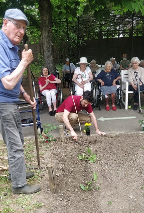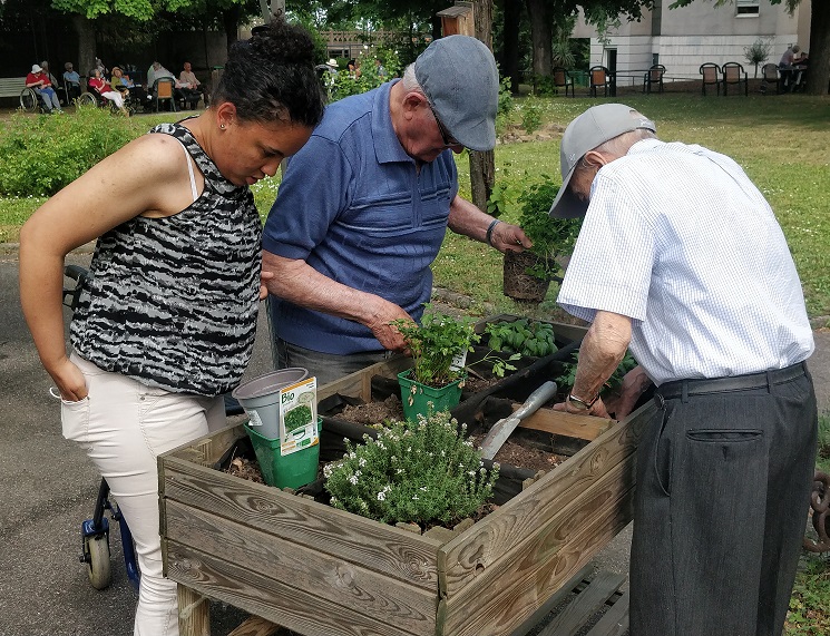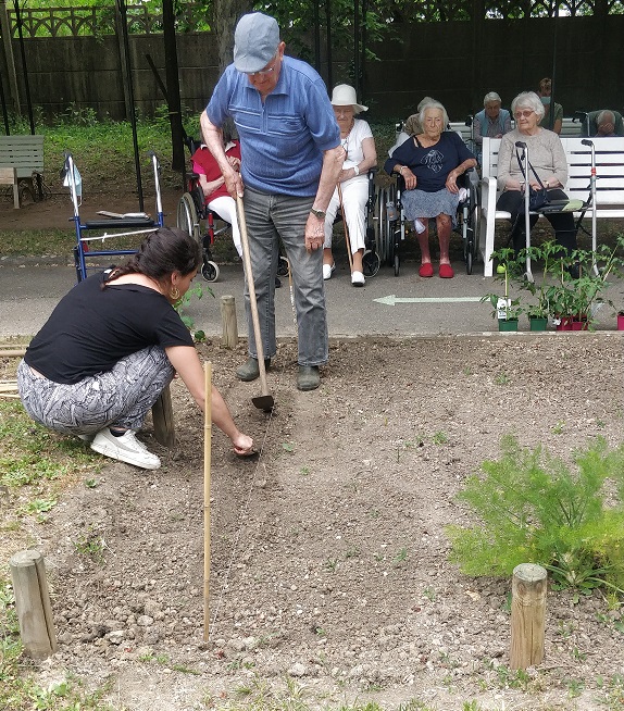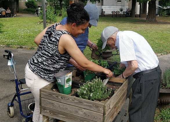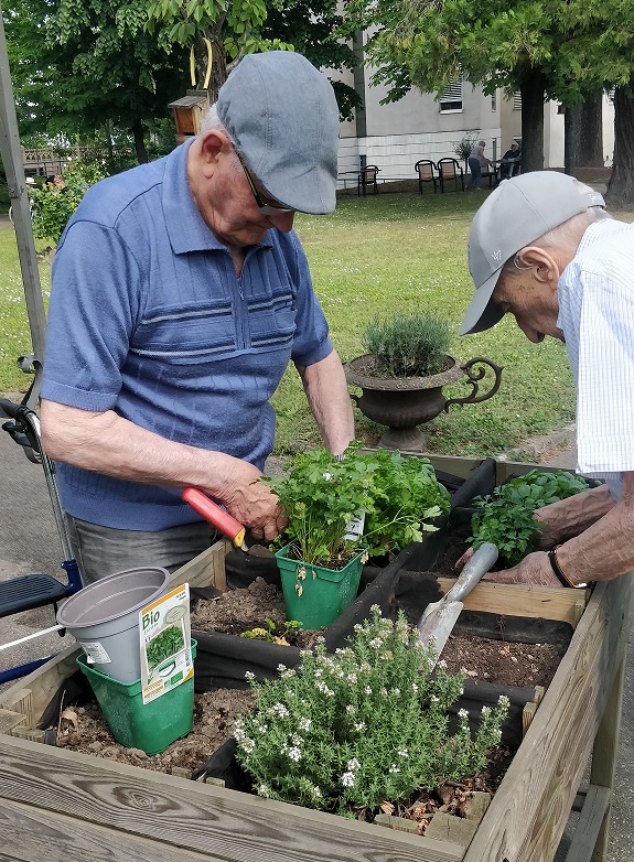 De l’achat des plants à la plantation, les résidents sont présents à chaque étape pour entretenir notre potager. Au programme, achat des plantes au magasin Jardin fleuri en matinée avec deux résidentes puis plantation l’après-midi dans le potager des tomates et des courgettes, puis semis de radis et œillets d’inde. Dans les bacs des plantes aromatiques, nous avons planté du basilic, persil, thym et romarin. Merci aux courageux résidents qui nous aident et entretiennent le jardin !