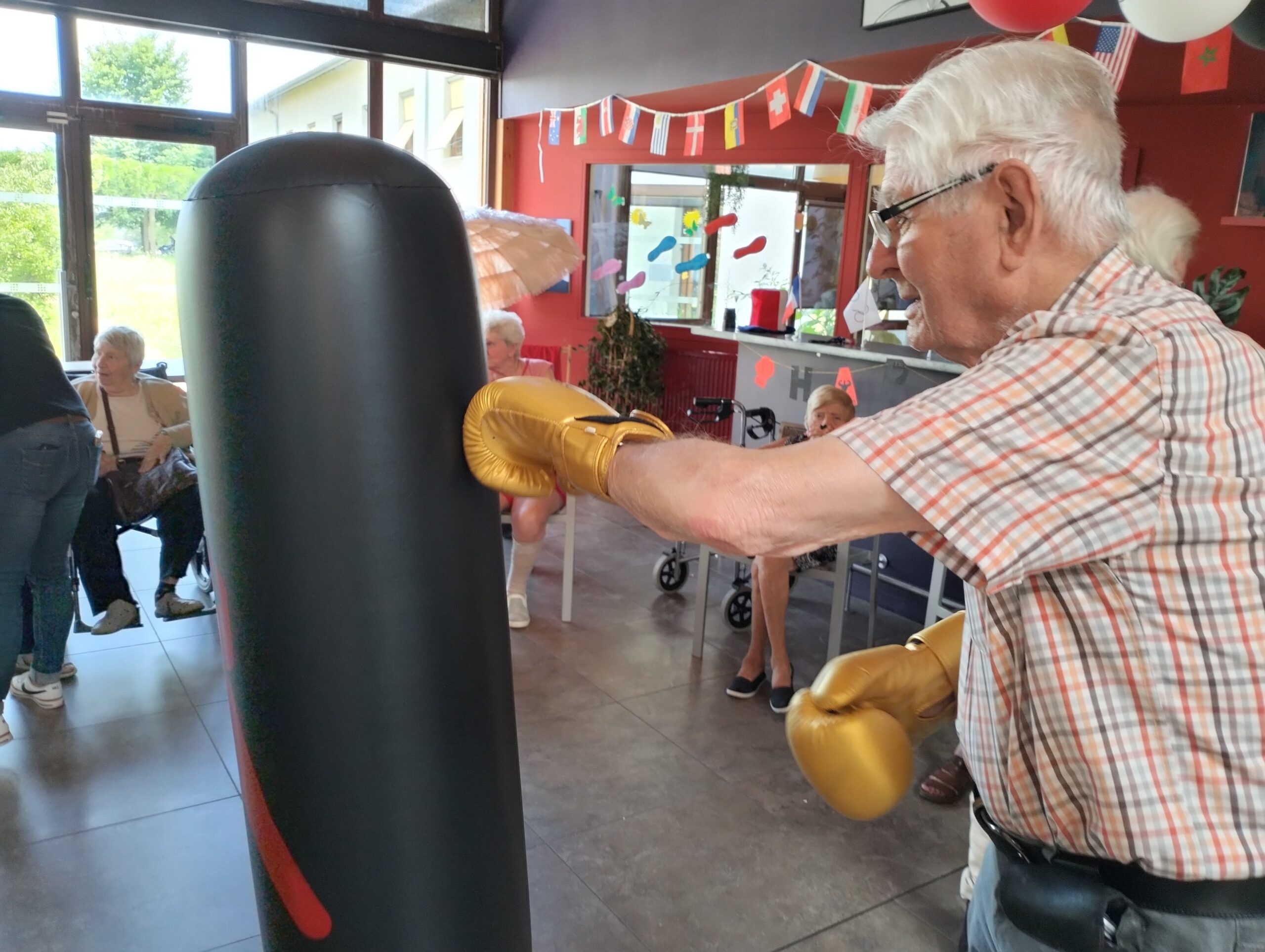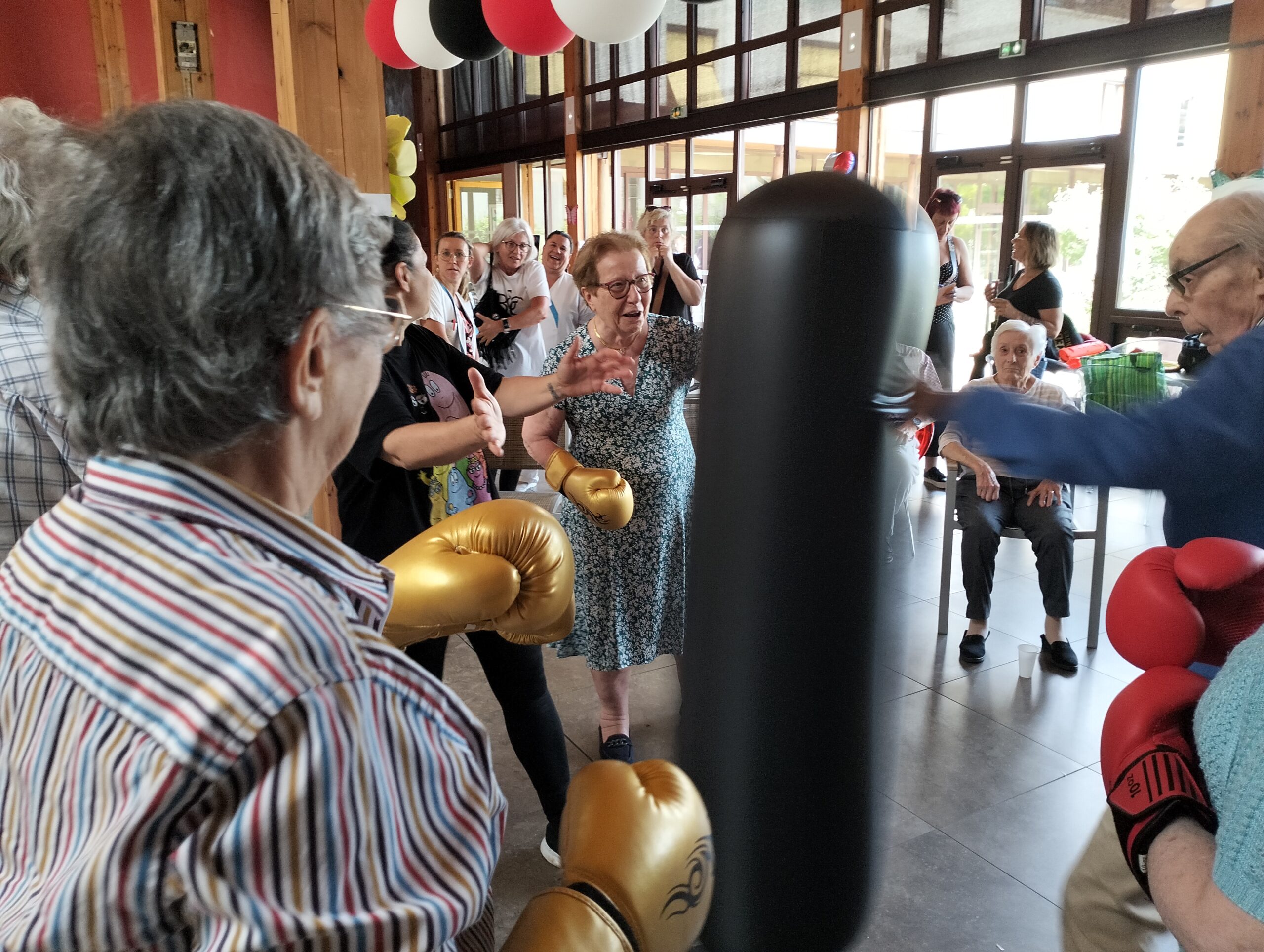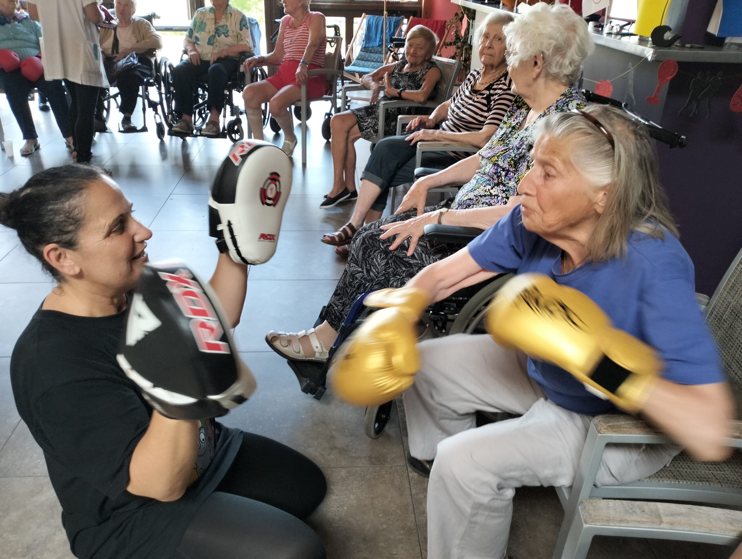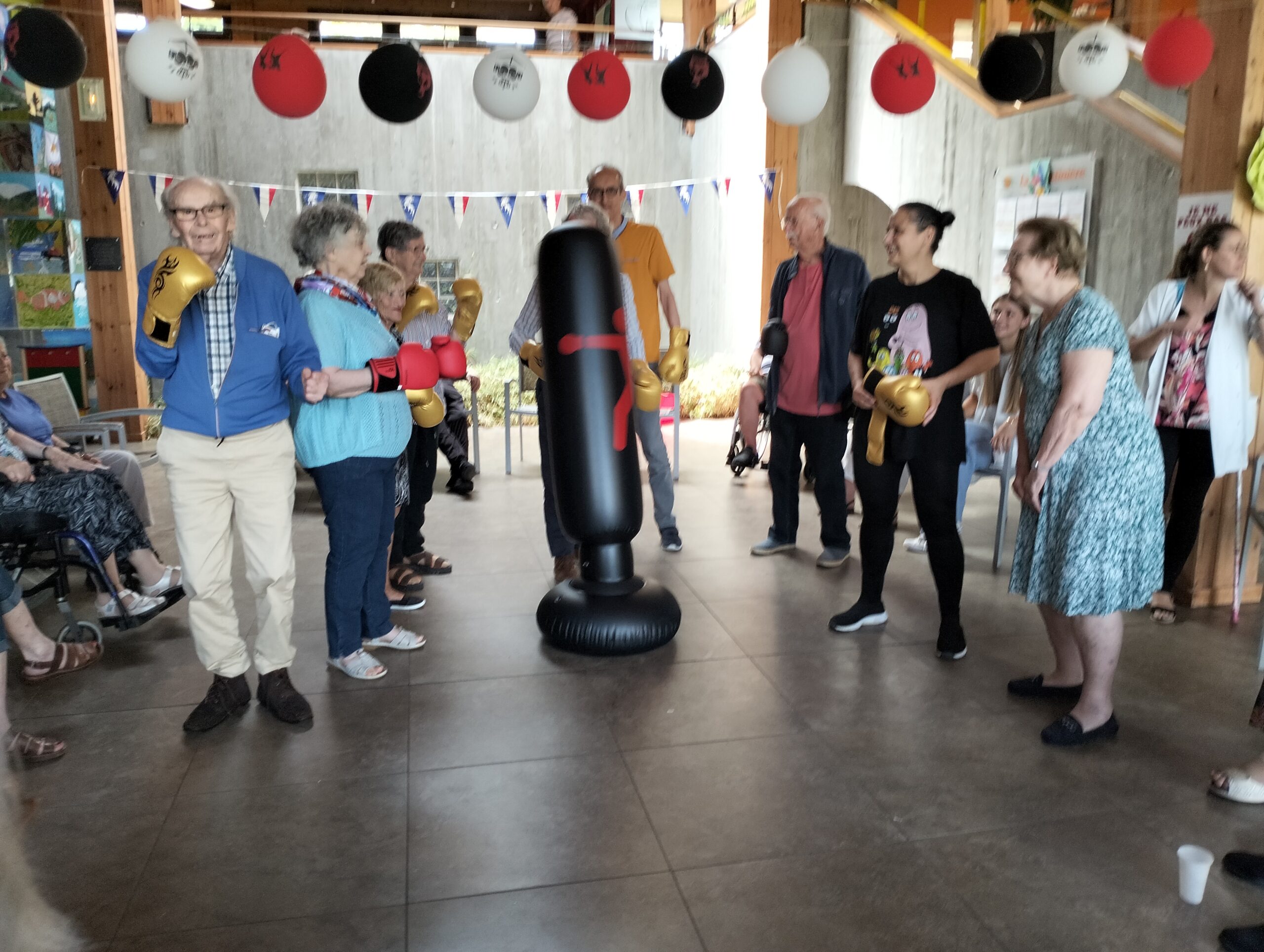 Plusieurs résidents des Amandines se sont rendus à l’EHPAD La Christinière à Taluyers pour nos olympiades inter-établissements. Les résidents ont profité d’une initiation à la boxe et d’un goûter partager très apprécié. Ils ont pu apprendre les techniques de frappes, utiliser des gants de boxes et tester le punching-ball. Un après-midi riche en émotions, rires et rencontres. Merci à Nelly l’animatrice de la Christinière pour son accueil.