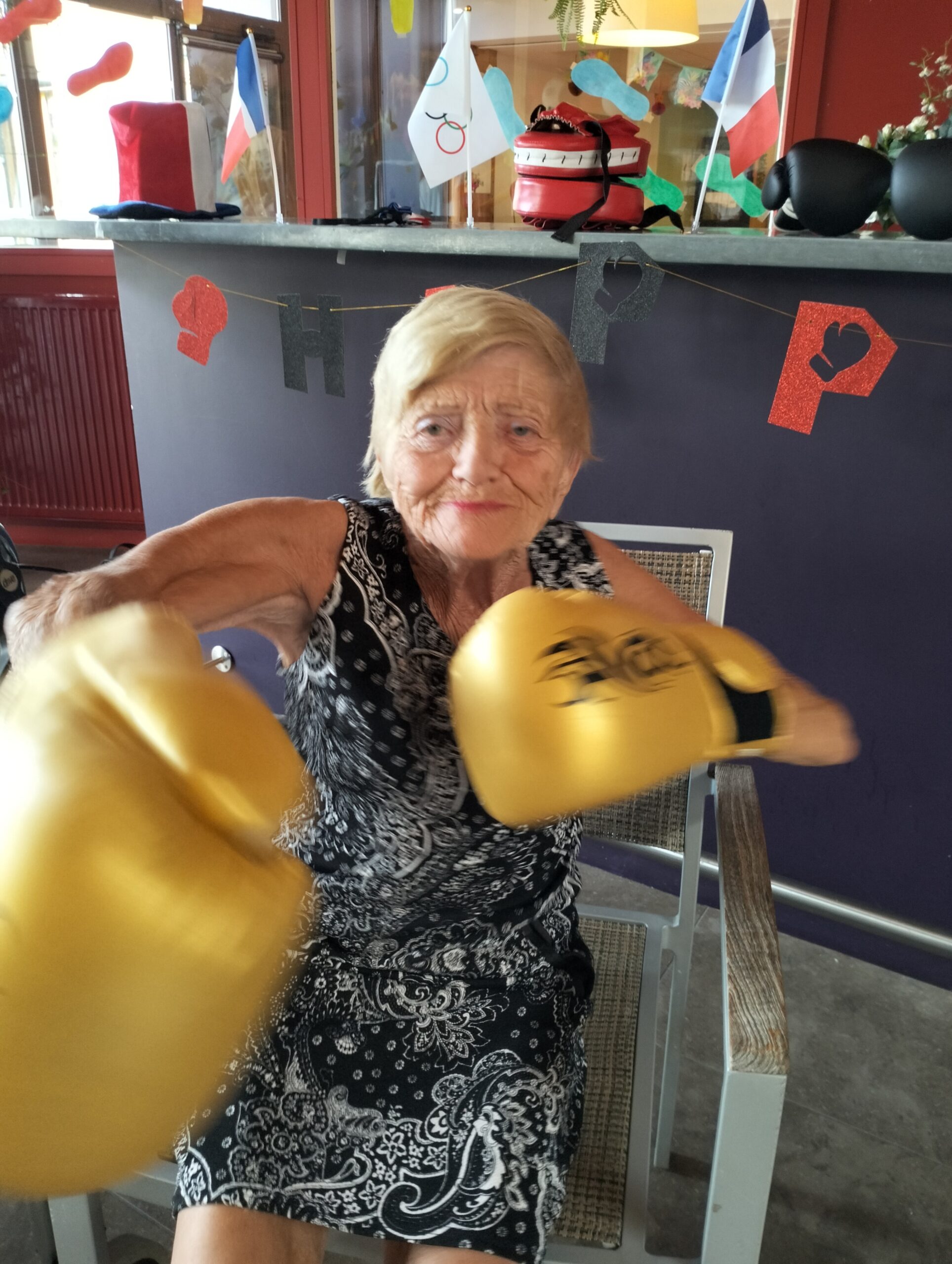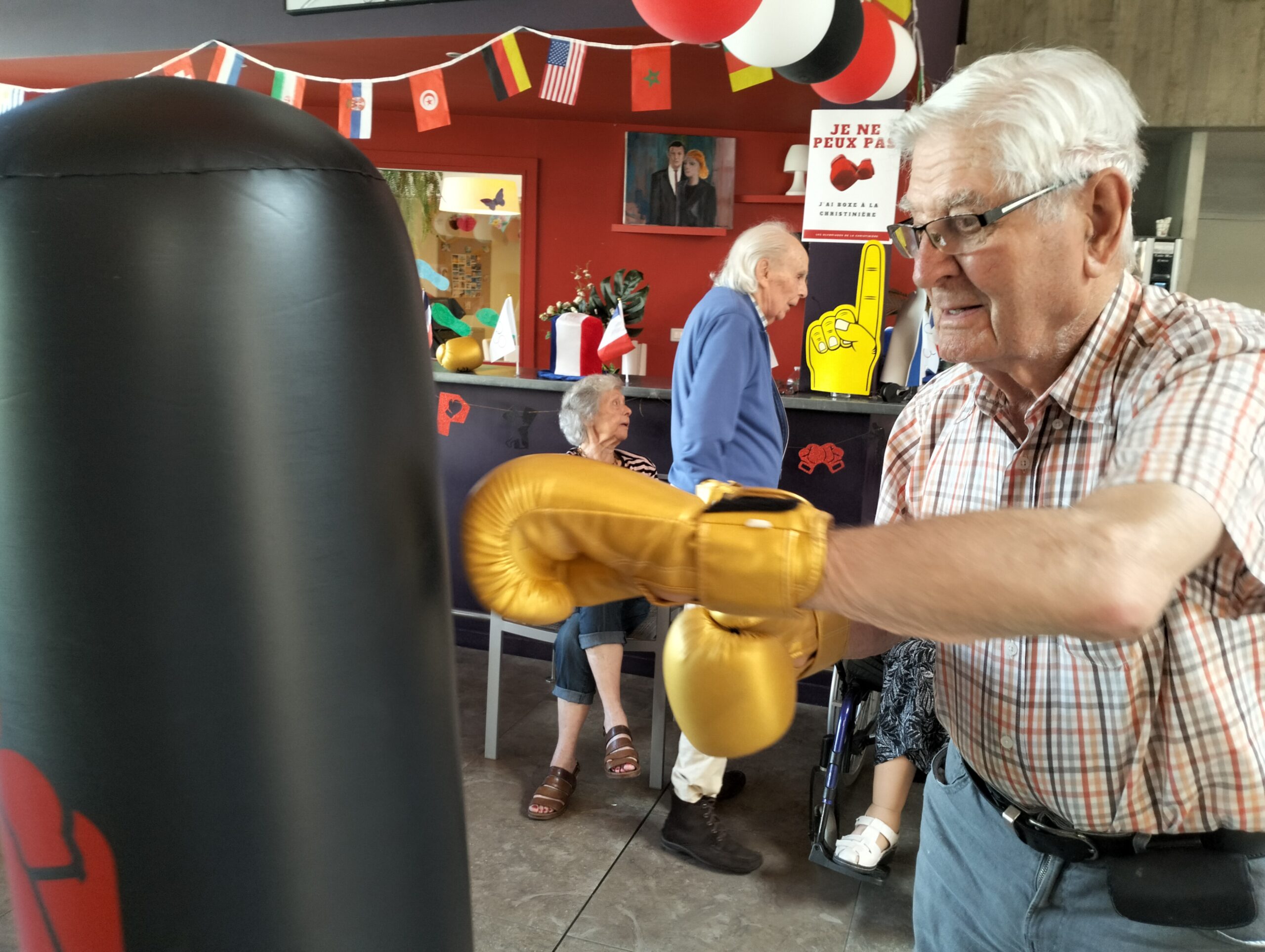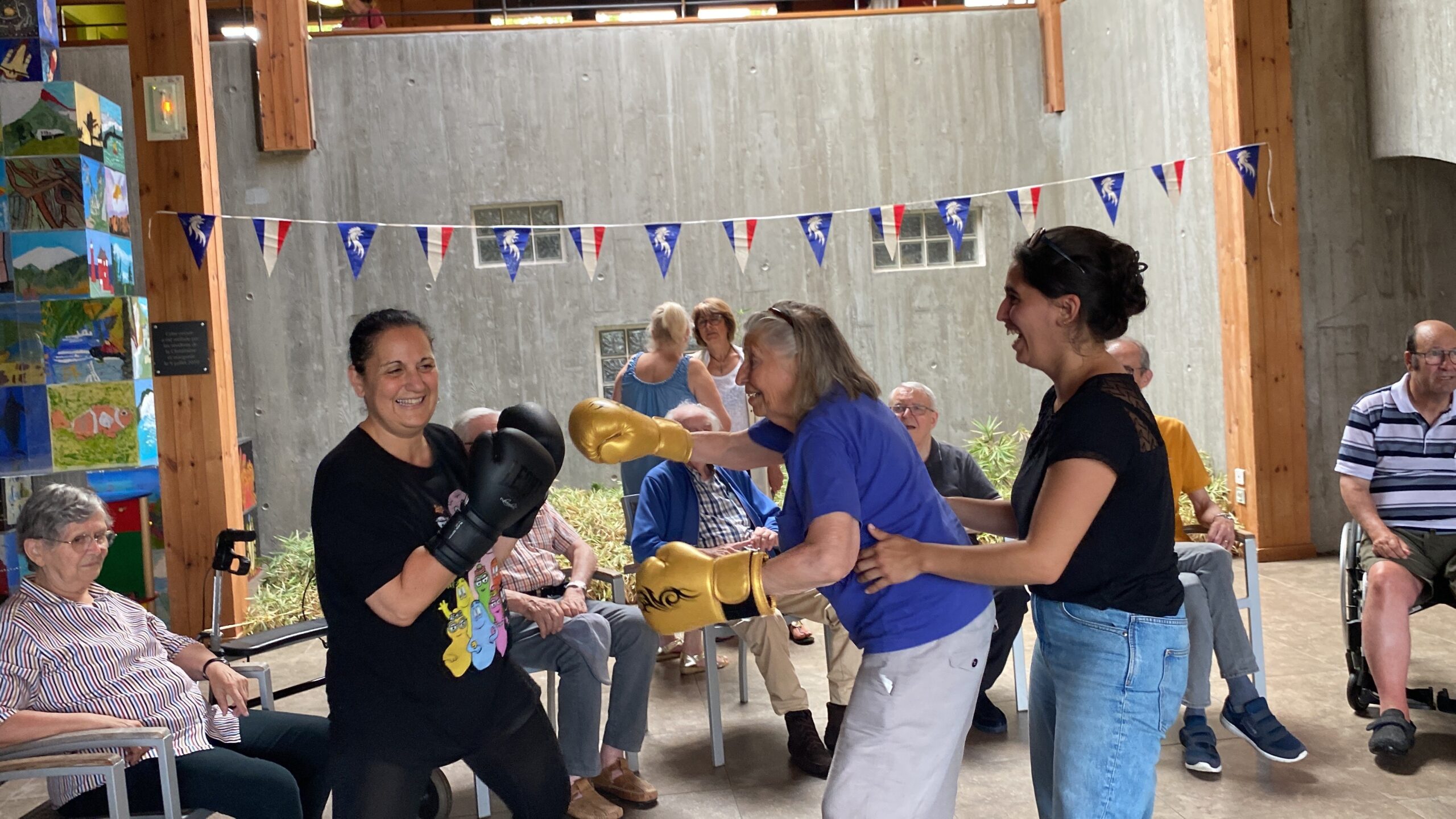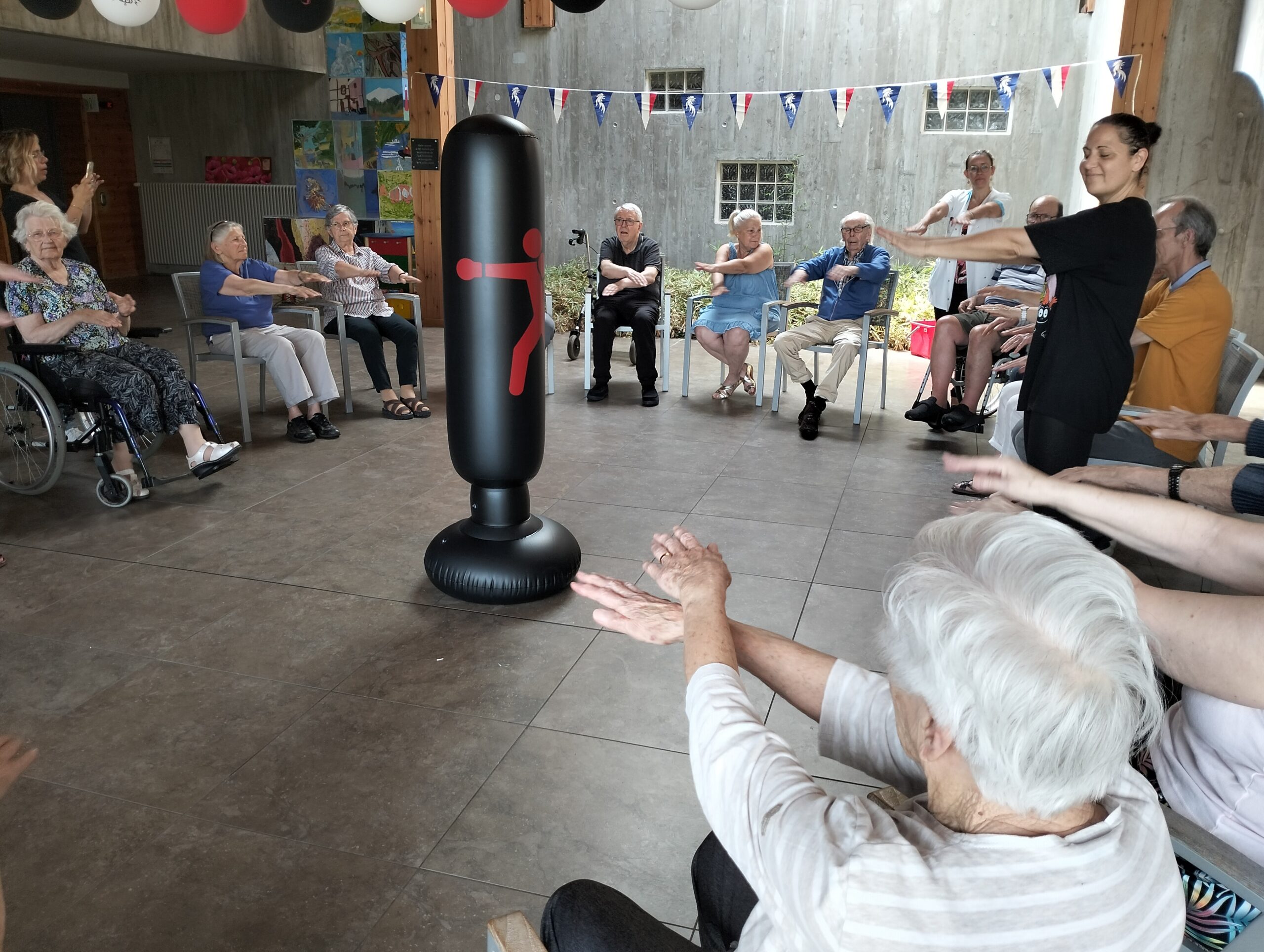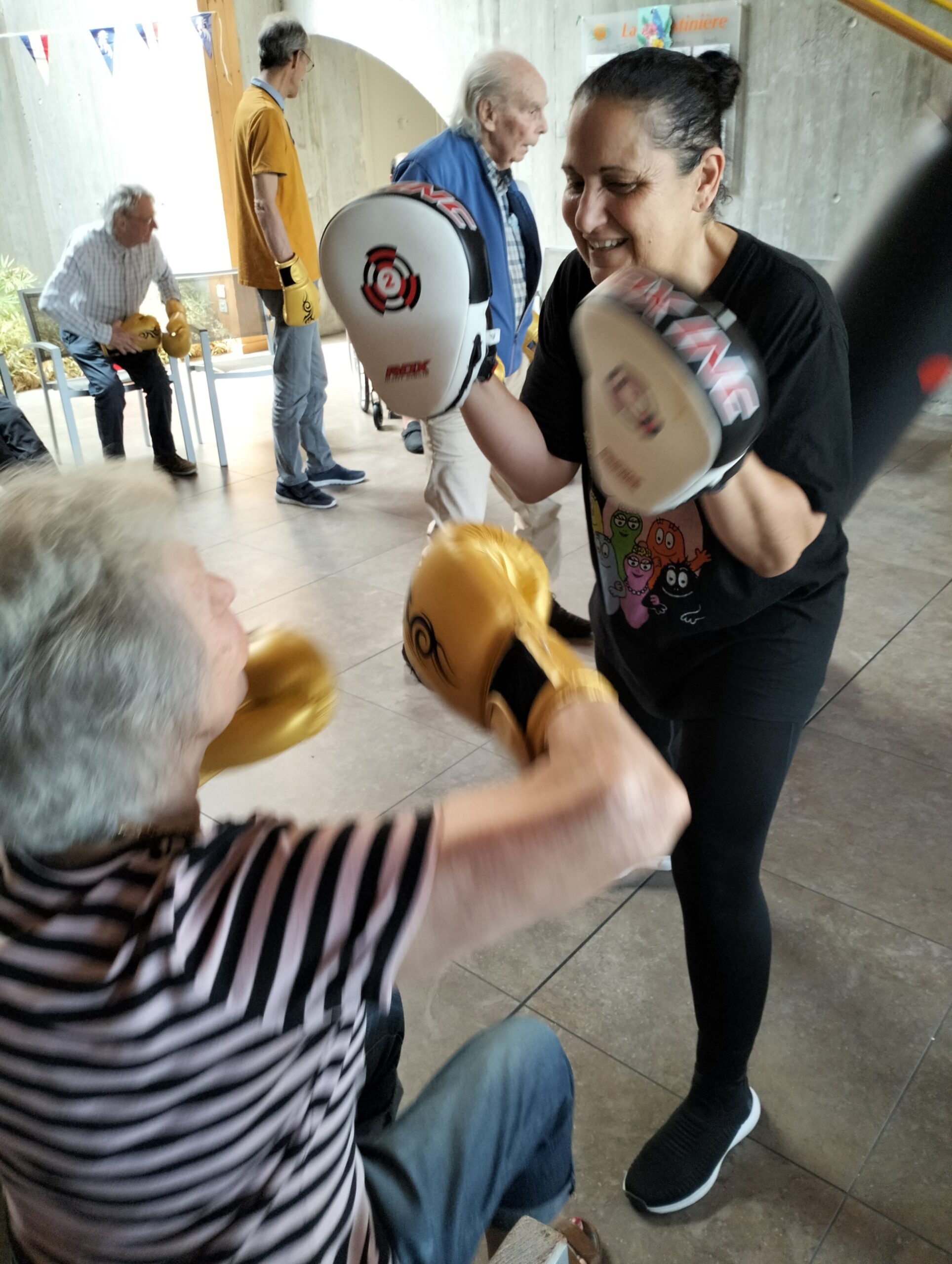 Plusieurs résidents des Amandines se sont rendus à l’EHPAD La Christinière à Taluyers pour nos olympiades inter-établissements. Les résidents ont profité d’une initiation à la boxe et d’un goûter partager très apprécié. Ils ont pu apprendre les techniques de frappes, utiliser des gants de boxes et tester le punching-ball. Un après-midi riche en émotions, rires et rencontres. Merci à Nelly l’animatrice de la Christinière pour son accueil.