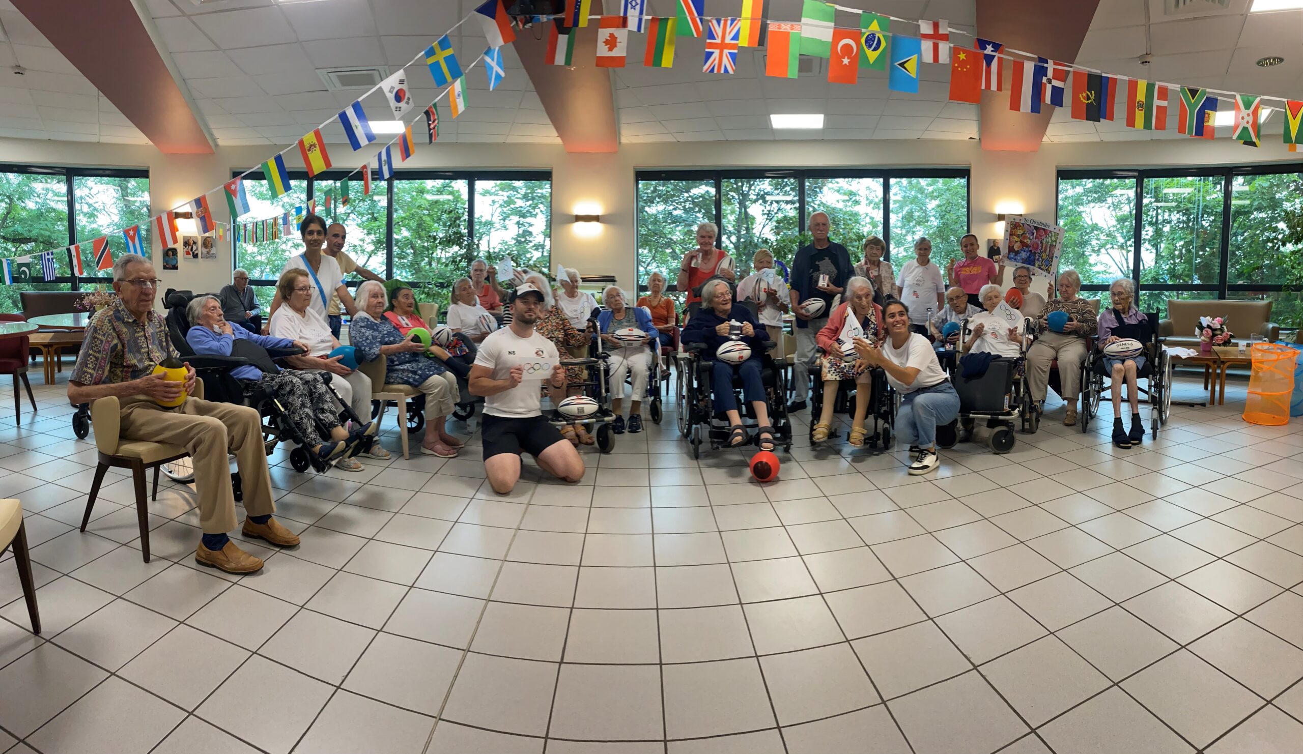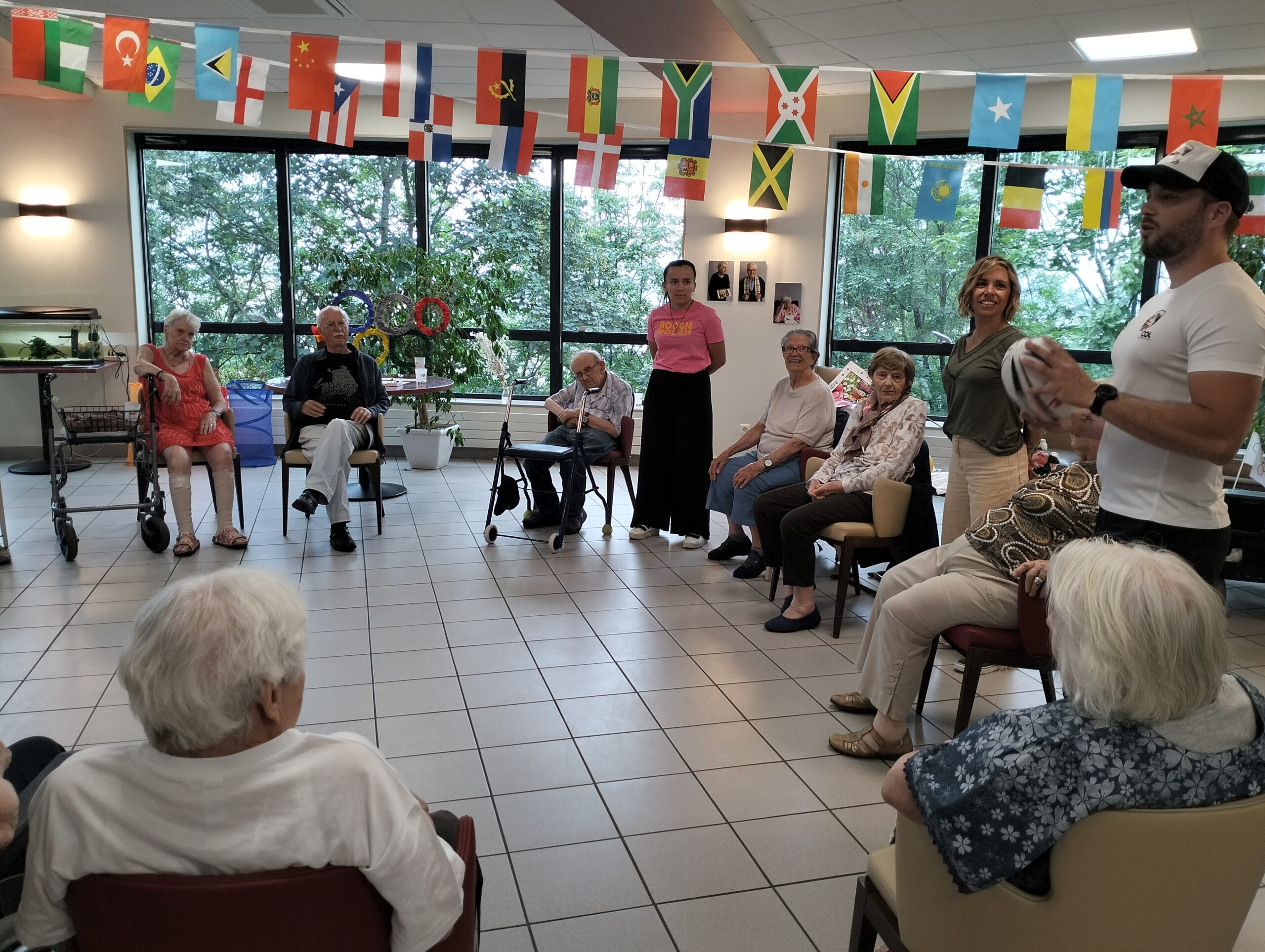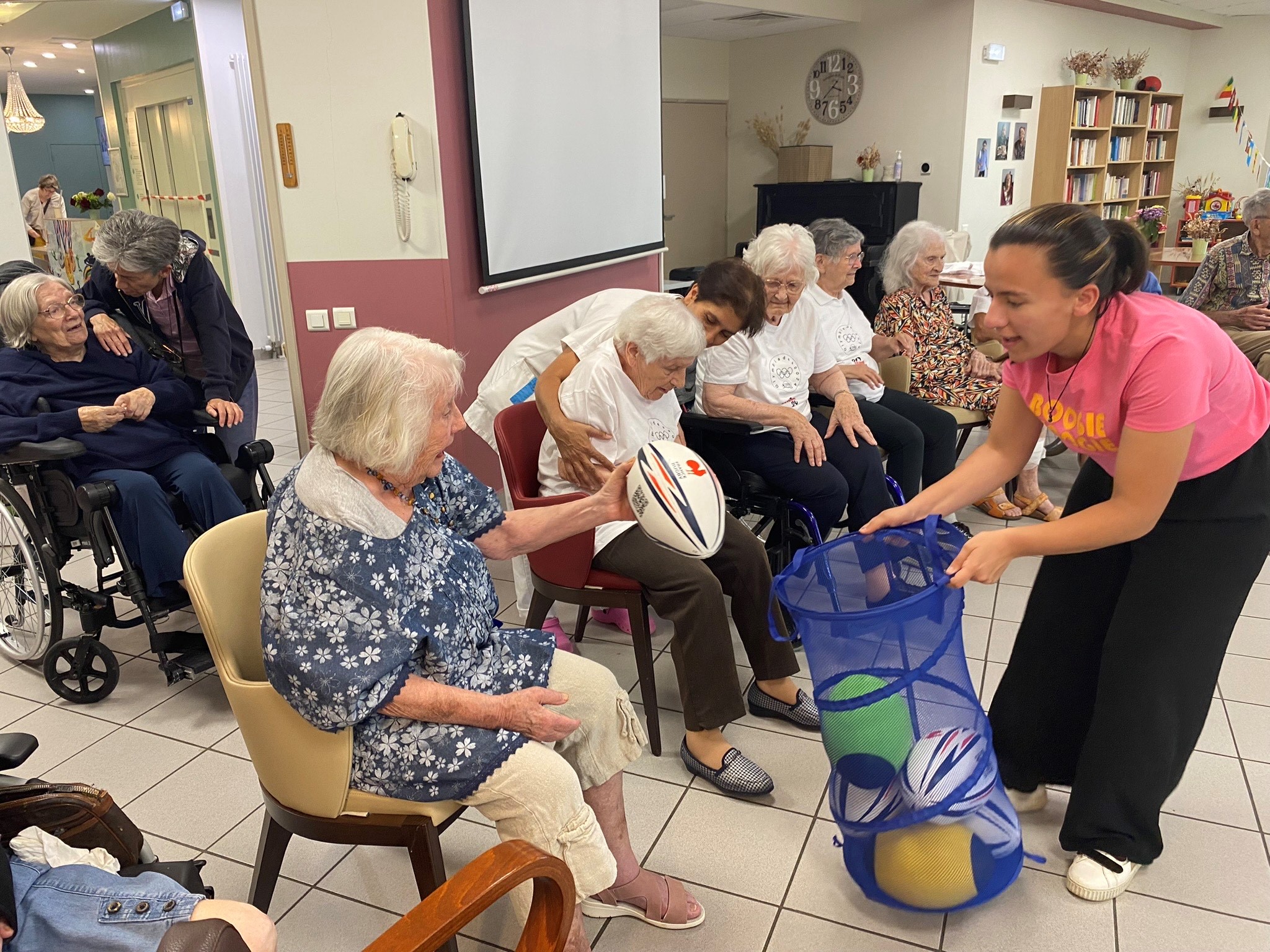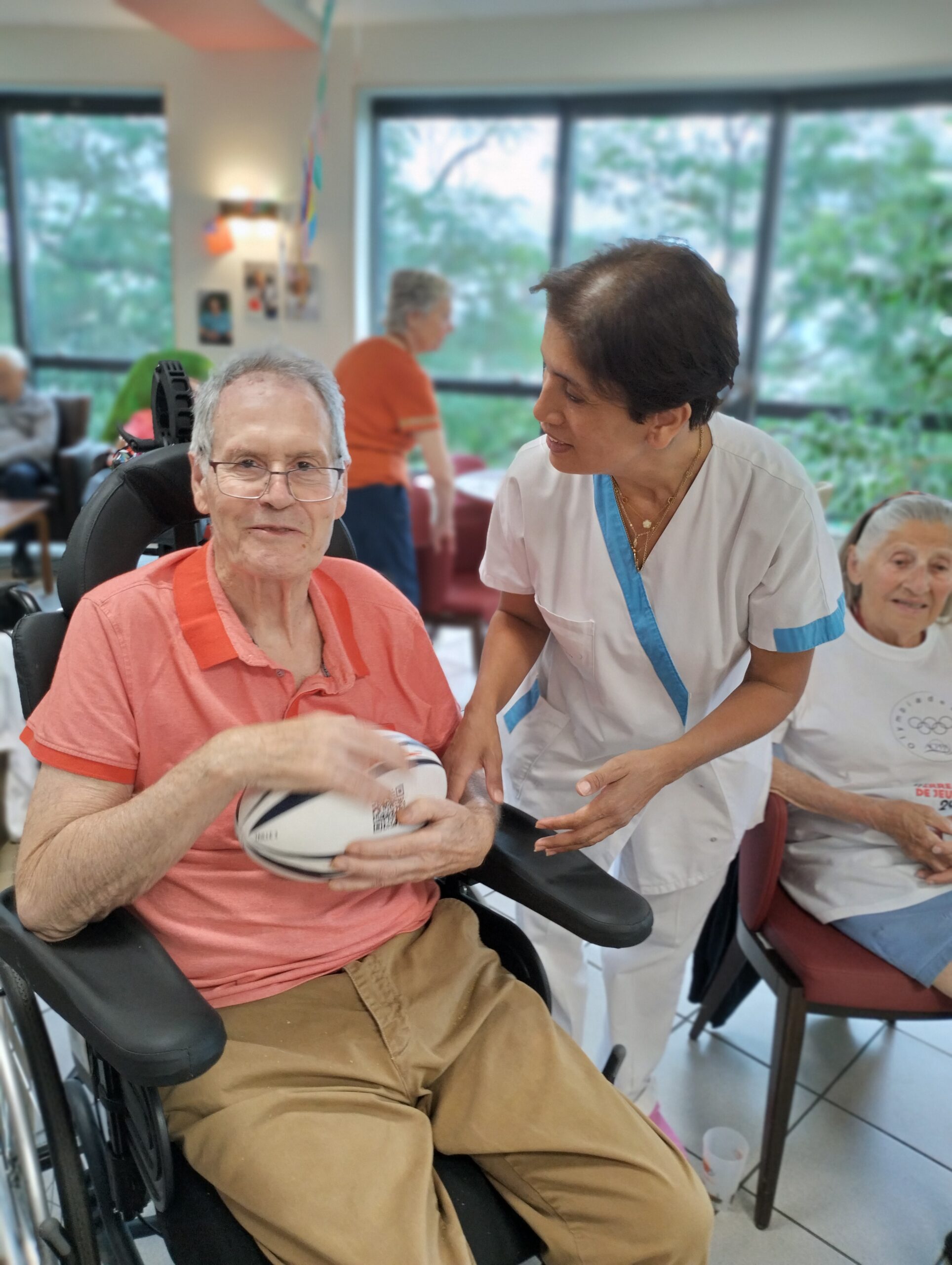 Avec les résidents de la Christinière à Taluyers, les résidents des Amandines se sont prêtés au jeu des olympiades. Au programme le mardi 2 juillet, rugby adapté avec OMNISPORT. Plus que la compétition, c’est la bonne humeur qui a dominé l’après-midi. Une ambiance amusante et conviviale sous les décorations et les supporters. Des médailles ont été données à des résidents qui ont été très heureux de les recevoir. Nous irons à la prochaine rencontre à la Christinière faire de la boxe !