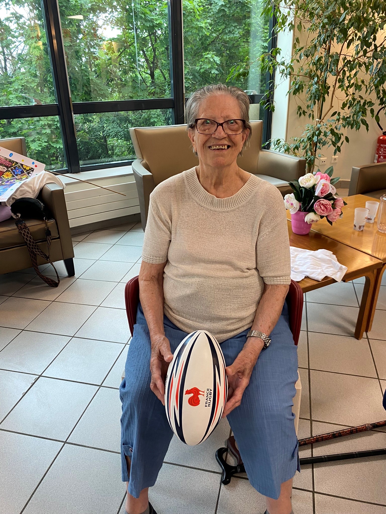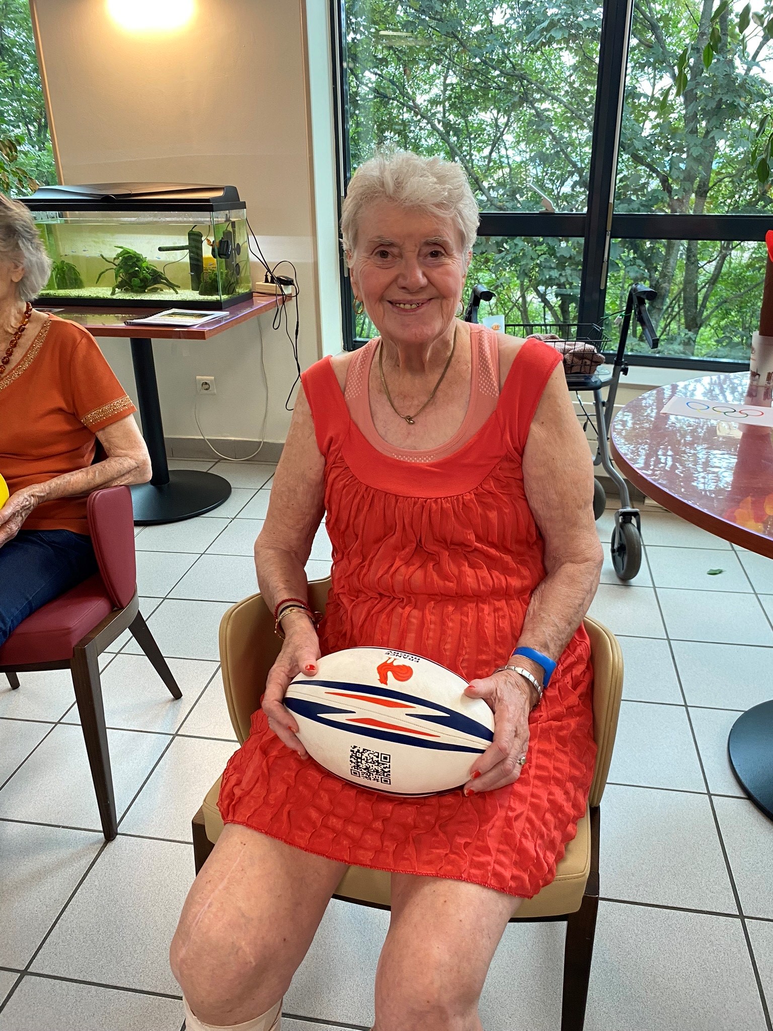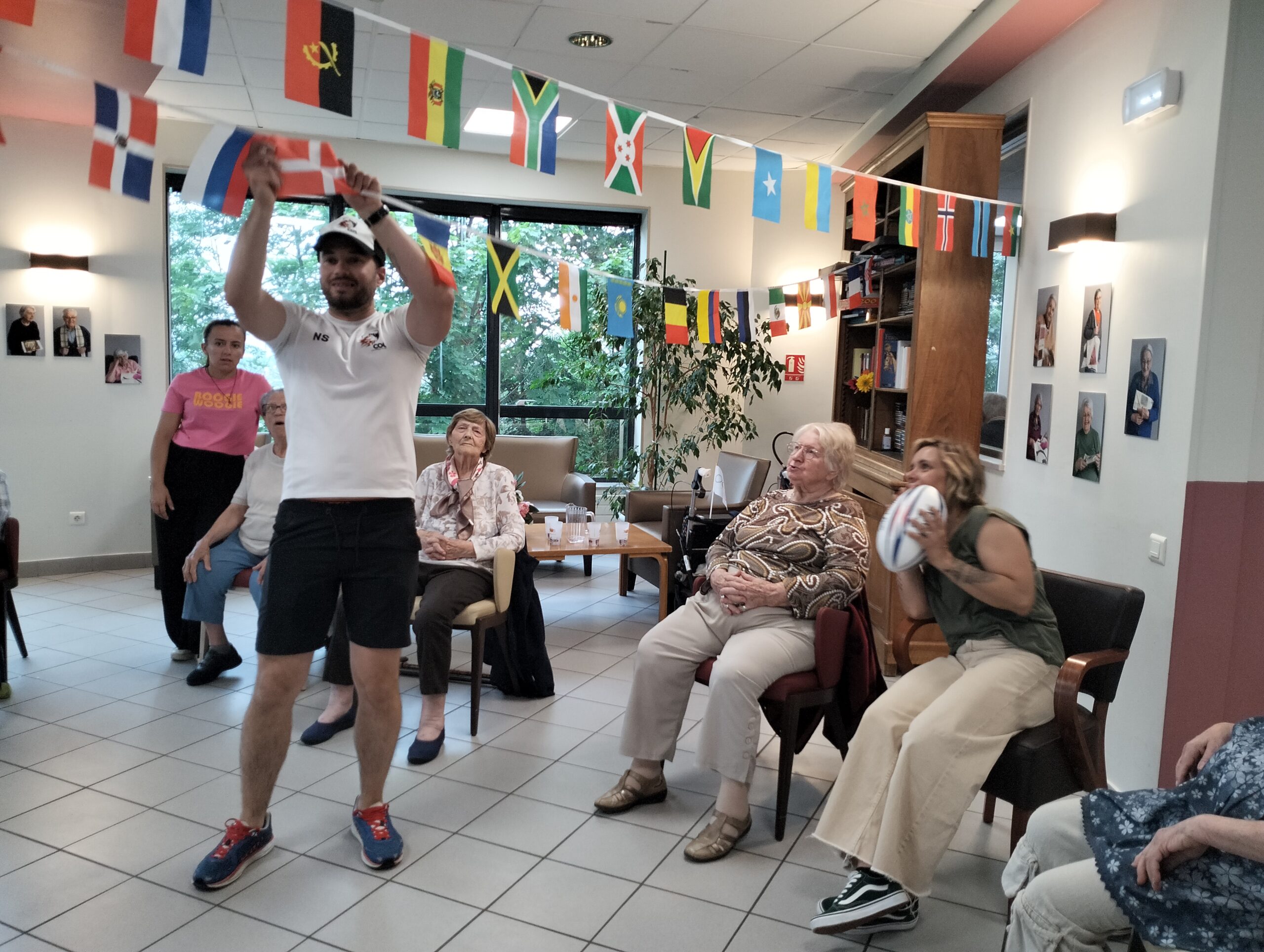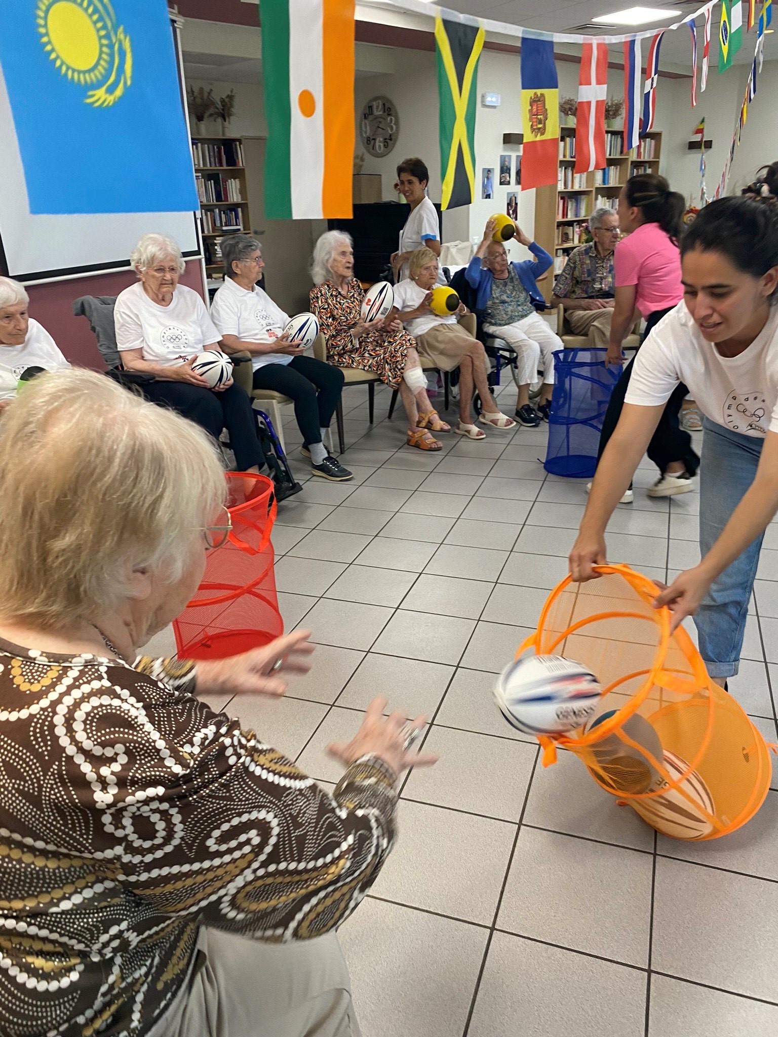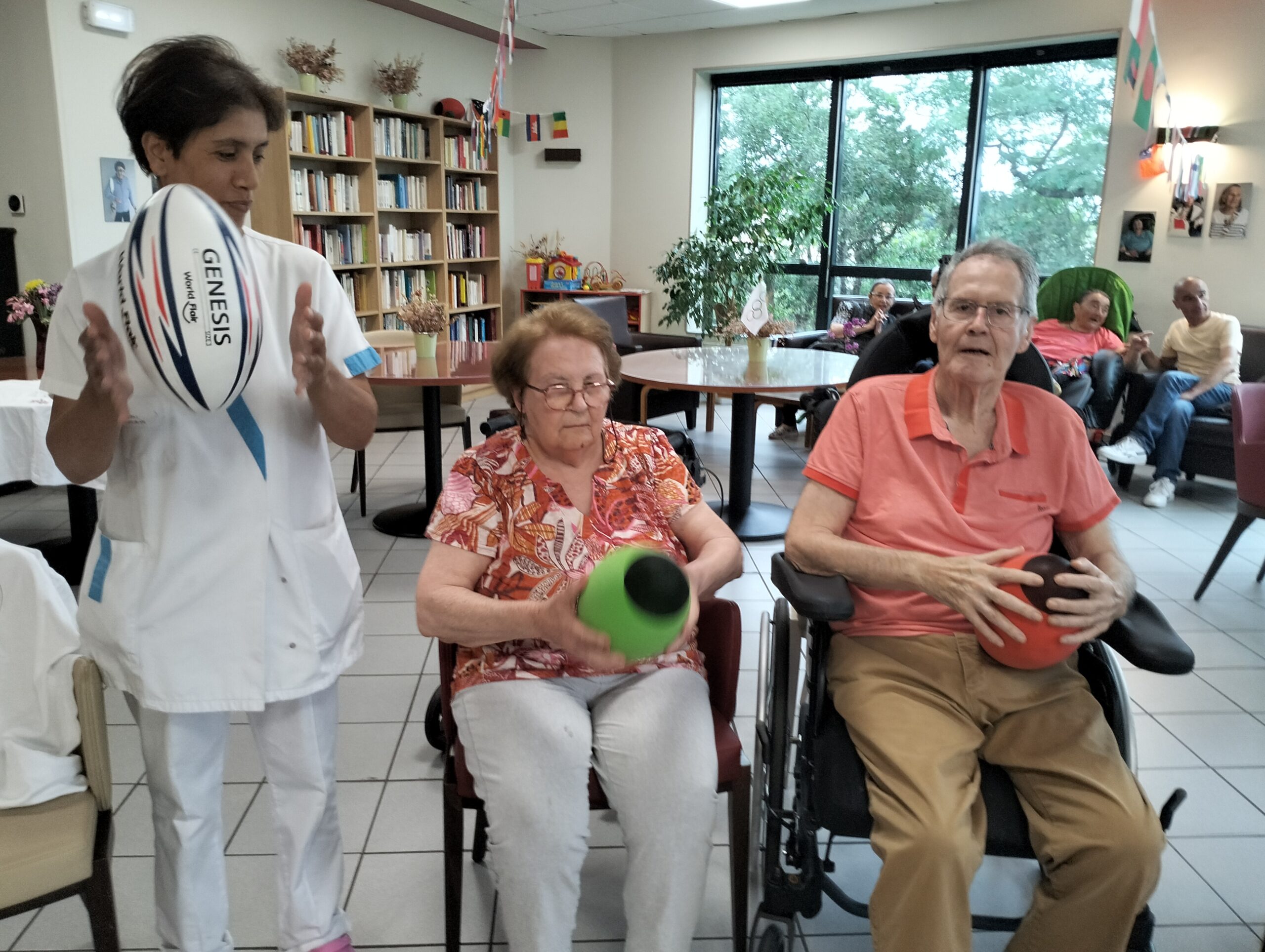 Avec les résidents de la Christinière à Taluyers, les résidents des Amandines se sont prêtés au jeu des olympiades. Au programme le mardi 2 juillet, rugby adapté avec OMNISPORT. Plus que la compétition, c’est la bonne humeur qui a dominé l’après-midi. Une ambiance amusante et conviviale sous les décorations et les supporters. Des médailles ont été données à des résidents qui ont été très heureux de les recevoir. Nous irons à la prochaine rencontre à la Christinière faire de la boxe !