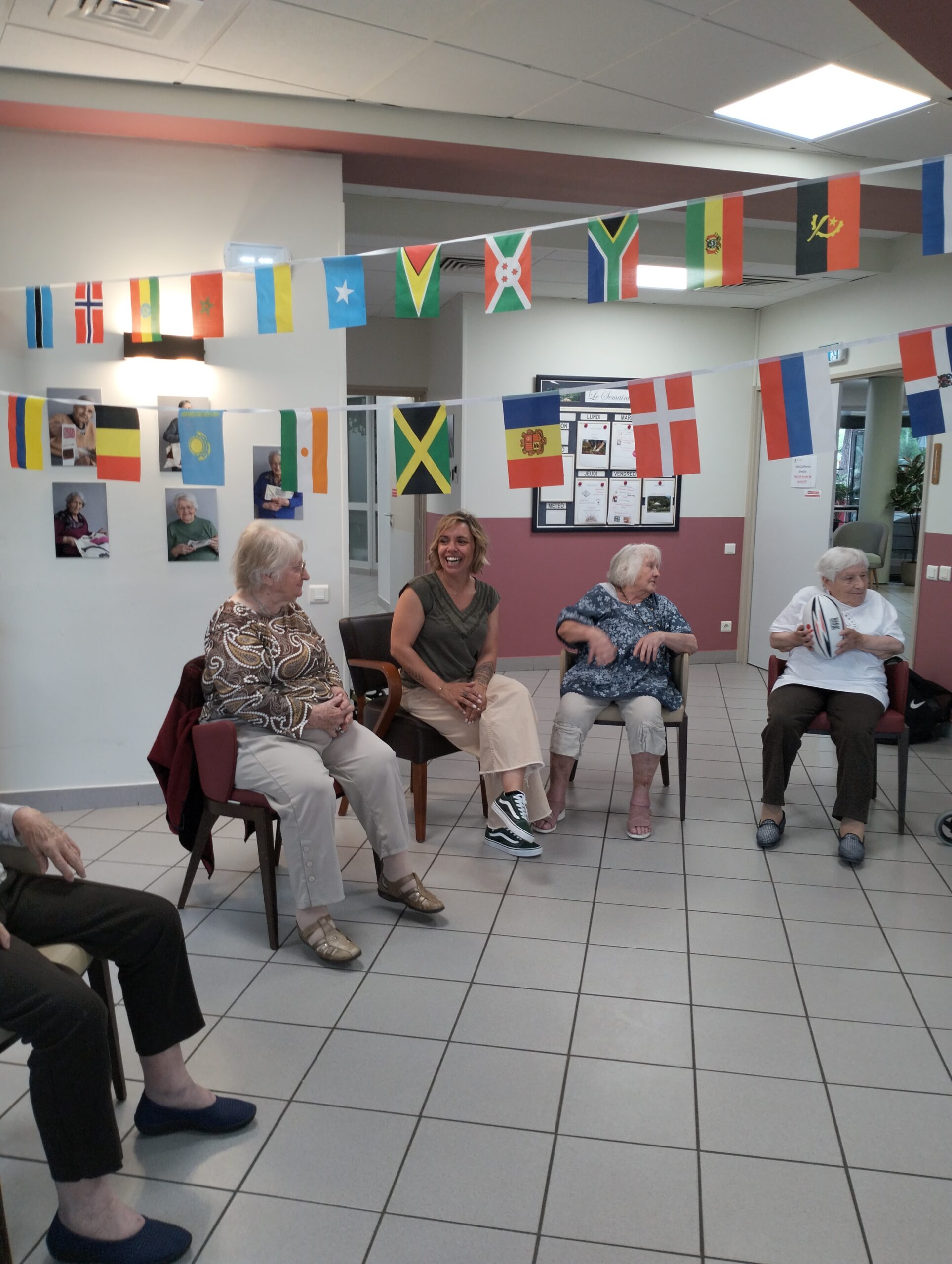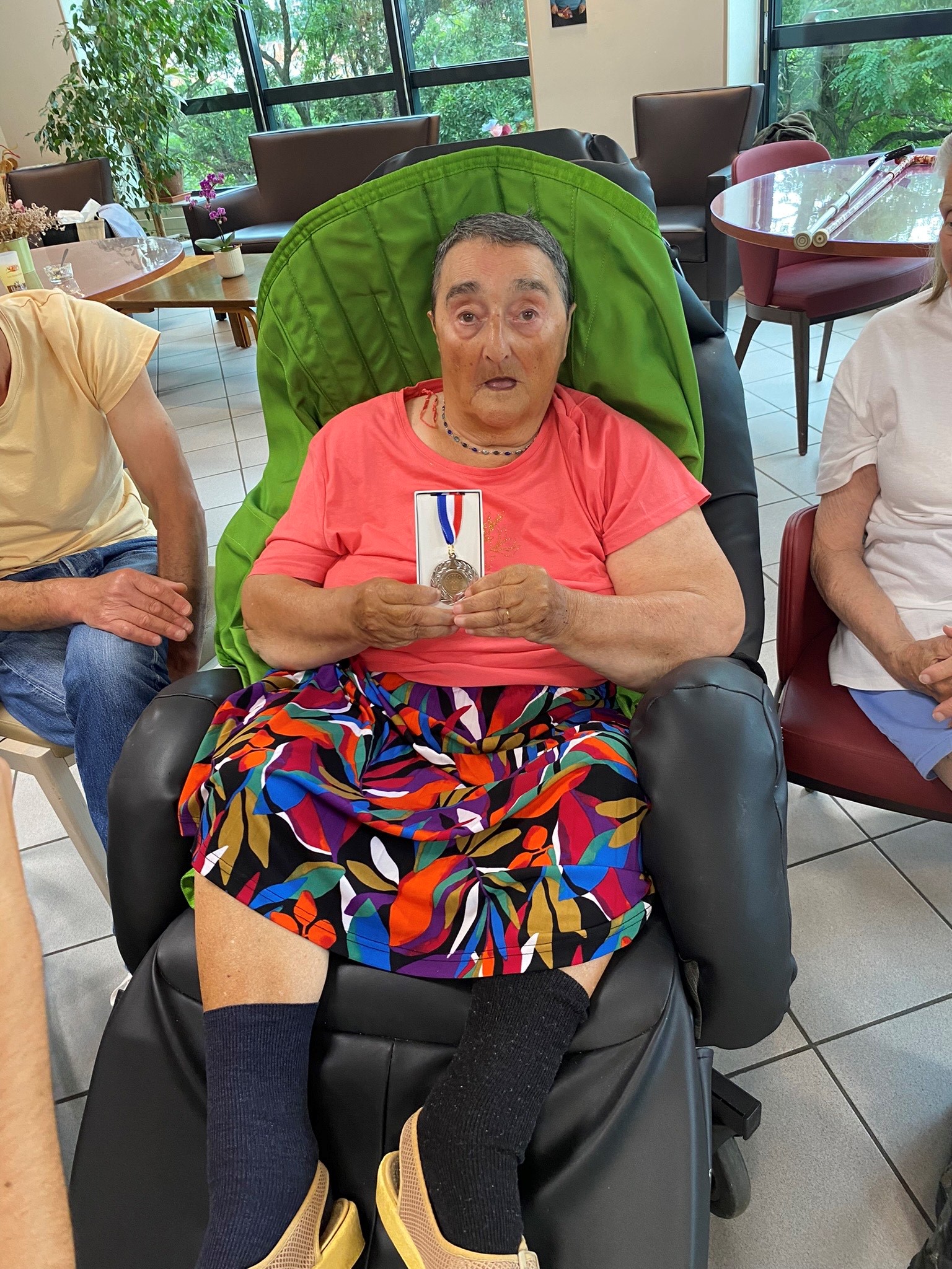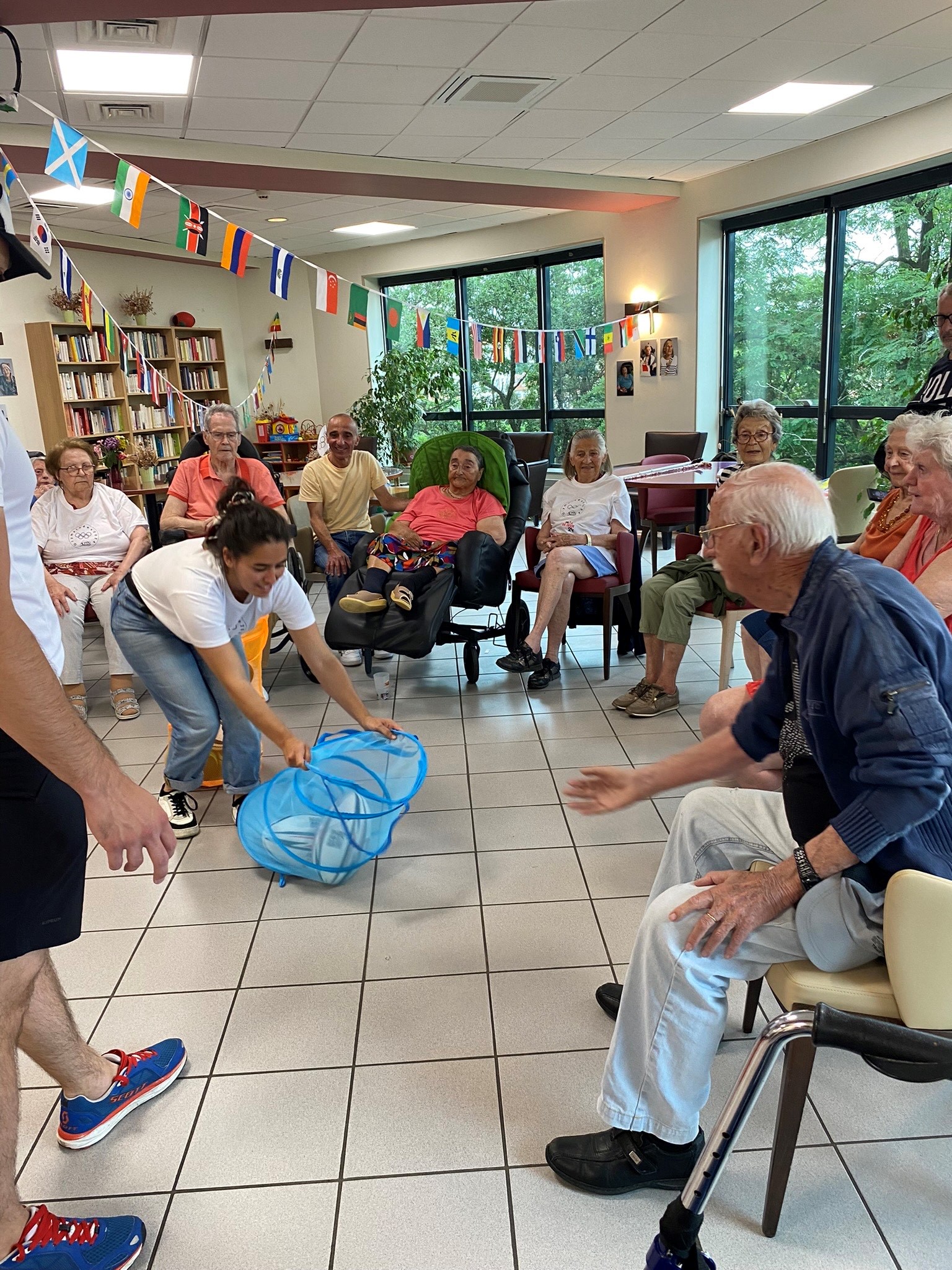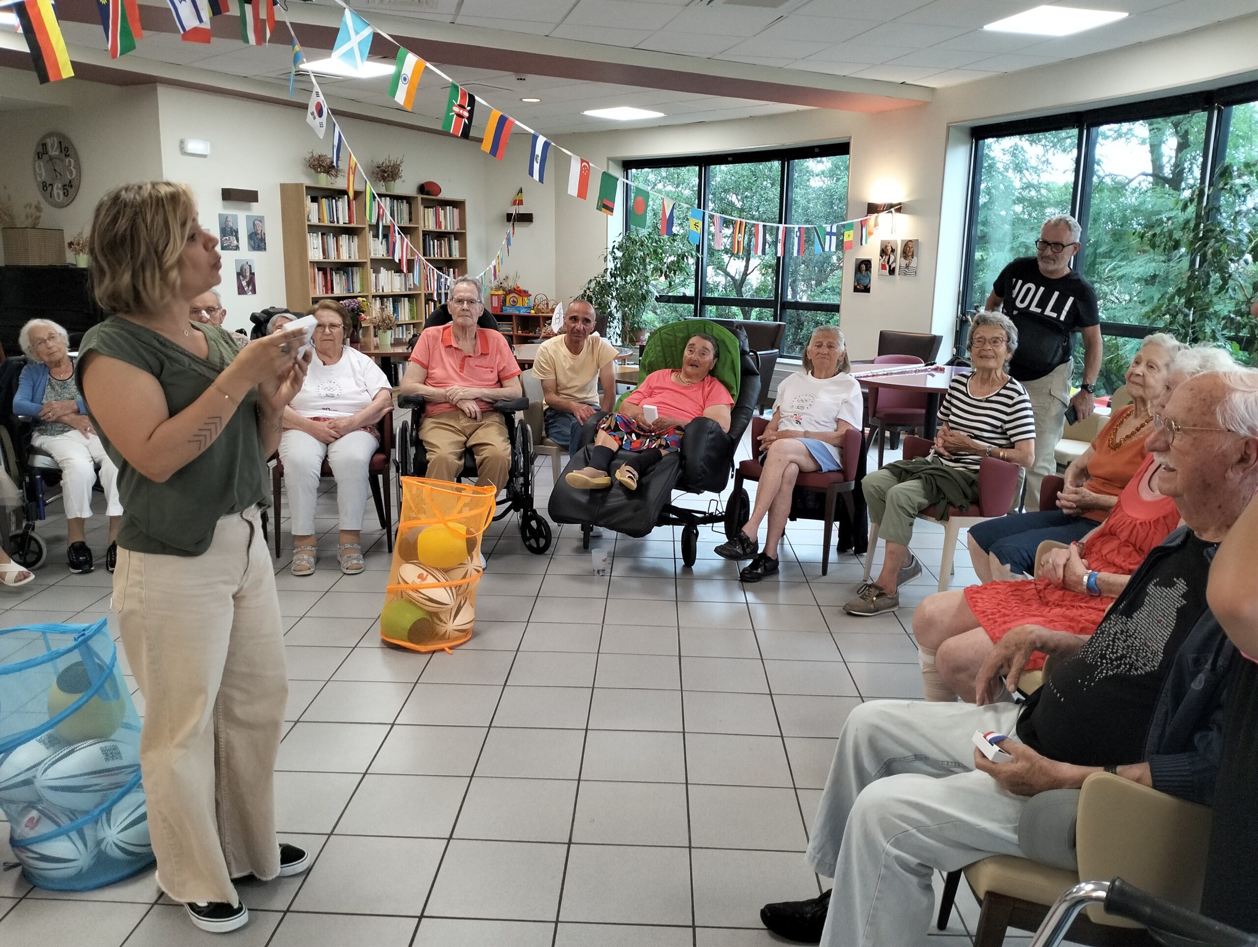 Avec les résidents de la Christinière à Taluyers, les résidents des Amandines se sont prêtés au jeu des olympiades. Au programme le mardi 2 juillet, rugby adapté avec OMNISPORT. Plus que la compétition, c’est la bonne humeur qui a dominé l’après-midi. Une ambiance amusante et conviviale sous les décorations et les supporters. Des médailles ont été données à des résidents qui ont été très heureux de les recevoir. Nous irons à la prochaine rencontre à la Christinière faire de la boxe !