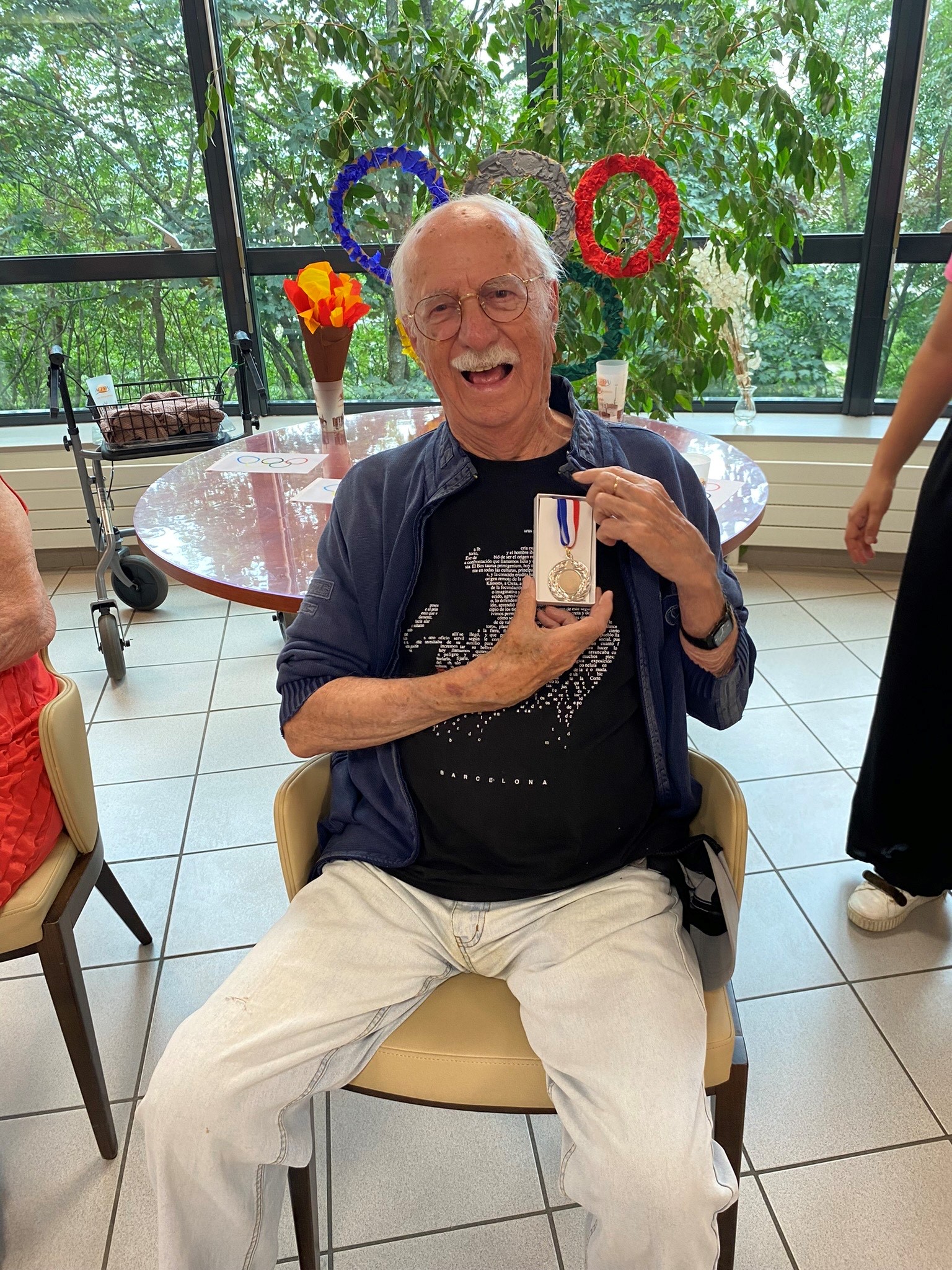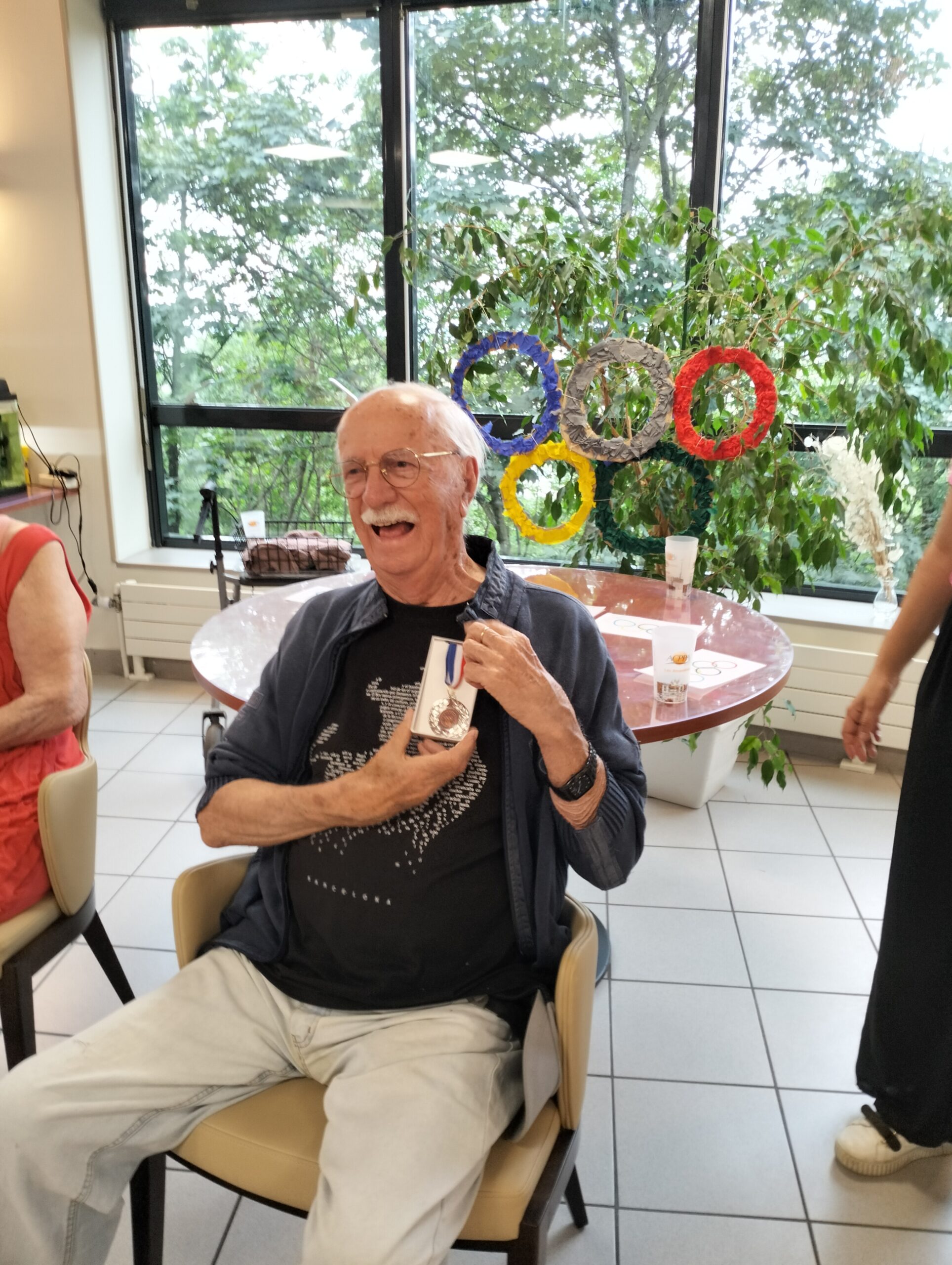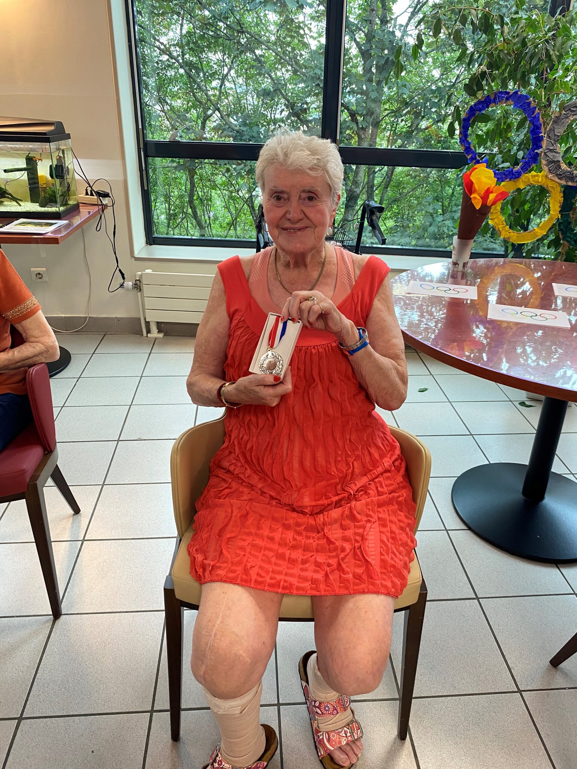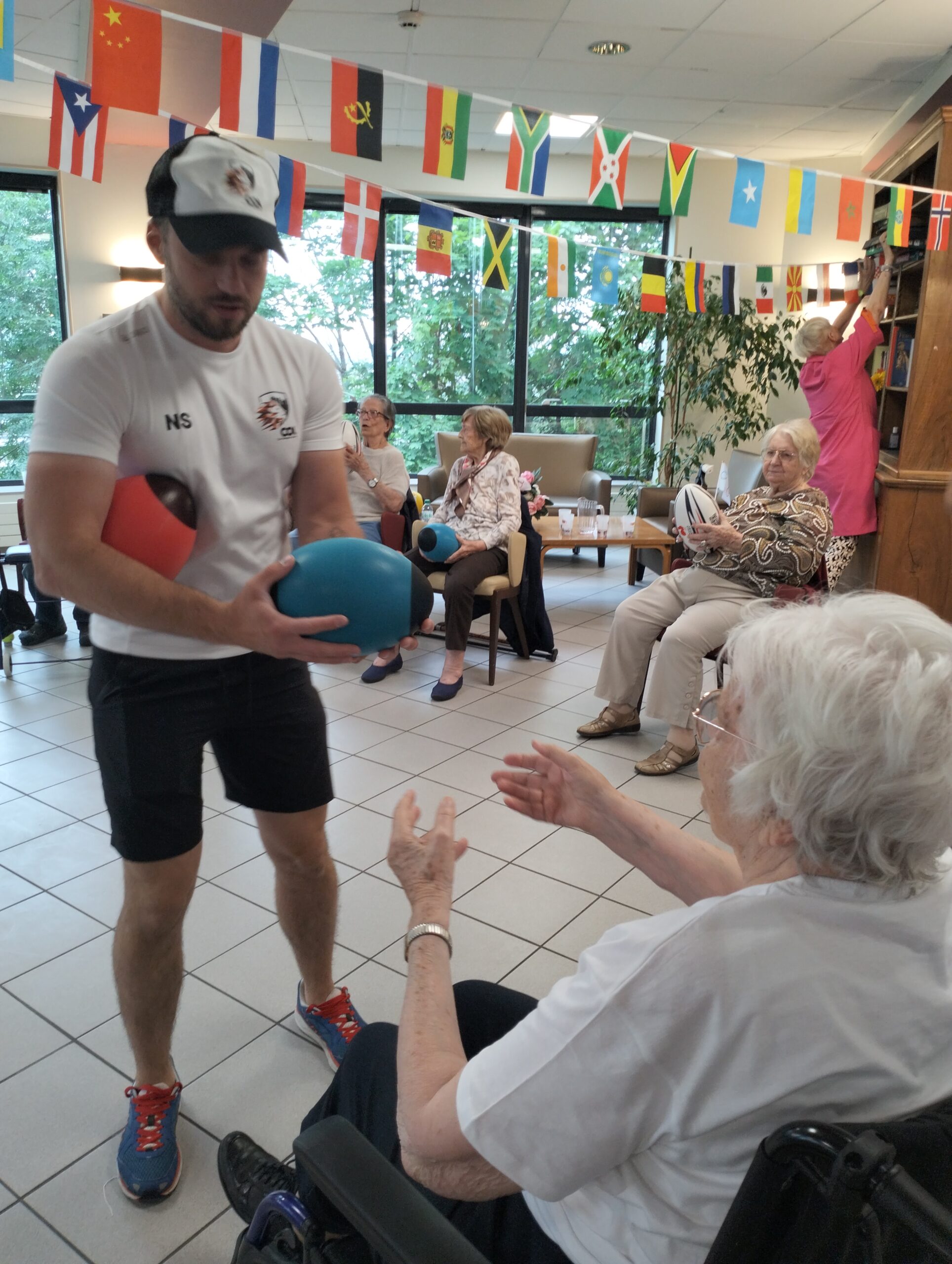 Avec les résidents de la Christinière à Taluyers, les résidents des Amandines se sont prêtés au jeu des olympiades. Au programme le mardi 2 juillet, rugby adapté avec OMNISPORT. Plus que la compétition, c’est la bonne humeur qui a dominé l’après-midi. Une ambiance amusante et conviviale sous les décorations et les supporters. Des médailles ont été données à des résidents qui ont été très heureux de les recevoir. Nous irons à la prochaine rencontre à la Christinière faire de la boxe !