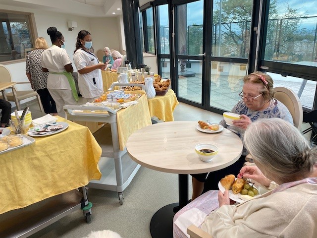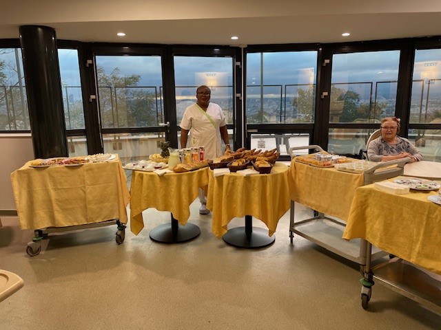Sur le mois d’octobre, nous avons planifié un petit déjeuner continental sur chaque étage pour les résidents et les professionnels. Le vendredi 4 octobre, le petit déjeuner continental sous forme de buffet avec du sucré et du salé sur notre UPDP a été une belle réussite. Les résidents ont bien mangé et les professionnels étaient contents.