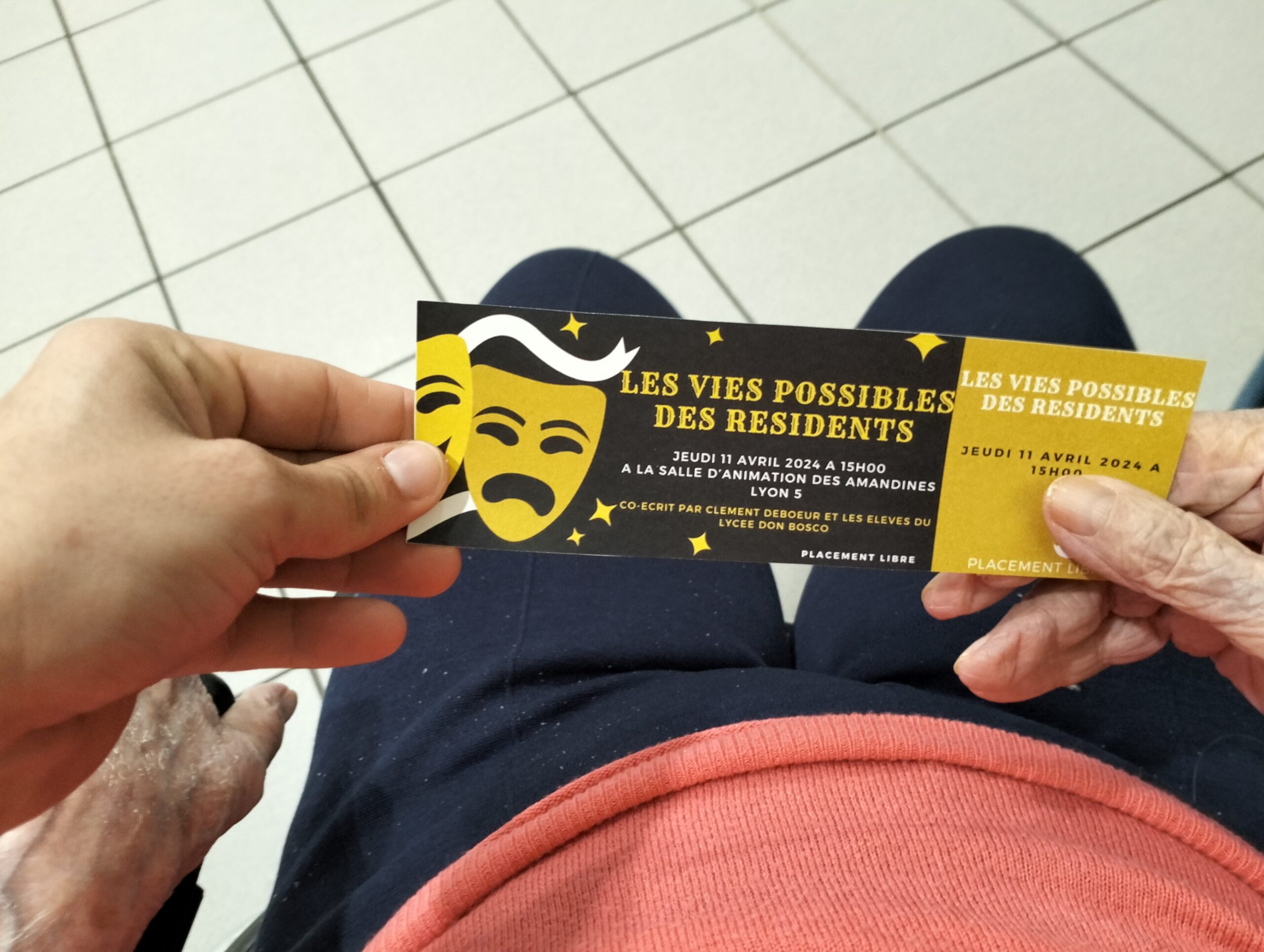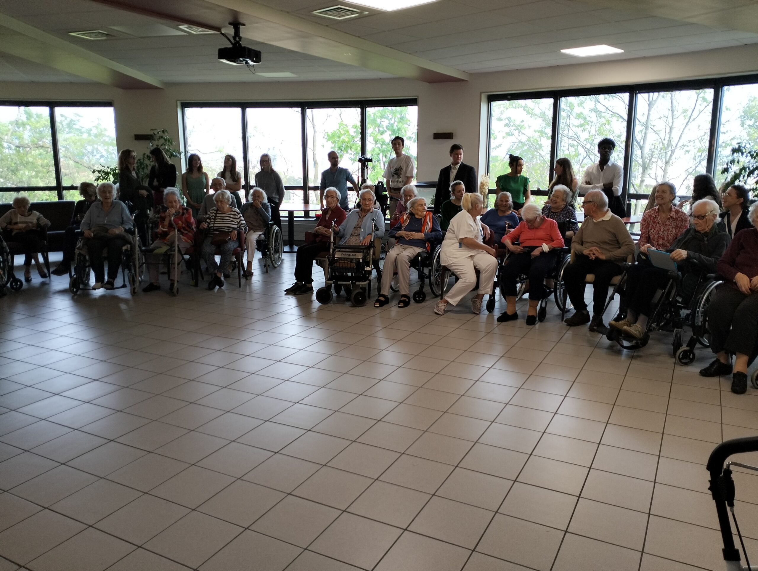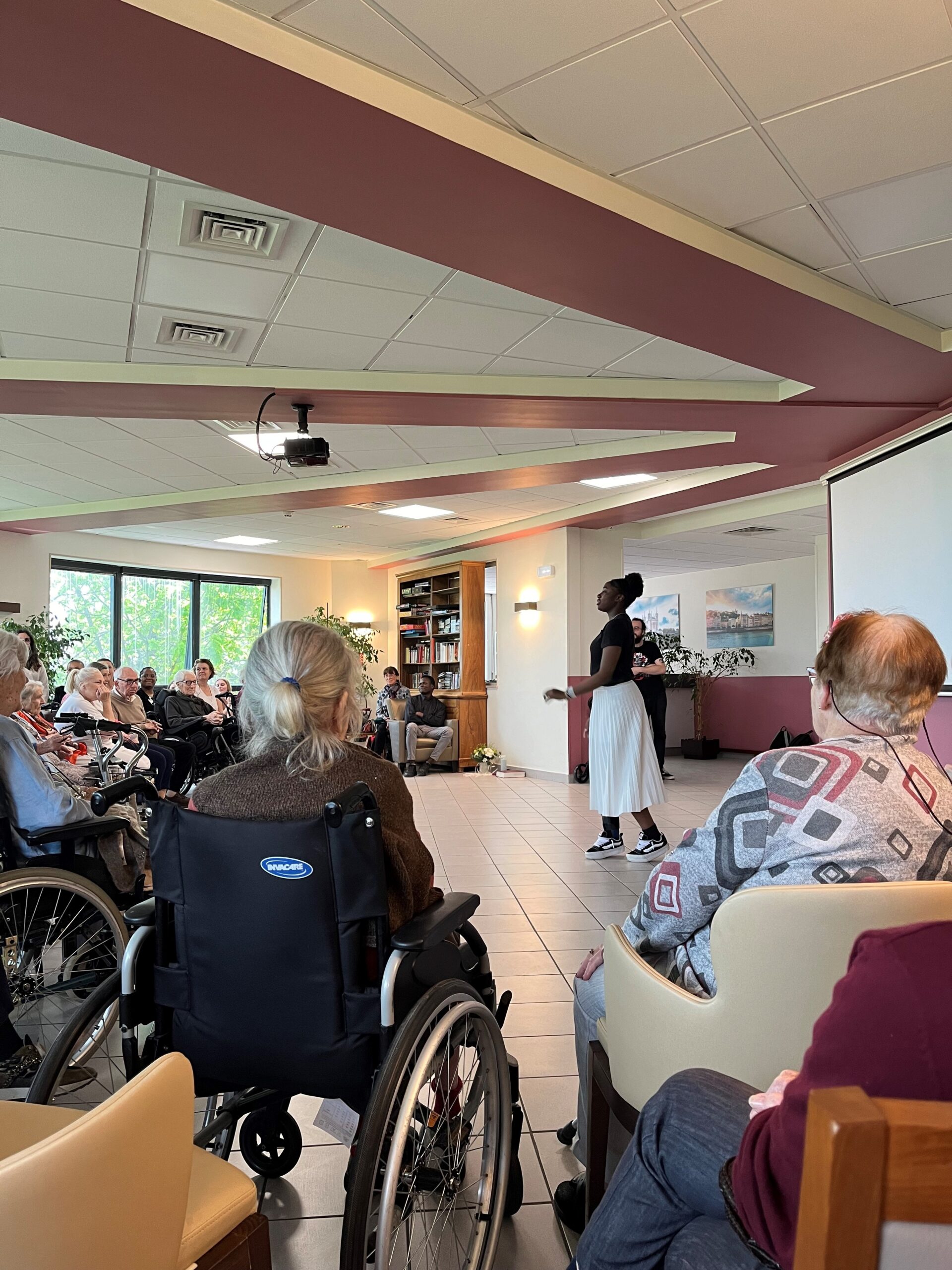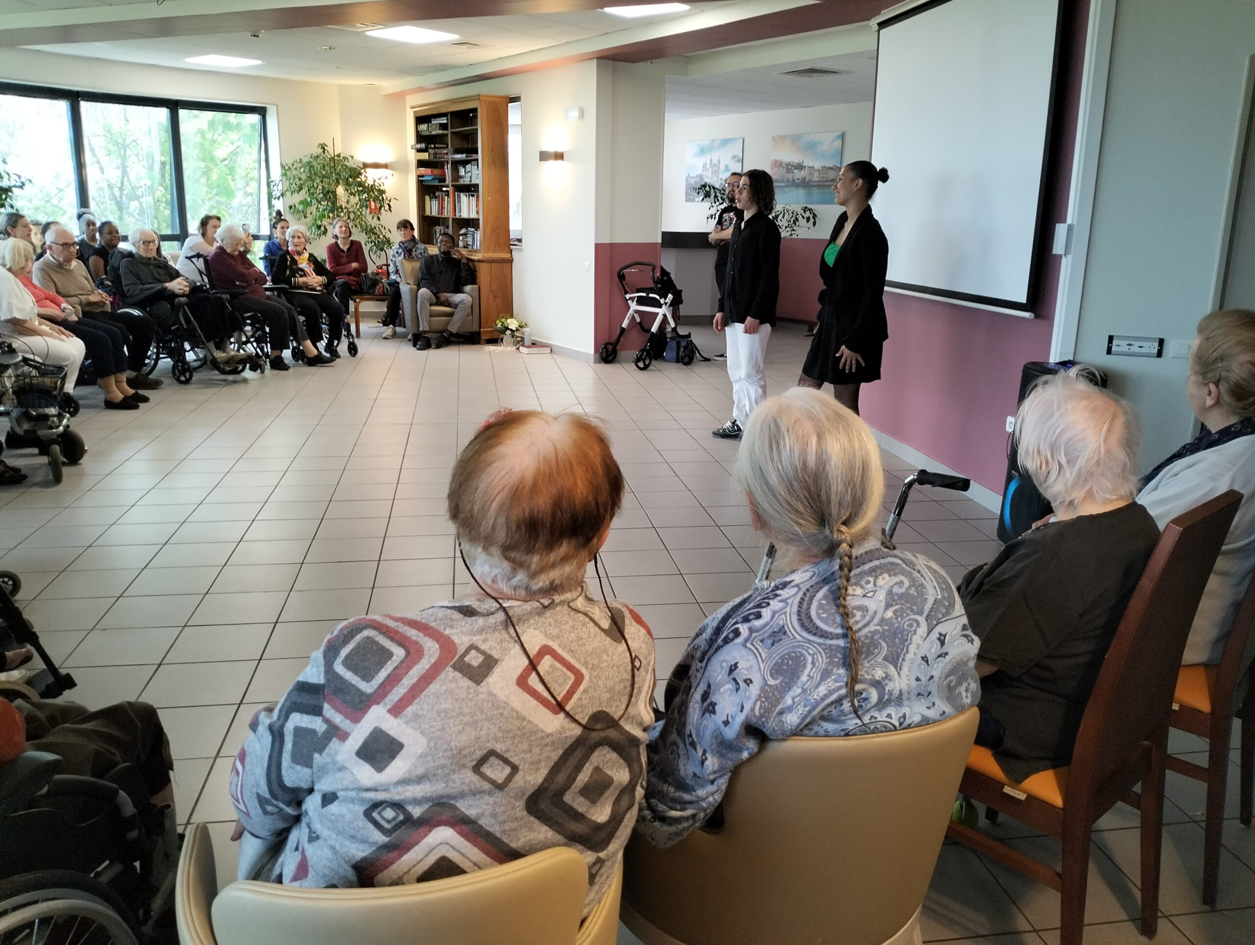 Pour clôturer le projet avec le théâtre du Point du jour et le lycée Don Bosco, nous avons accueillie une classe de lycéens qui est venue interpréter une pièce de théâtre. La pièce a été créée en partenariat avec Clément un comédien du théâtre du Point du Jour. Les lycéens sont venus à plusieurs reprises interviewer les résidents sur leur histoire de vie et ont récolté de nombreux récits. Ils les ont ensuite transformé en pièce de théâtre qu’ils nous ont joué. La pièce s’appelle « la vie possible des résidents ». Un beau moment de partage avec à la fin des cadeaux donnés aux résidents qui ont participé au projet. Merci au lycée Don Bosco et au théâtre du Point du Jour.