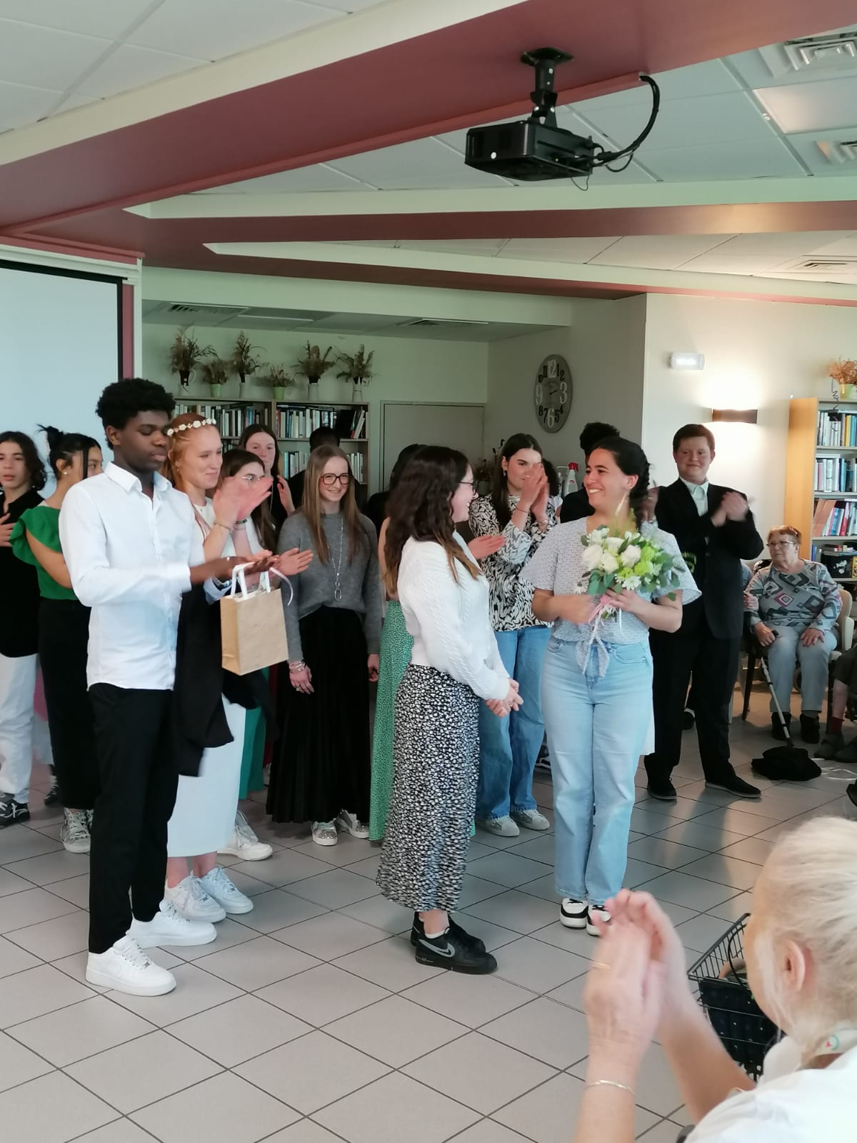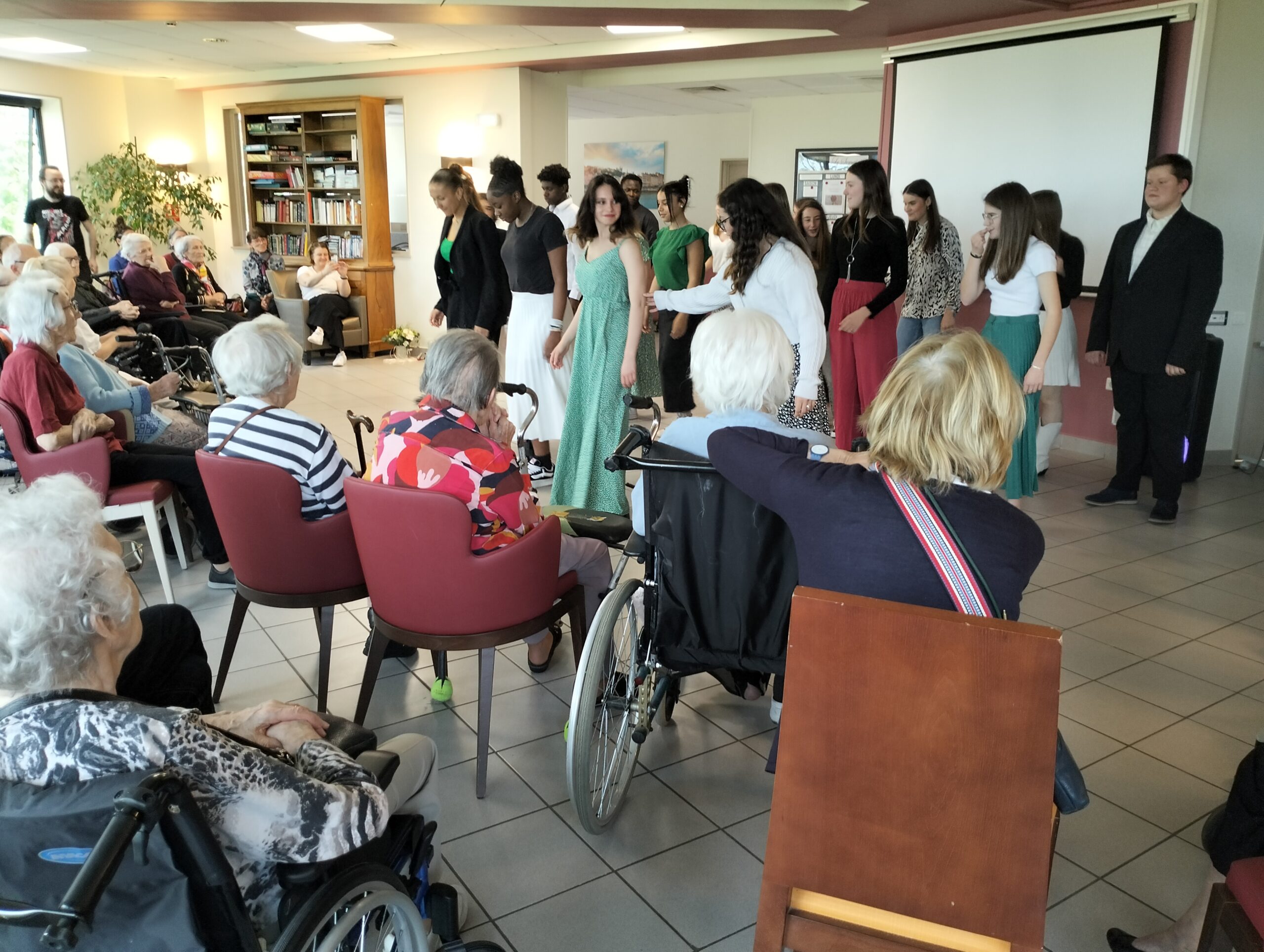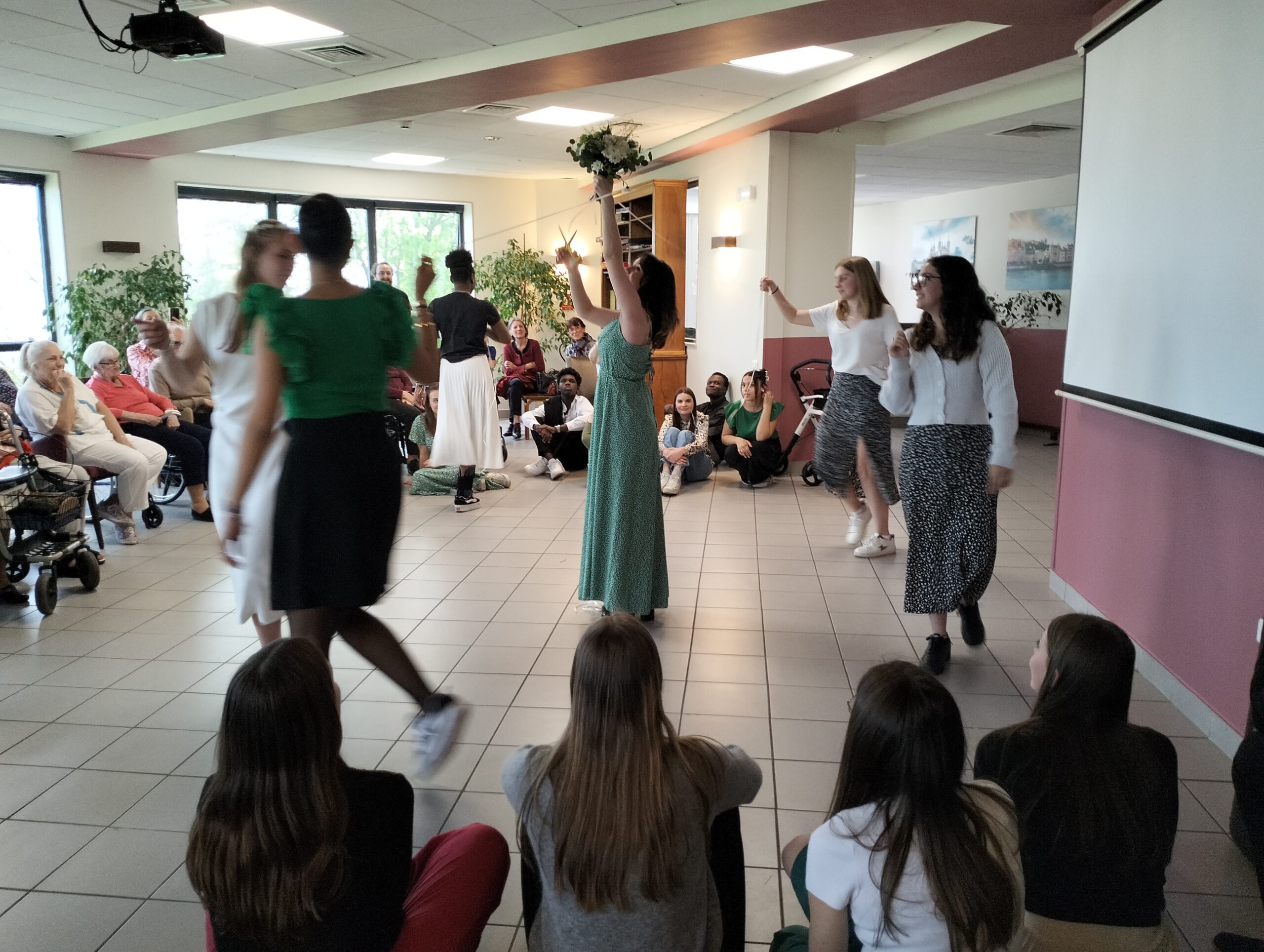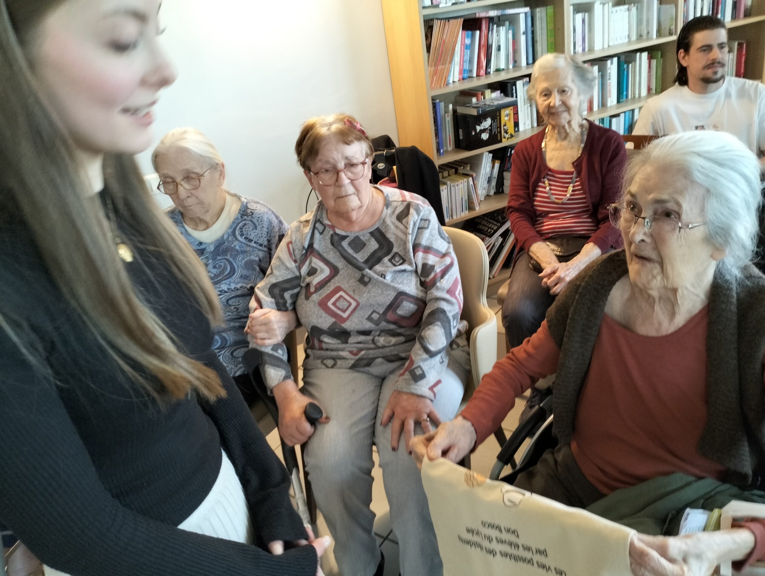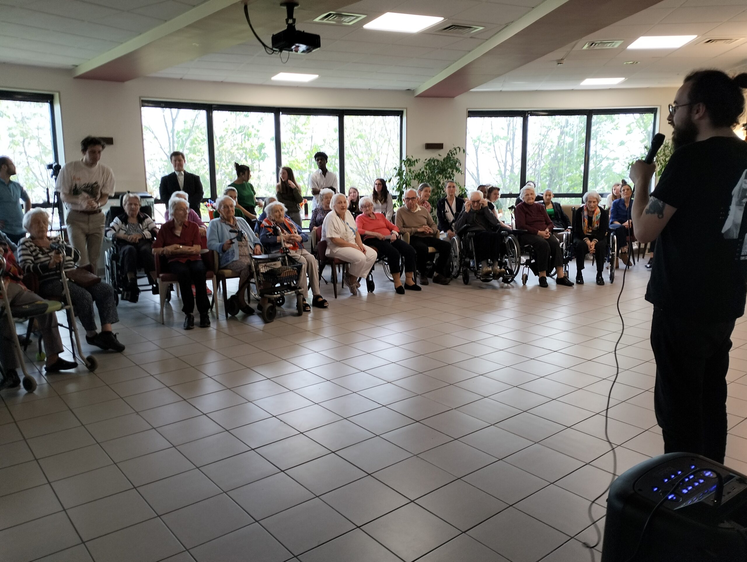 Pour clôturer le projet avec le théâtre du Point du jour et le lycée Don Bosco, nous avons accueillie une classe de lycéens qui est venue interpréter une pièce de théâtre. La pièce a été créée en partenariat avec Clément un comédien du théâtre du Point du Jour. Les lycéens sont venus à plusieurs reprises interviewer les résidents sur leur histoire de vie et ont récolté de nombreux récits. Ils les ont ensuite transformé en pièce de théâtre qu’ils nous ont joué. La pièce s’appelle « la vie possible des résidents ». Un beau moment de partage avec à la fin des cadeaux donnés aux résidents qui ont participé au projet. Merci au lycée Don Bosco et au théâtre du Point du Jour.