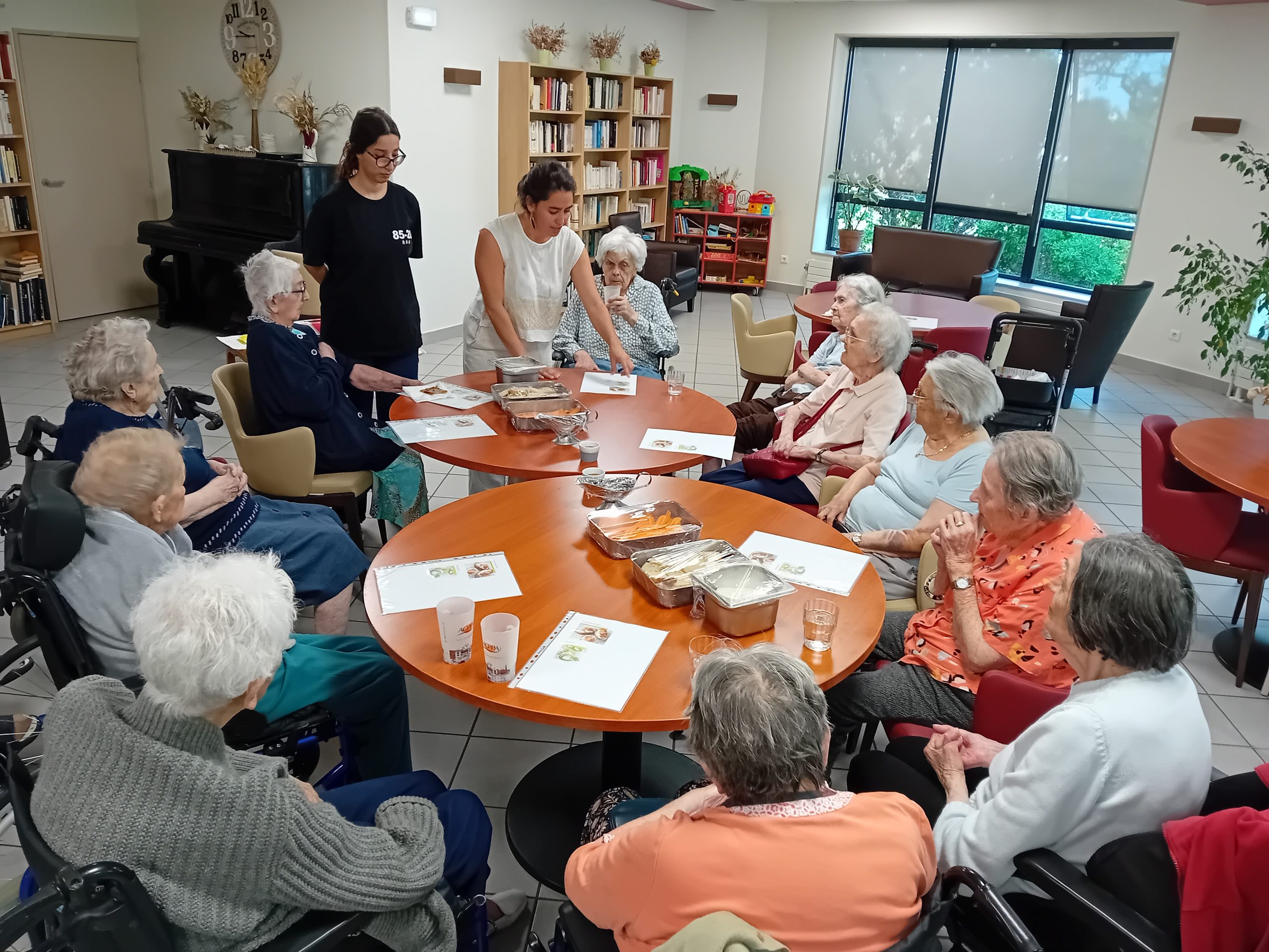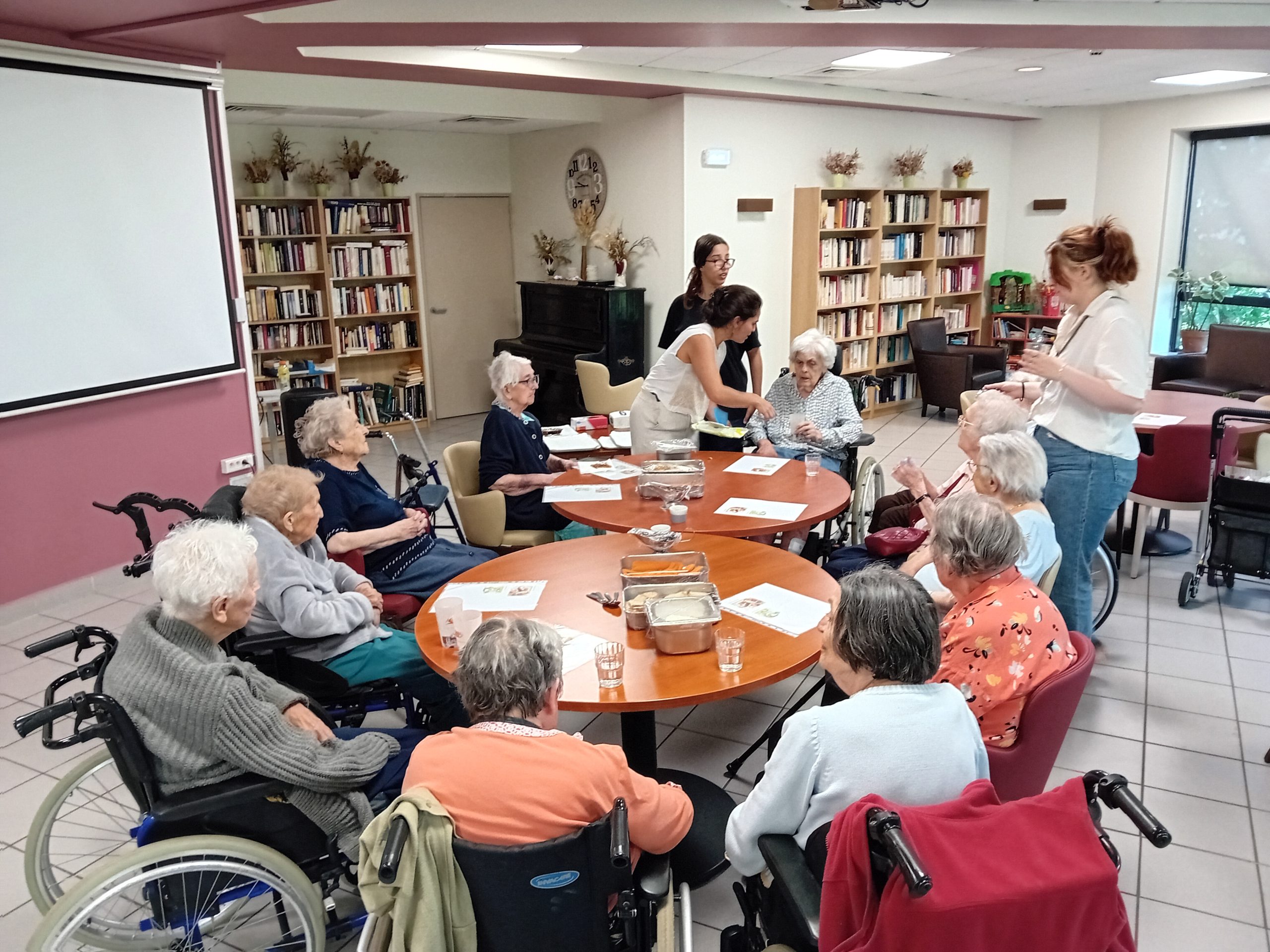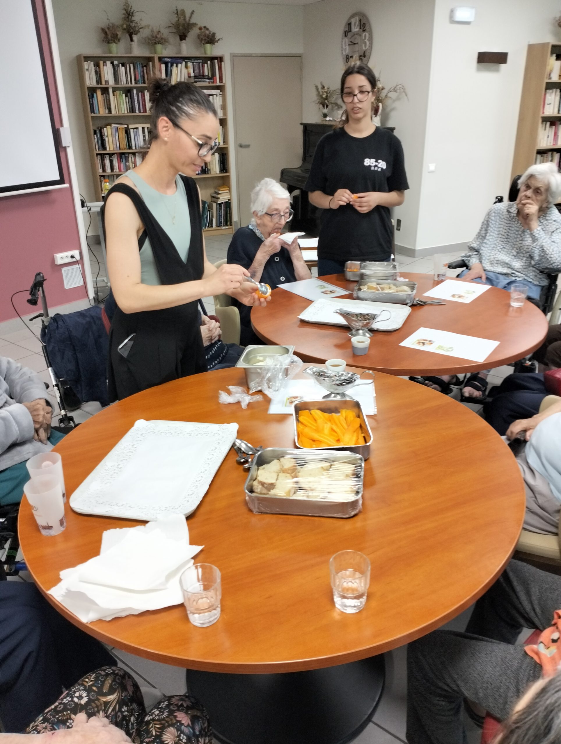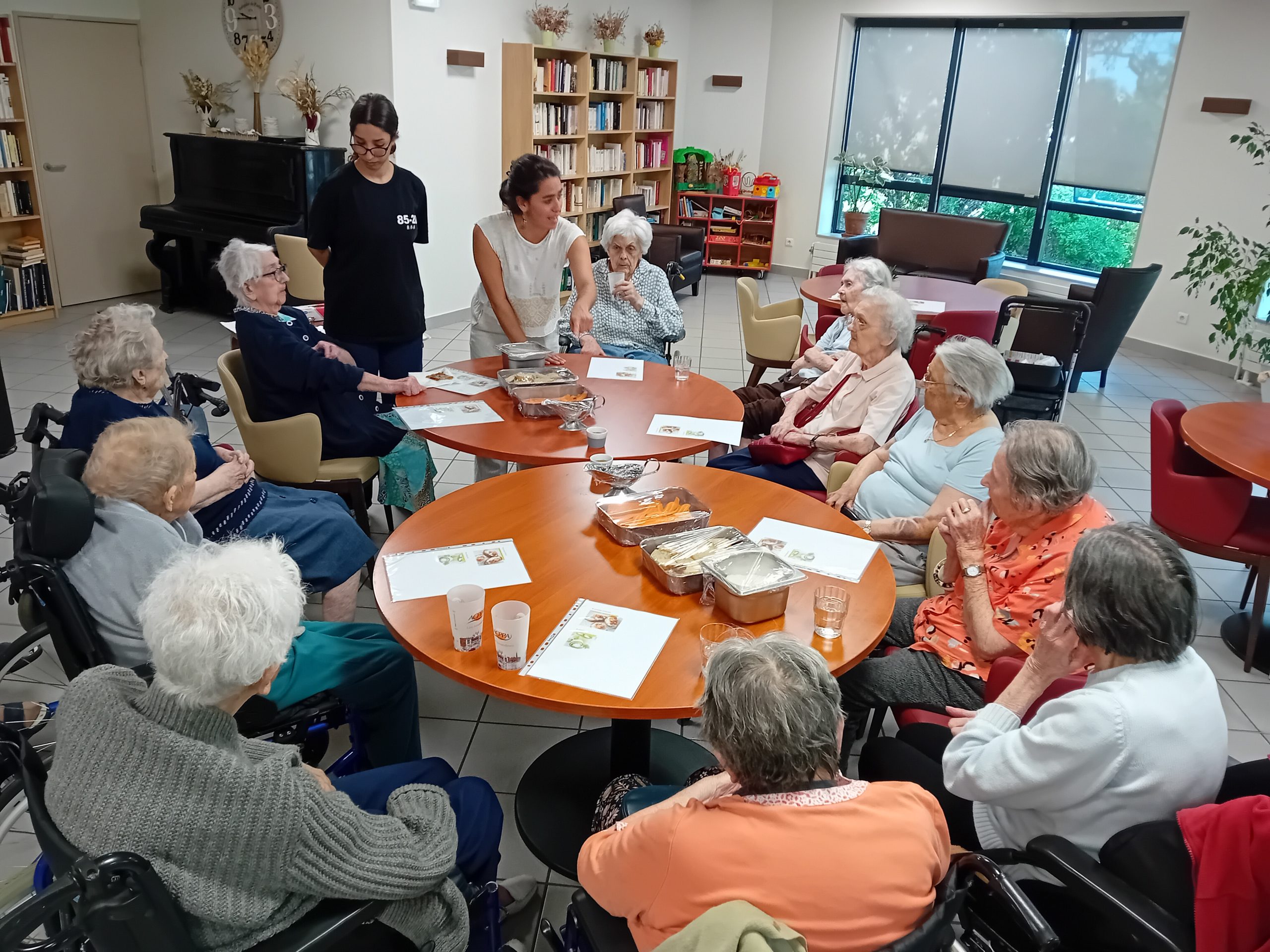 Pour le pot d’accueil des nouveaux résidents, Anissa la responsable hôtelière a préparé un atelier participatif. Les résidents ont donc dressé en atelier cuisine l’apéritif de la fin de journée. Au menu, roulés de carottes aux fromages frais et tartines sucré/salé, miel, fromage et raisins secs, tout cela accompagné bien sûr par un kir cassis.