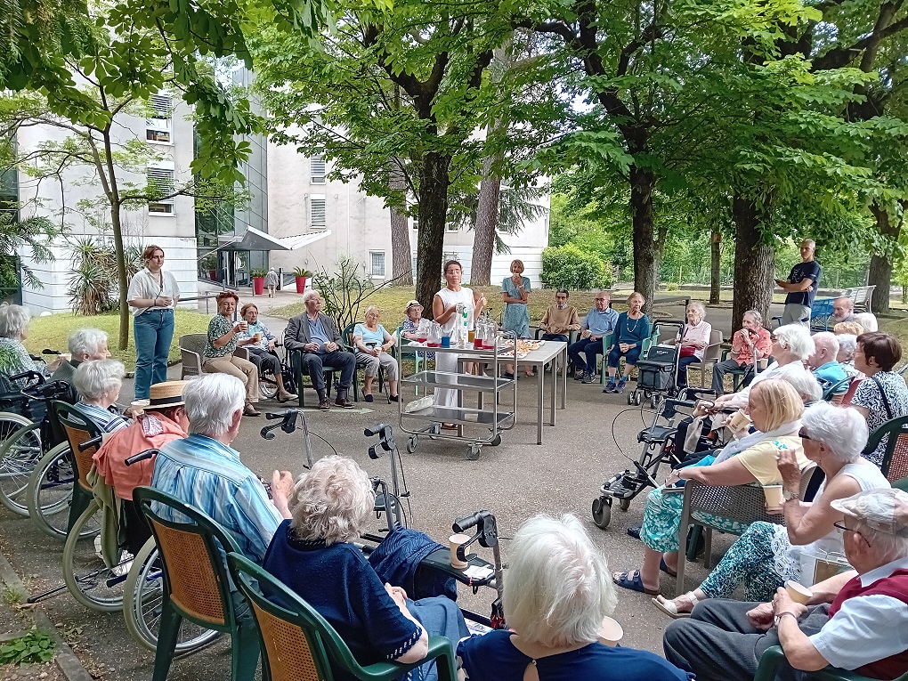 Avec les beaux jours, nous avons pu profiter de notre premier apéritif dans le parc avec la présence de nombreux résidents et familles. Un moment très sympathique passé tous ensemble avec la présentation des nouveaux résidents pour faciliter leur intégration dans notre maison.