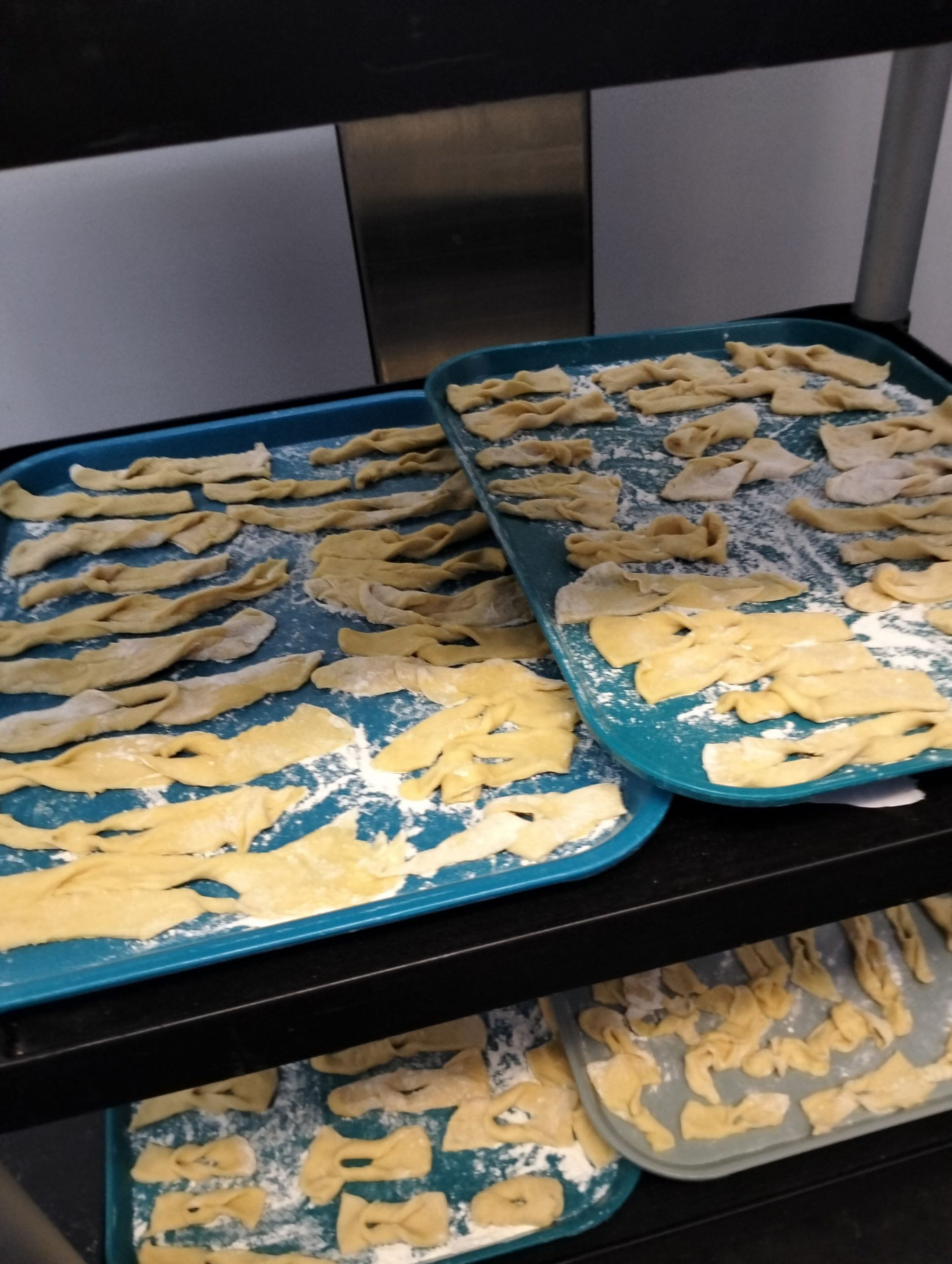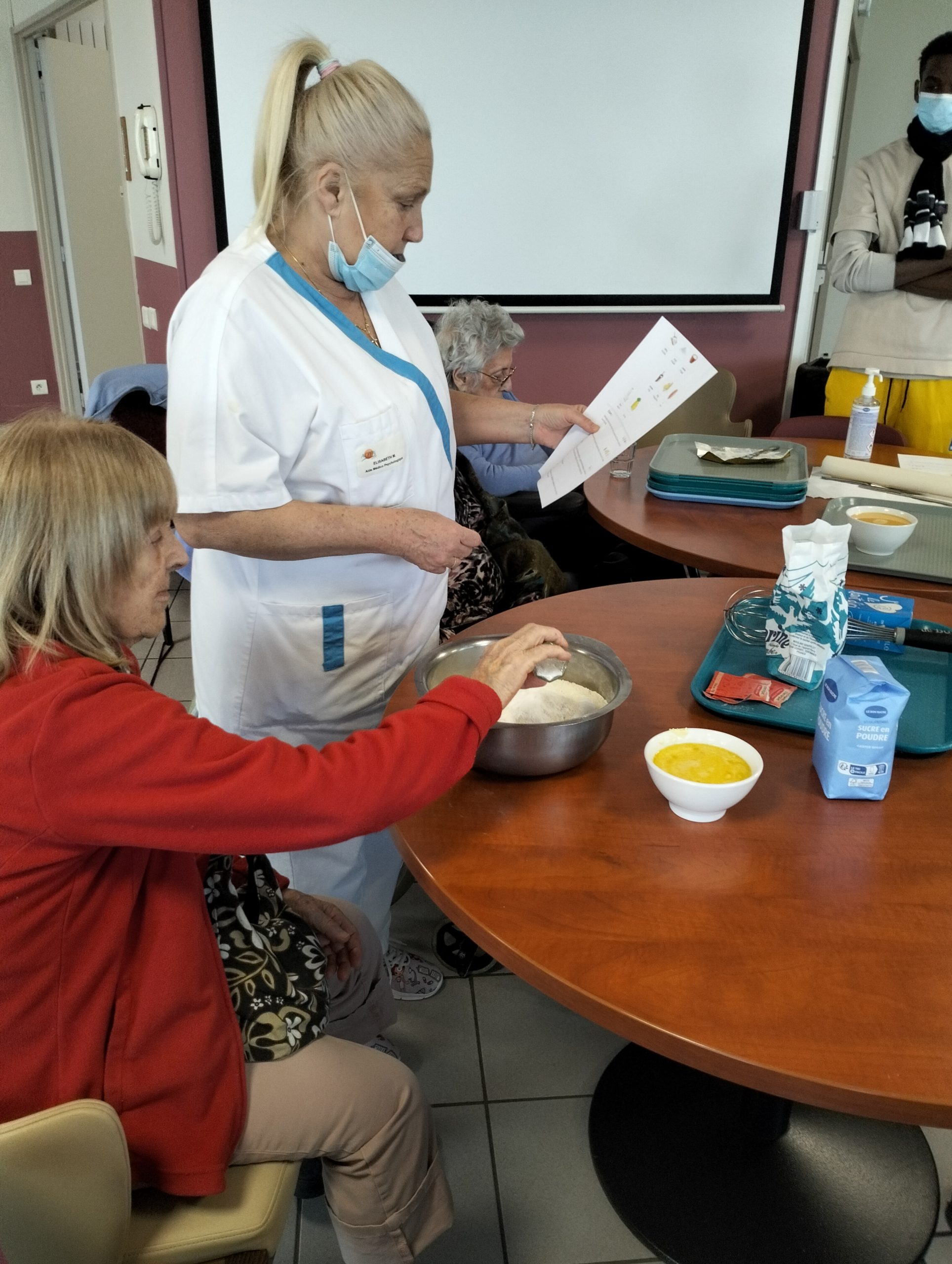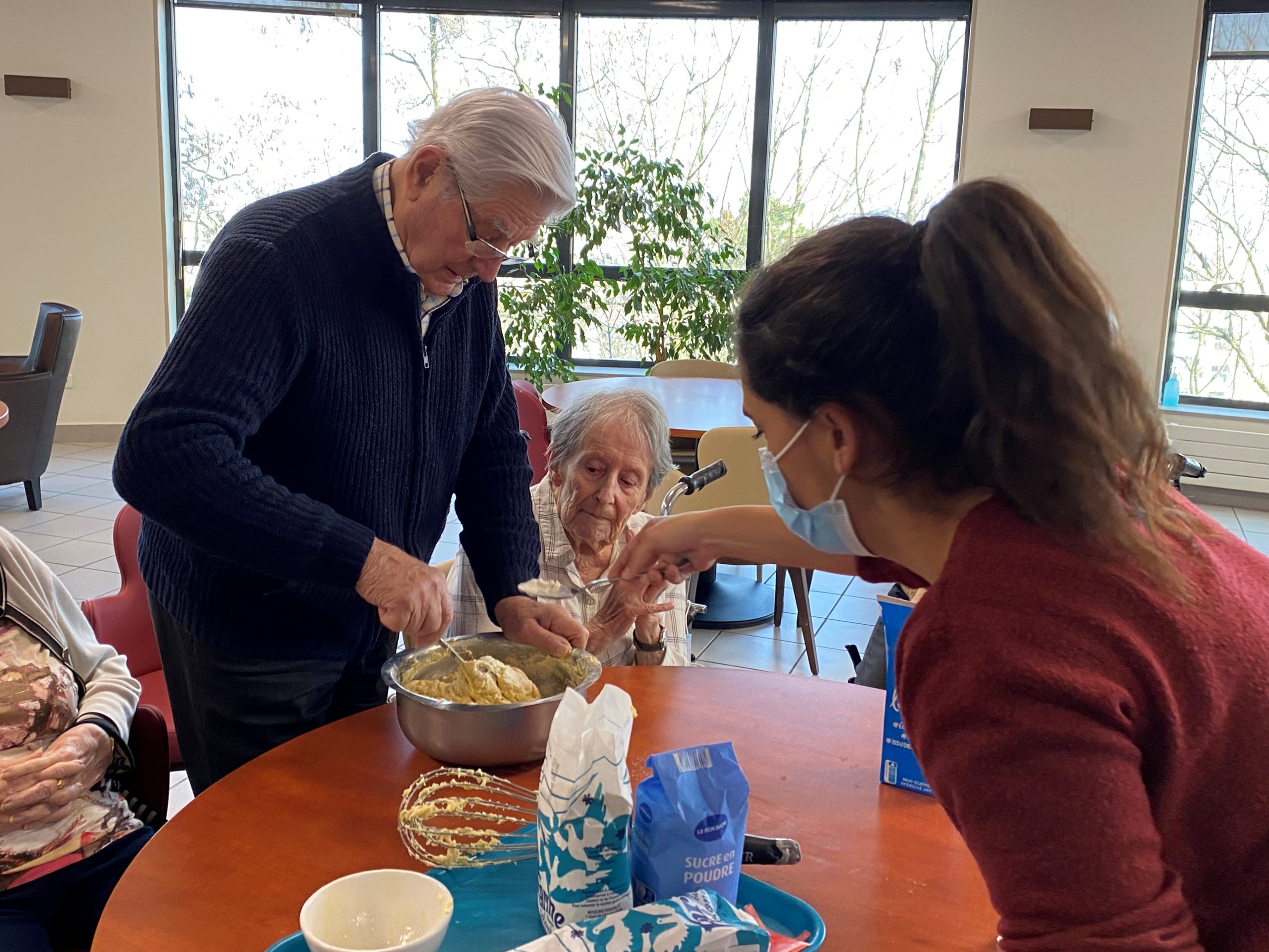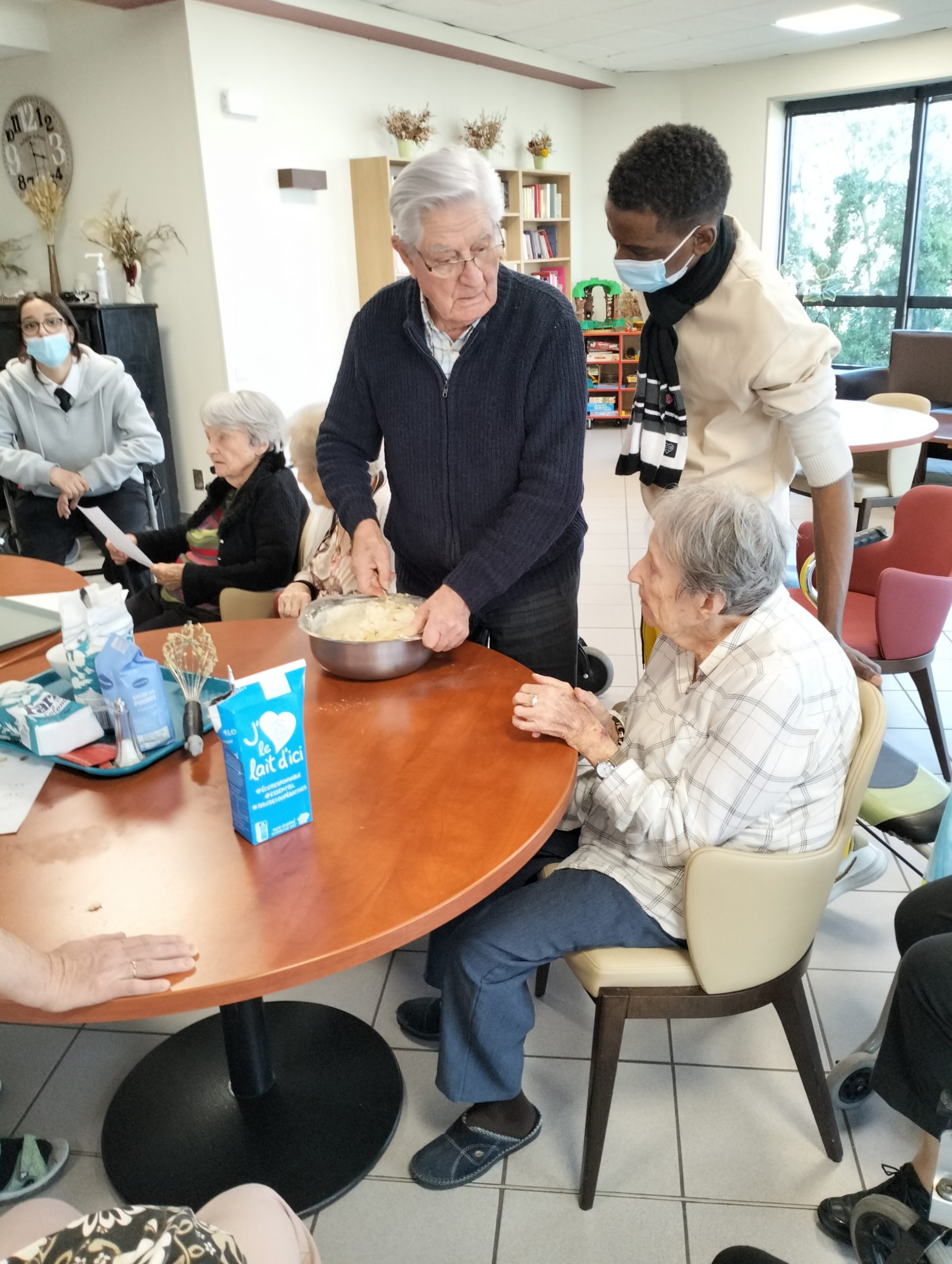 Pour préparer le carnaval, les résidents ont préparé 130 bugnes. Clara a finalisé la cuisson juste avant la venue des enfants aux Amandines. Merci aux résidents qui ont étalé, coupé et mis en forme nos très bonnes bugnes.