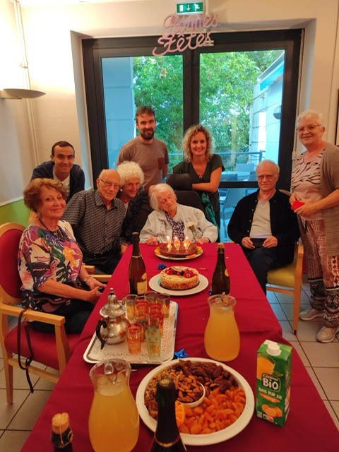 Depuis septembre 2023, nous avons mis en place la possibilité de privatiser le salon des invités les après-midi de 15h à 17h sur réservation auprès de Mme MARCON (qui fait ensuite le lien avec le chef et le second de cuisine) avec la proposition de différentes prestations par nos cuisiniers sur une carte. En pâtisserie, trois propositions : une génoise aux fruits, une tarte au citron et une tarte au chocolat. En boissons, les propositions sont nombreuses : une carafe de thym citronné frais, une carafe de jus d’orange, un thermo de café, un thermo de thé… Les résidents avec leurs proches peuvent ainsi fêter un évènement comme un anniversaire. Des moments de partage très appréciés !