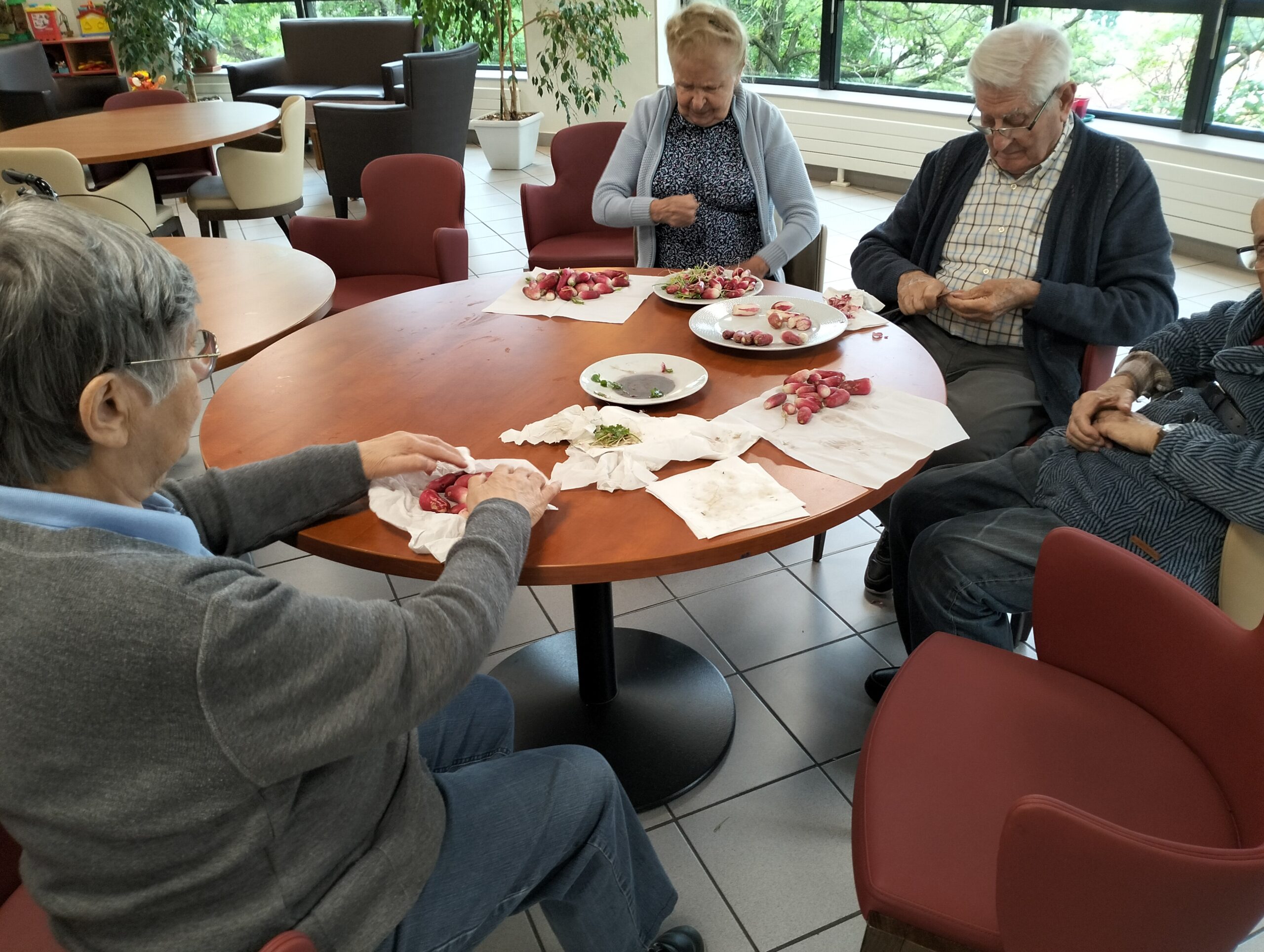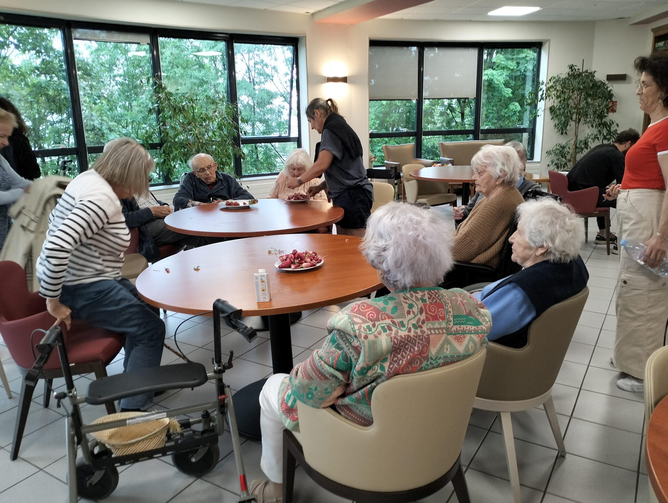 Les résidents sont très heureux de récupérer les récoltes de notre jardin pour un temps de dégustation.