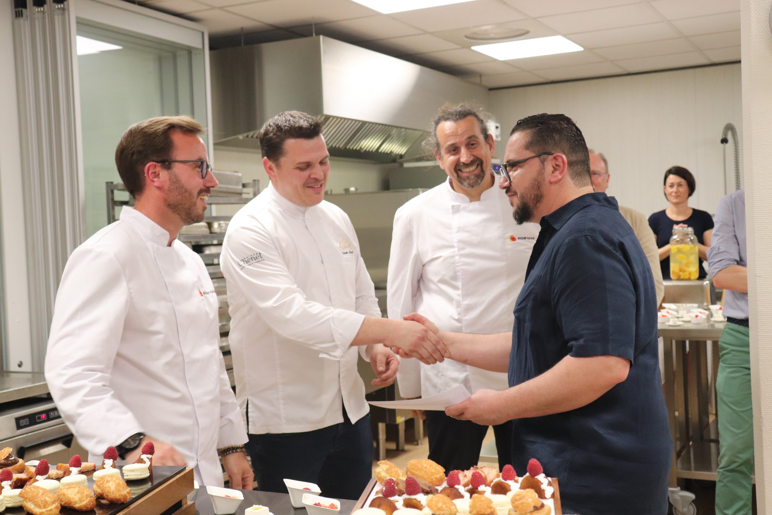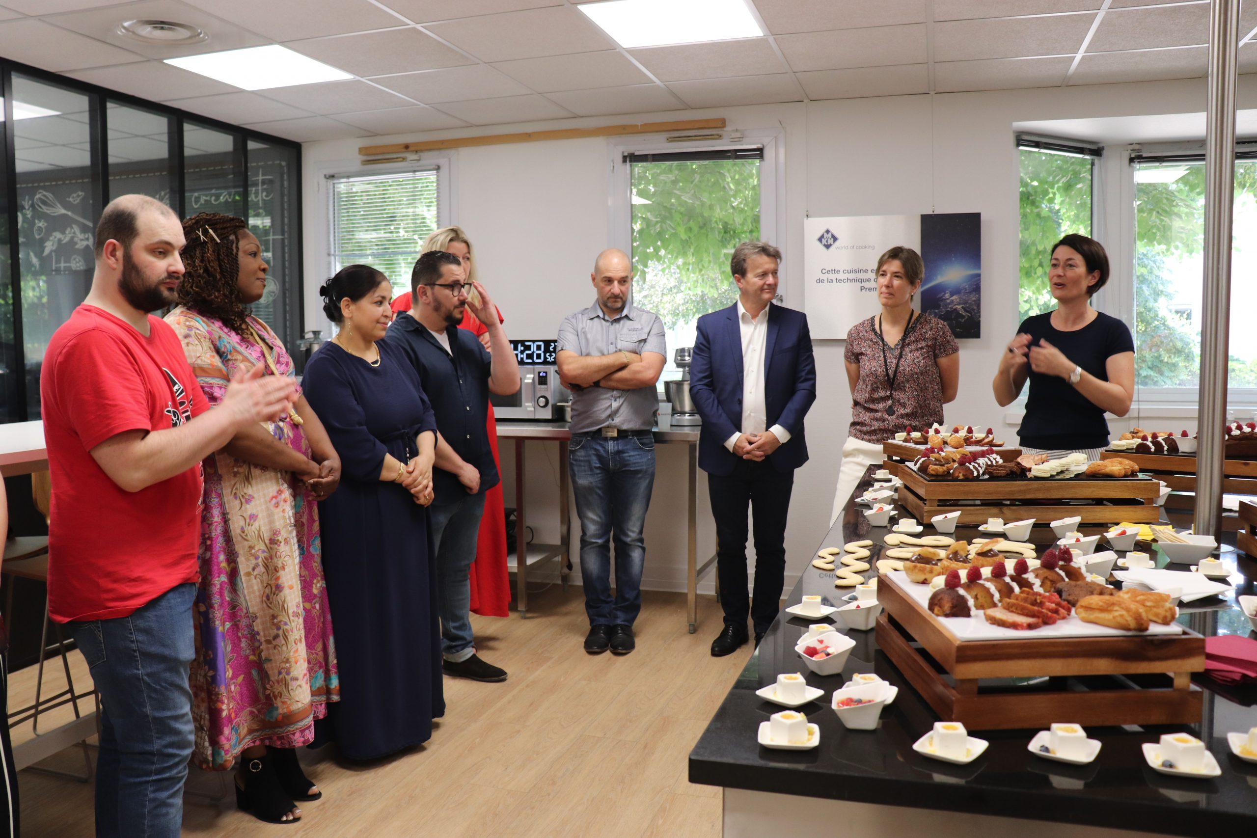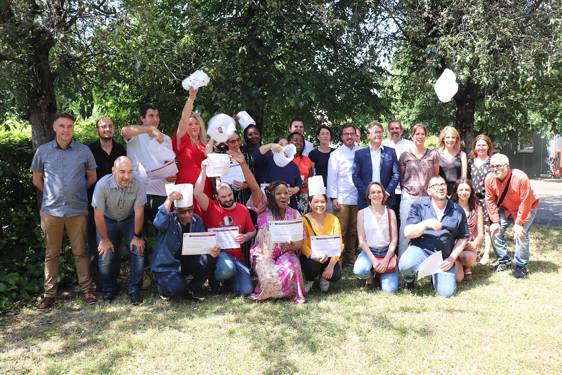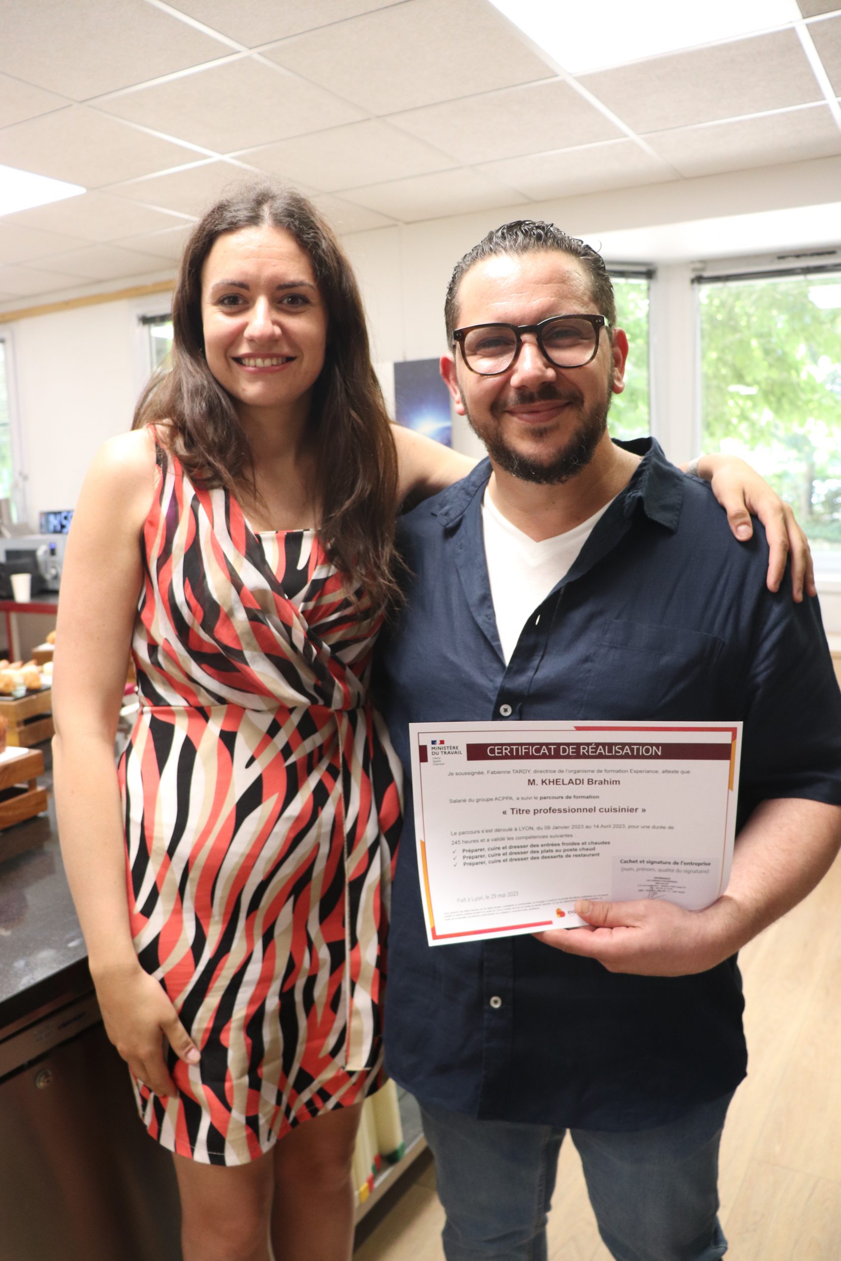 Mme MARCON a participé le lundi 29 mai à la remise du diplôme de titre professionnel de cuisinier à plusieurs commis et seconds de cuisine dont Brahim, le second de cuisine des Amandines. Nous sommes fiers de la réussite de Brahim et de sa belle évolution professionnelle au sein de l’établissement. Une réelle satisfaction après quatre mois d’investissement personnel pour réaliser cette formation avec un rythme d’alternance soutenu d’une semaine sur deux dans les locaux d’Expériance à Gerland.