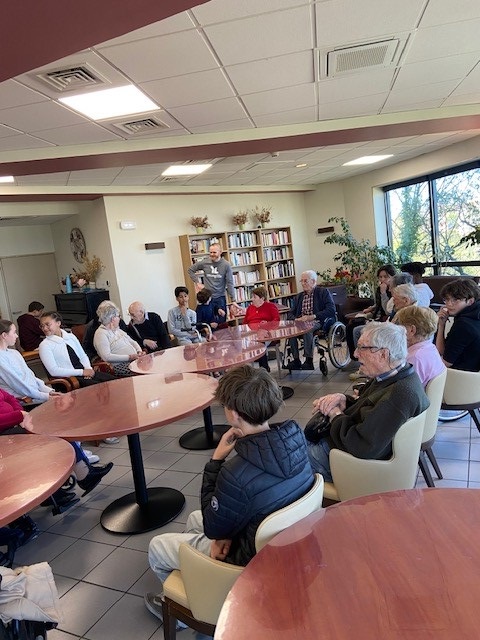 Nous organisons régulièrement des rencontres intergénérationnelles avec les élèves du collège Saint-Marc pour le plus grand plaisir de tous.