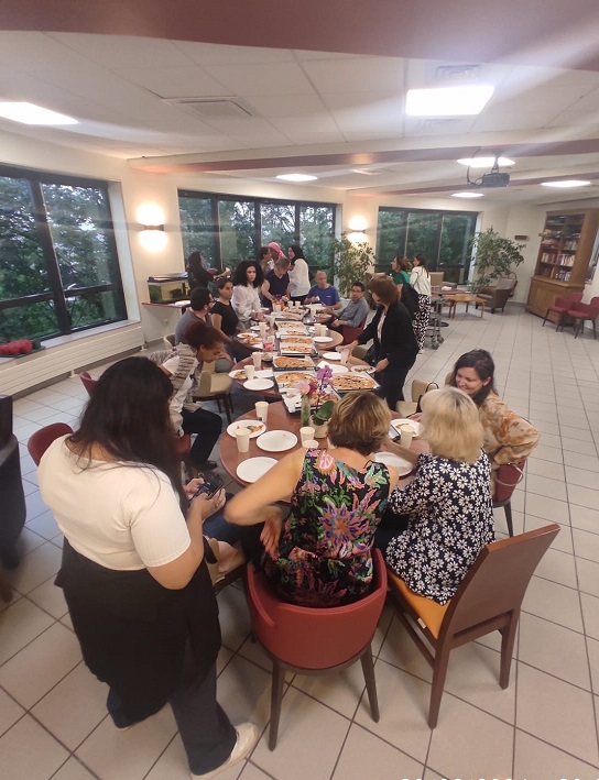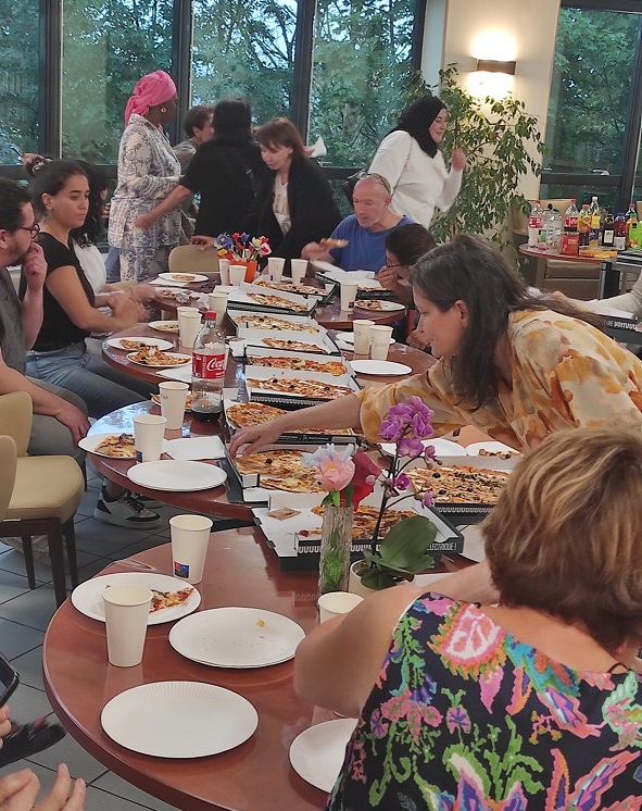 Pour se retrouver tous ensemble sans les blouses hors contexte de travail, Mme MARCON a organisé un repas du personnel avec apéritif, pizzas et dessert. Une belle soirée renforçant l’esprit d’équipe aux Amandines.