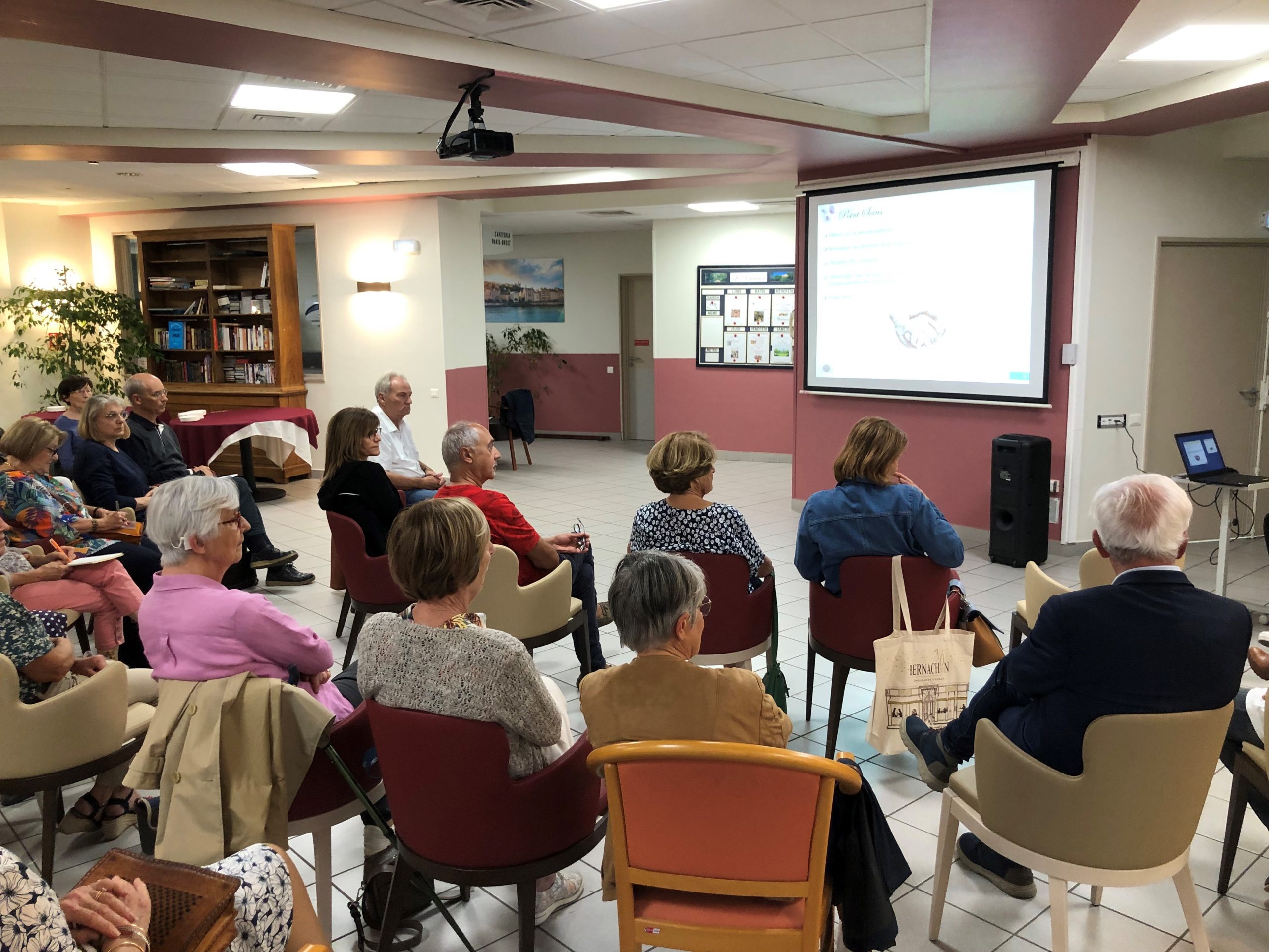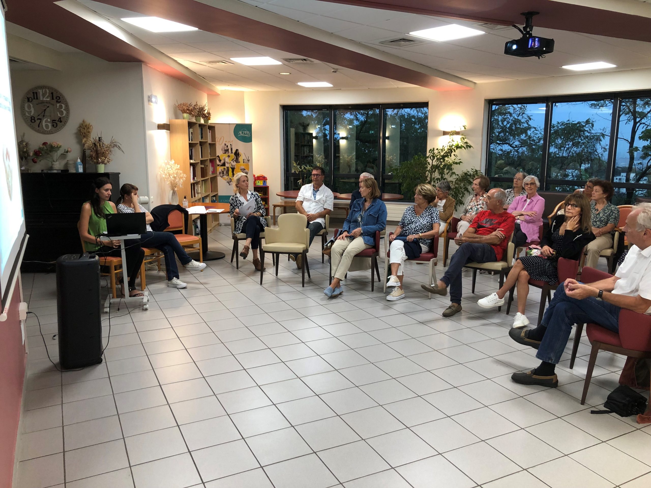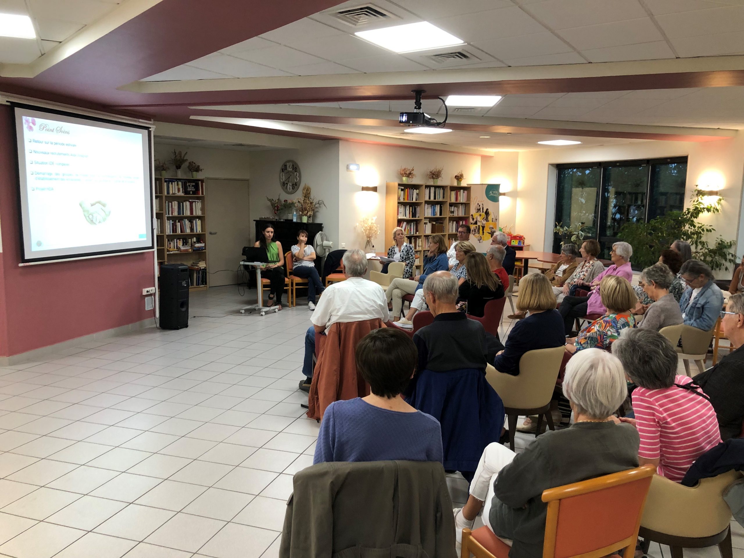 Jeudi 21 septembre, nous avons convié tous les proches des résidents à participer à notre réunion des familles en fin de journée à 18h avec une présentation et ensuite le partage d’un buffet tous ensemble préparé par nos cuisiniers. Lors de cette réunion, nous avons présenté les résultats de l’enquête de satisfaction familles et résidents et réalisé un point Soins, Hébergement, Restauration, Patrimoine et Vie sociale. Un moment convivial avec des familles contentes. A la fin de la réunion, la directrice, la responsable pôle soin, le médecin coordonnateur, le responsable pôle hébergement et la psychologue ont pris le temps de répondre aux questions individuelles. Chaque année, nous organisons 4 réunions familles sur les 4 étages de l’établissement puis sur le mois de septembre une réunion des familles « plénière » en conviant tous les proches des résidents. Beaucoup de familles sont très investies dans notre maison en participant notamment aux sorties extérieures avec les résidents.