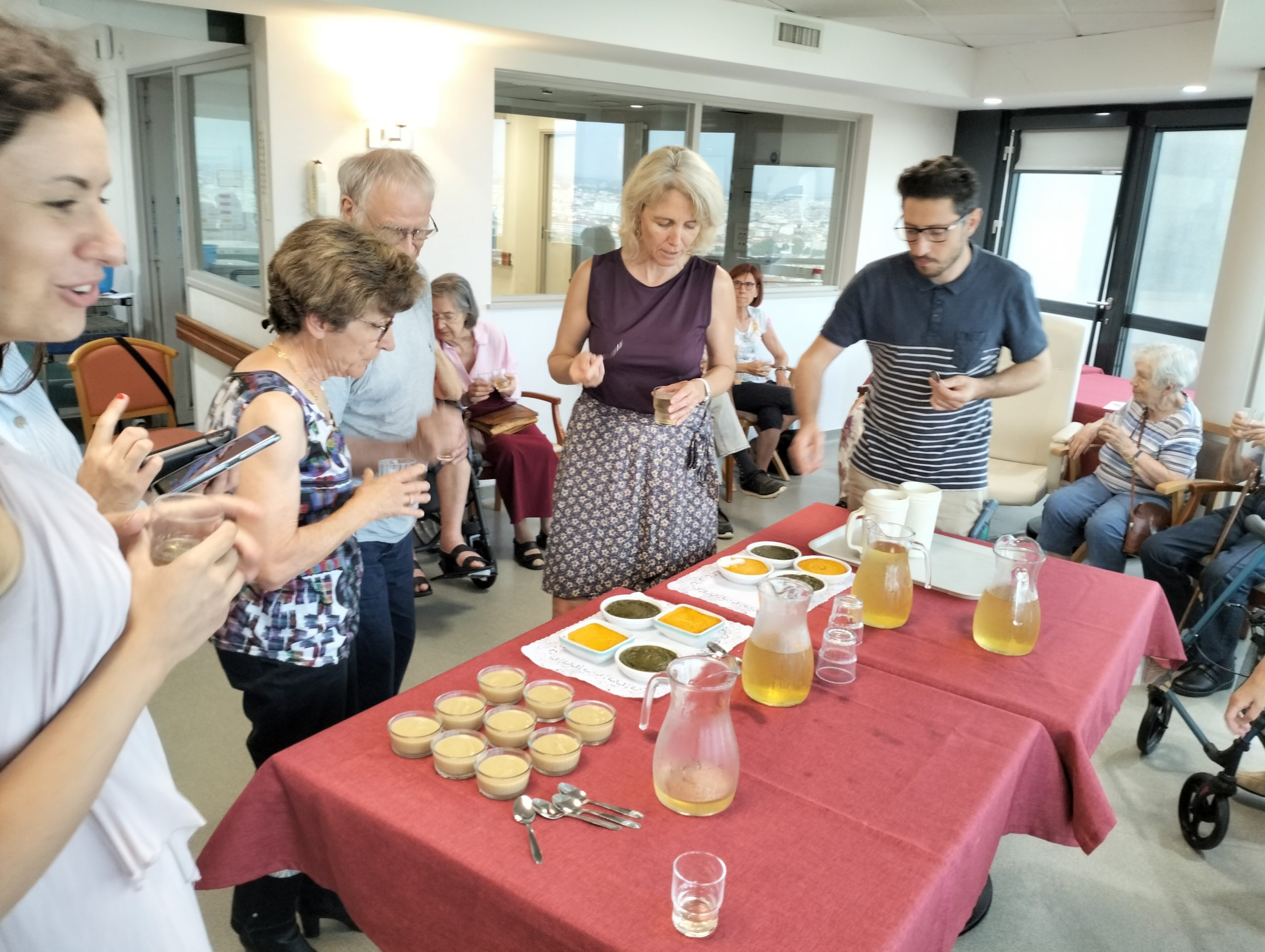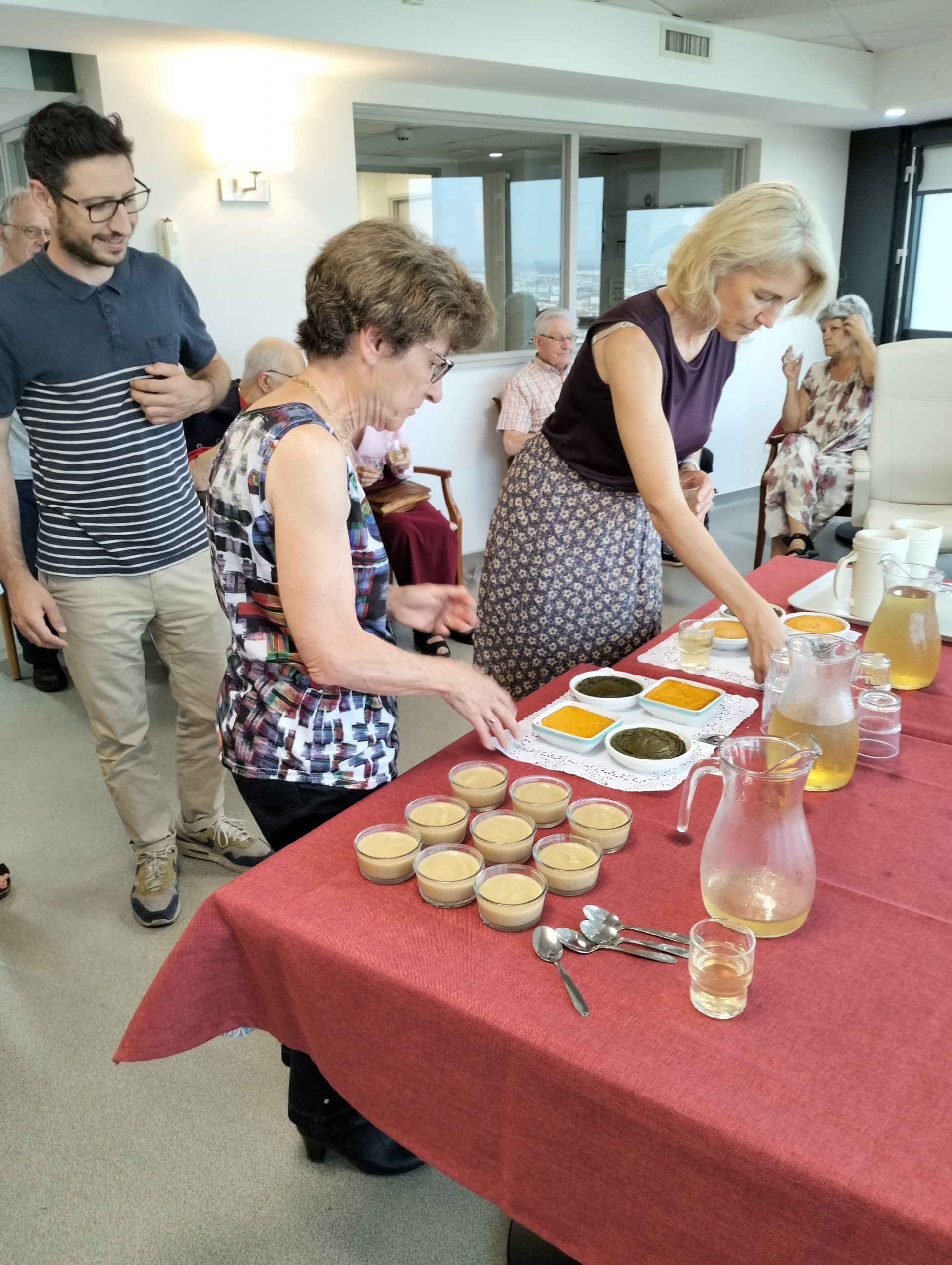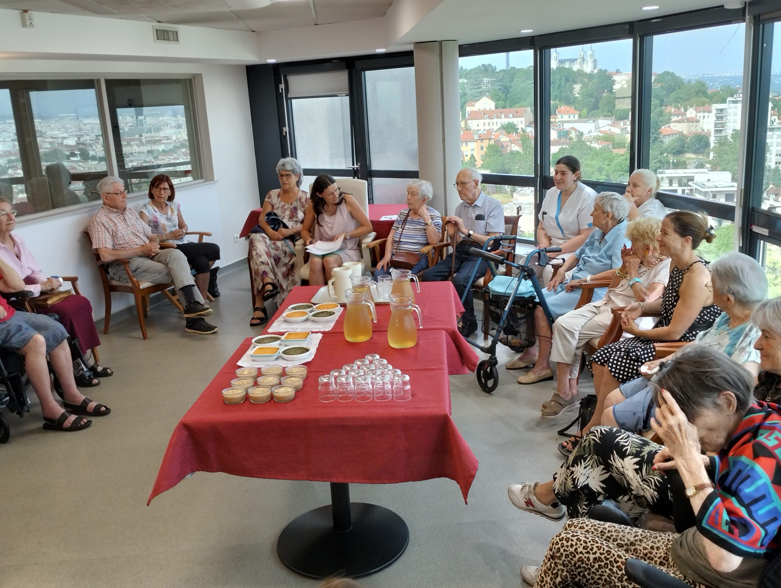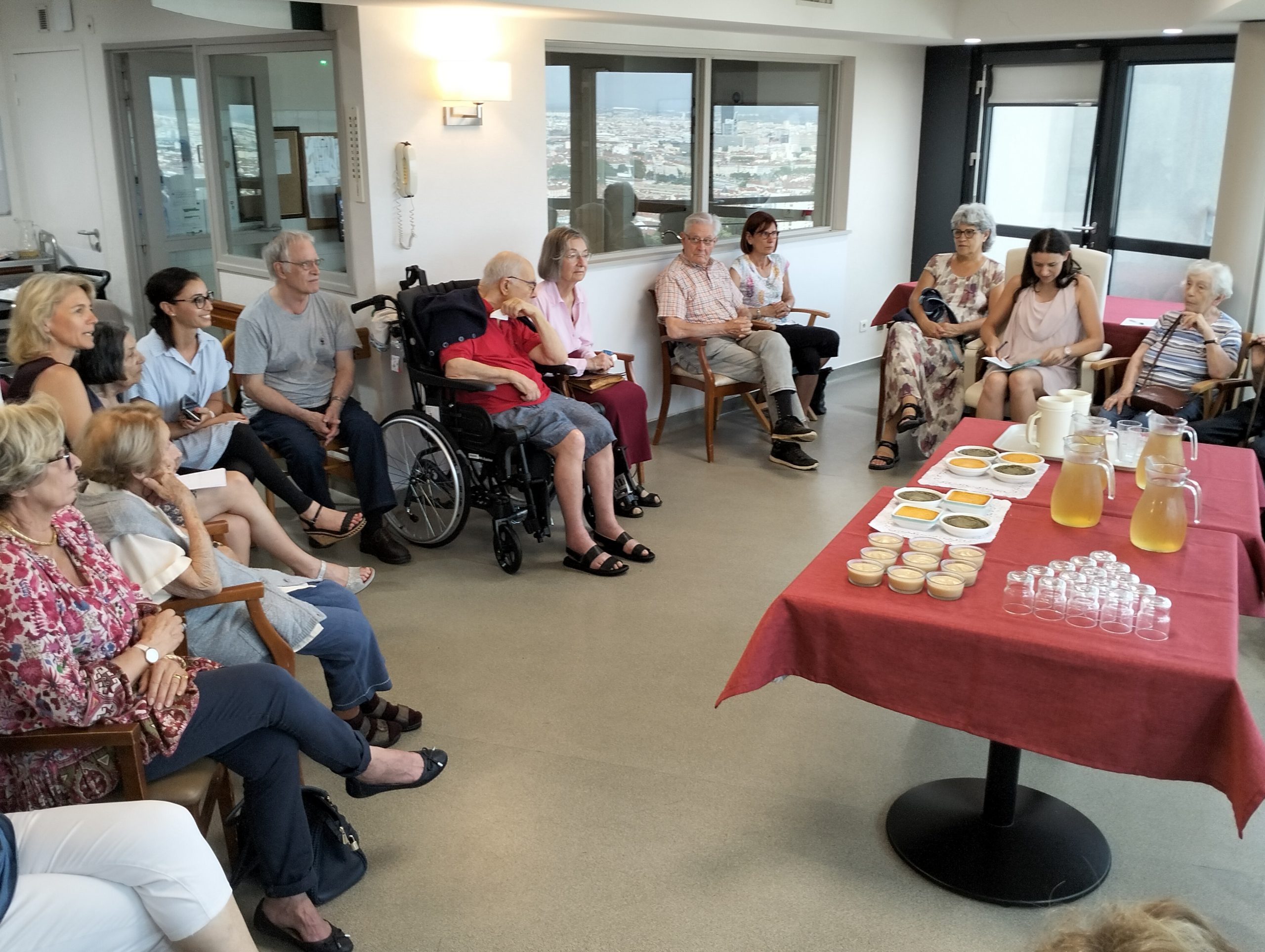 Après le 1er, 2ème et 3ème étage, le mercredi 21 juin, nous avons réalisé la réunion des familles des résidents du 4ème étage. Beaucoup de proches étaient présents. Nous avons échangé sur de nombreux sujets : présentation de la nouvelle responsable hôtelière – équipe en place au 4ème étage – Plan de Continuité d’Activité sur l’été – campagne annuelle des enquêtes de satisfaction résidents et familles du 1er juin au 30 juin 2023 – mise en place des nouvelles nappes et serviettes de tables dans la salle à manger de l’étage – nouveau mobilier en commande – nouvelle signalétique intérieure et extérieure – barbecues dans le parc et sorties extérieures – livraison des nouveaux lits et matelas le lundi 12 juin – formation des équipes – mise en place de nouveaux horaires en lingerie – enquête dénutrition et plan canicule. Nous avons réalisé un tour de table afin que chacun puisse s’exprimer. Des échanges constructifs avec à la fin de la réunion, une collation avec notamment la dégustation de plats mixés.