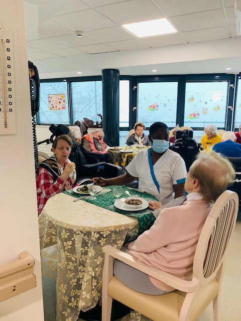 Pour le déjeuner du 1er janvier 2022, les équipes de l’unité protégée ont rapproché les tables pour plus de convivialité.