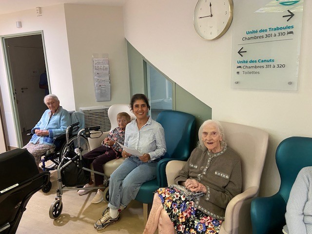 Chaque semaine, les résidents ont rendez-vous avec l’actualité lors d’un atelier convivial intitulé « revue de presse ». Animé par l’animatrice, ce moment d’échange permet à chacun de rester connecté au monde, tout en partageant ses opinions, ses souvenirs et ses émotions.