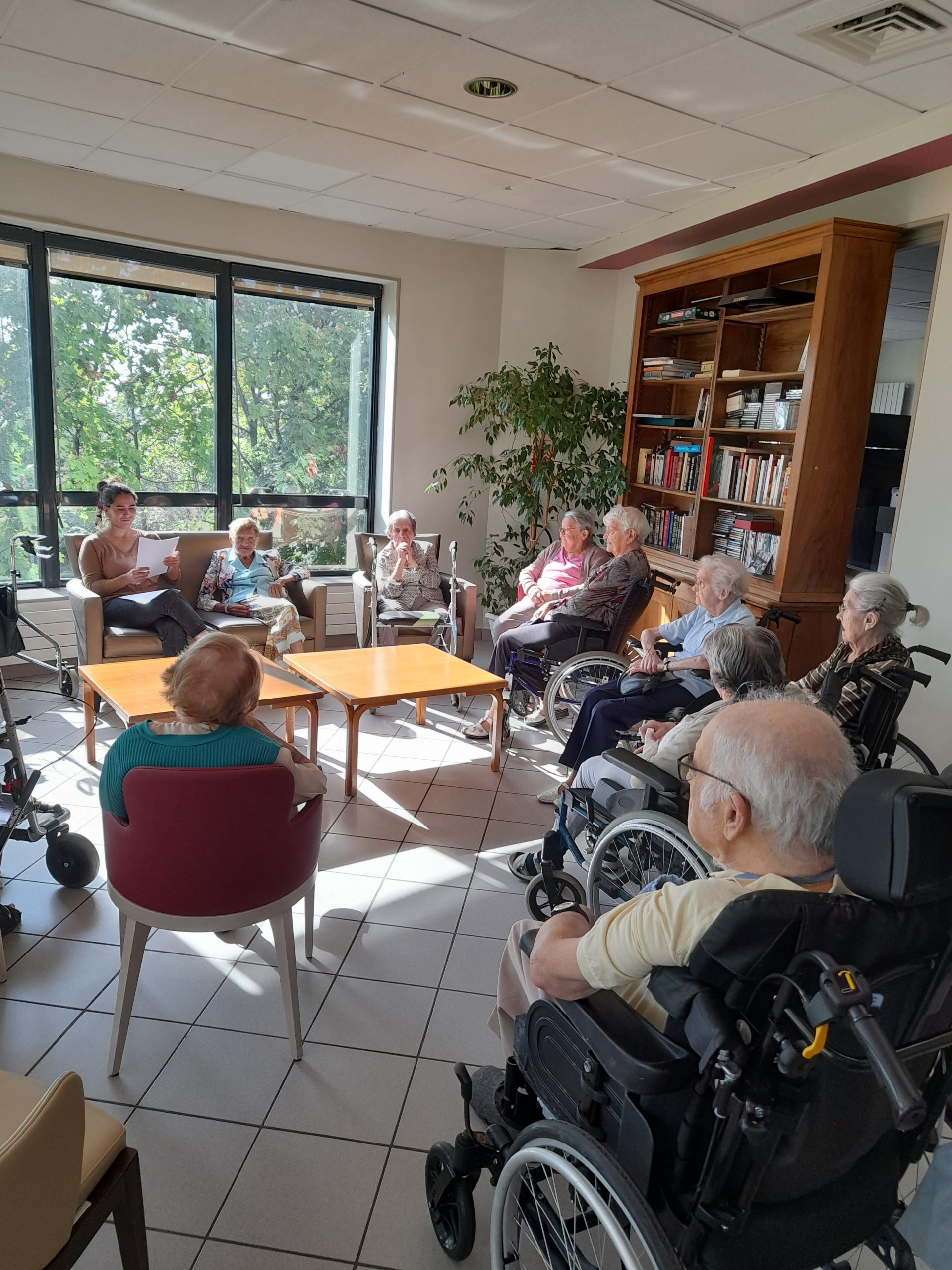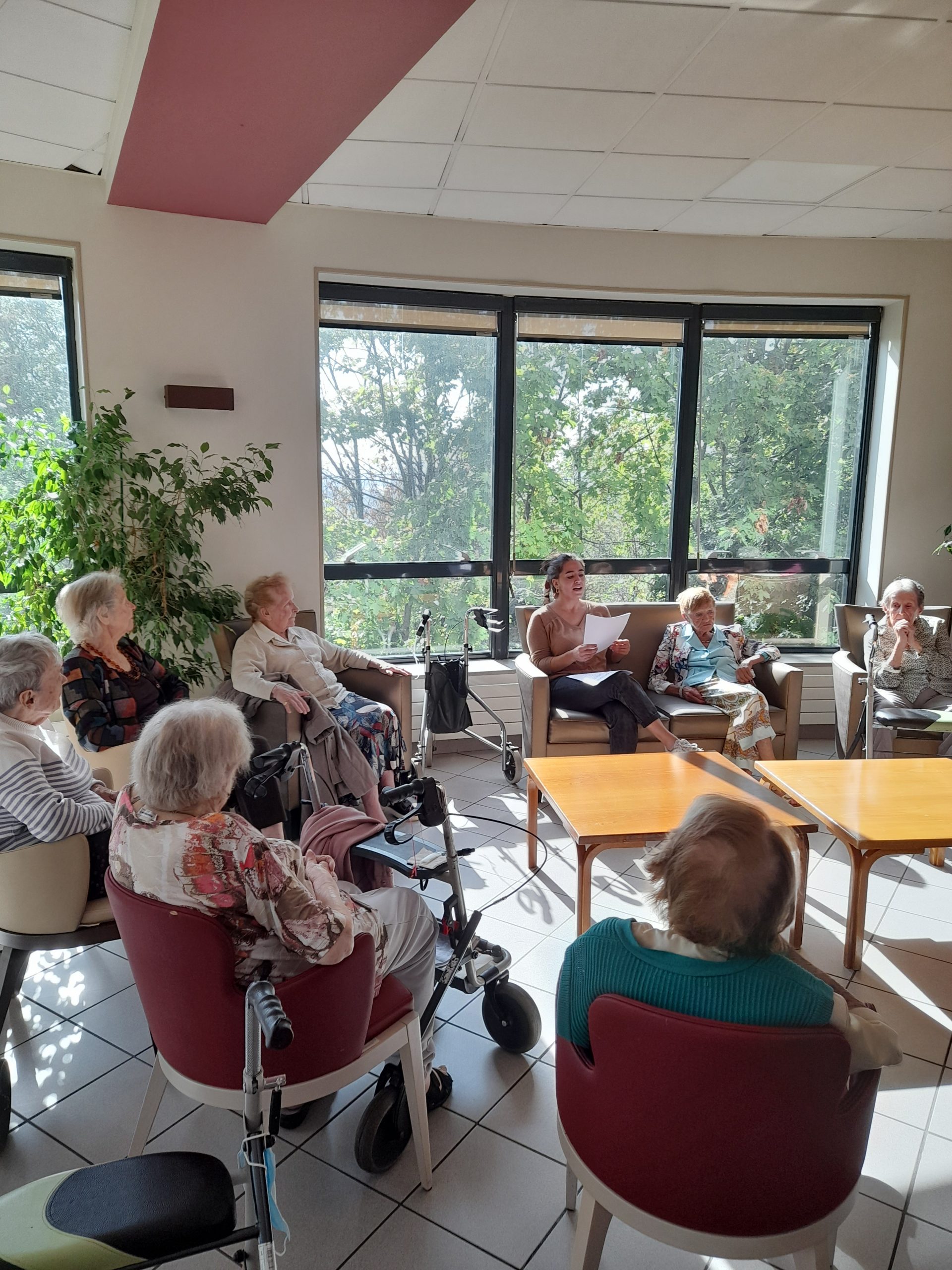 Tous les jeudis matins, Clara réalise un atelier revue de presse dans le salon du Framboisier. Autour d’une boisson chaude, les résidents discutent de l’actualité. Ce moment de partage est apprécié par les résidents.
