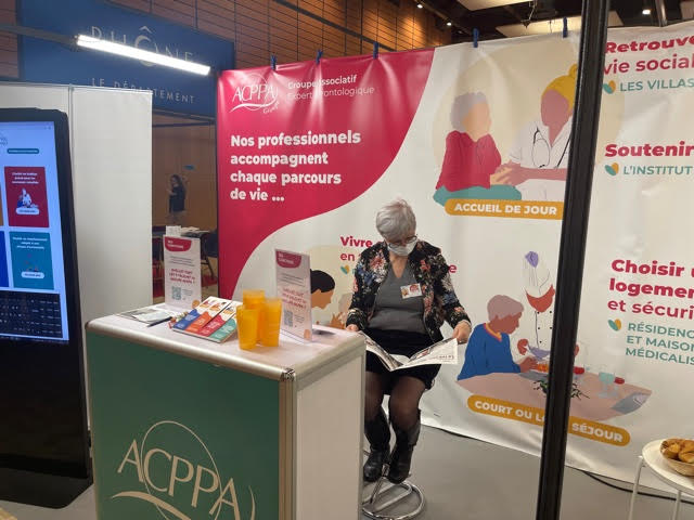 Mme MARCON, notre directrice a tenu jeudi matin le stand du Groupe ACPPA et de Résidom pour présenter leurs expertises et services autour de la personne âgée et des jeunes retraités.