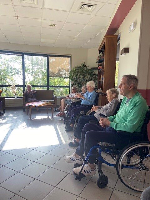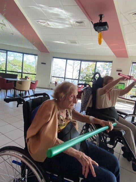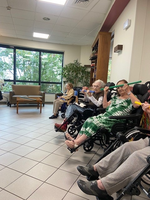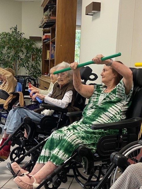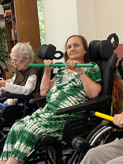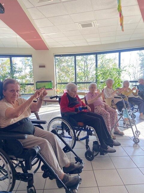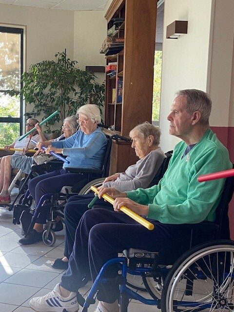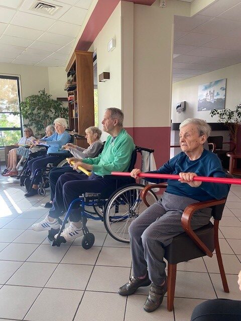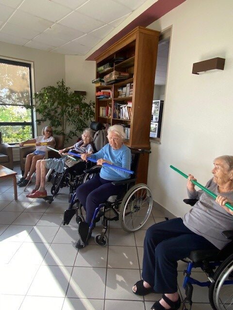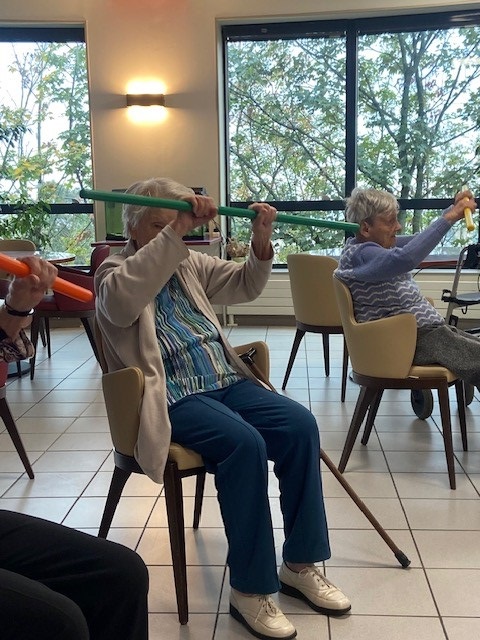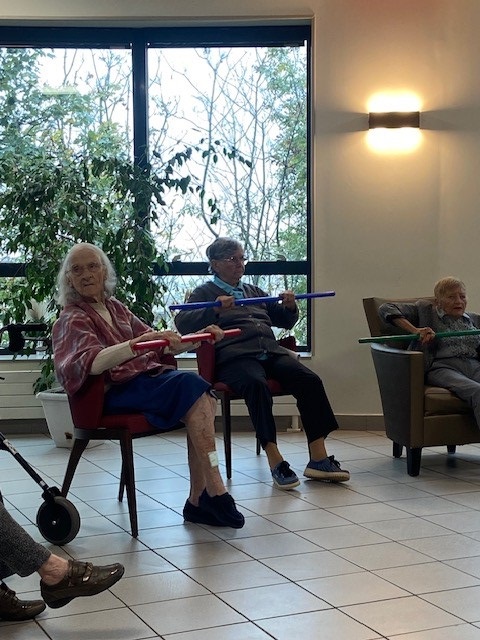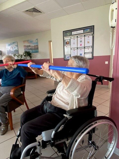 Toutes les semaines, les séances de gymnastique douce animées par Habiba se poursuivent.