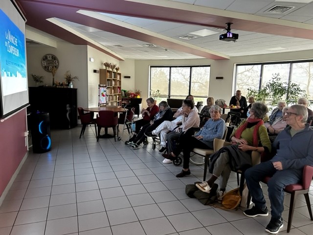 Les samedis aux Amandines, nous projetons un film dans le salon du Framboisier. Merci aux soignants qui accompagnent les résidents intéressés. Plusieurs familles sont souvent présentes.