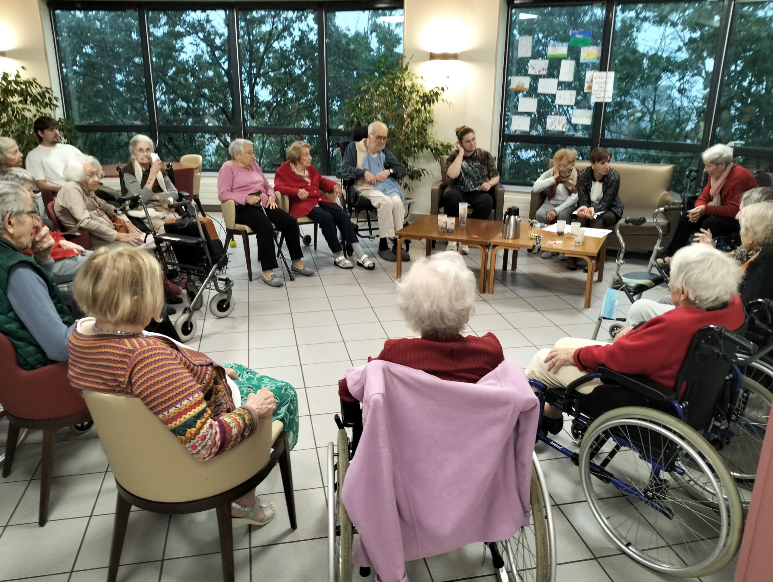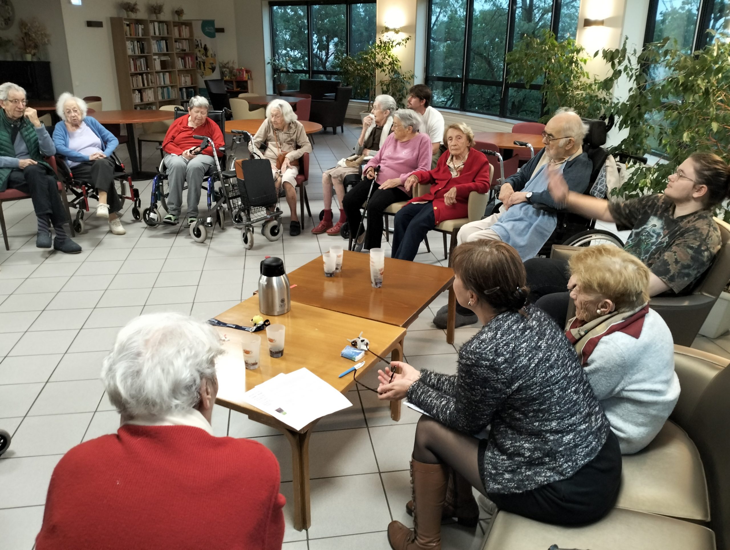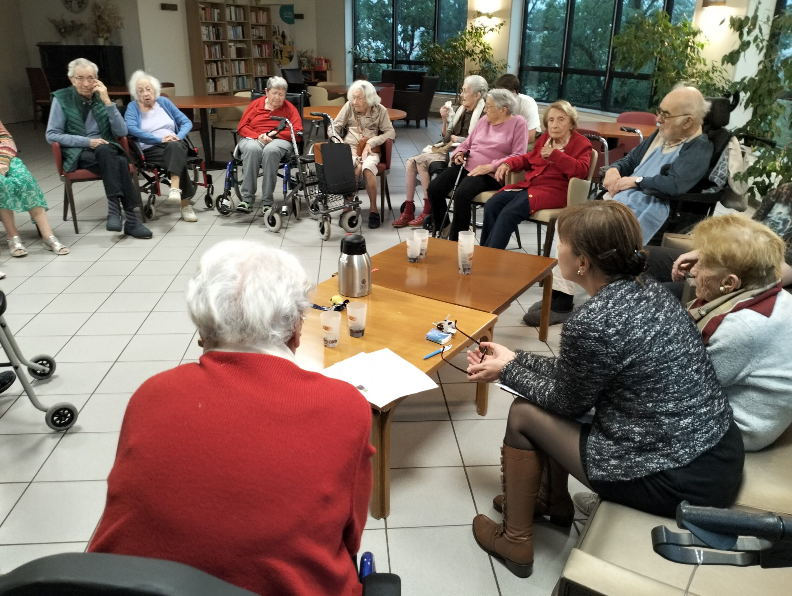 Mme LAVALLE, la psychologue des Amandines est intervenue lors des revues de presse animées par Clara les jeudis matins pour sensibiliser les résidents à leurs droits en EHPAD. Cette présentation a amené de nombreux sujets de discussions et d’échanges entre les résidents présents.