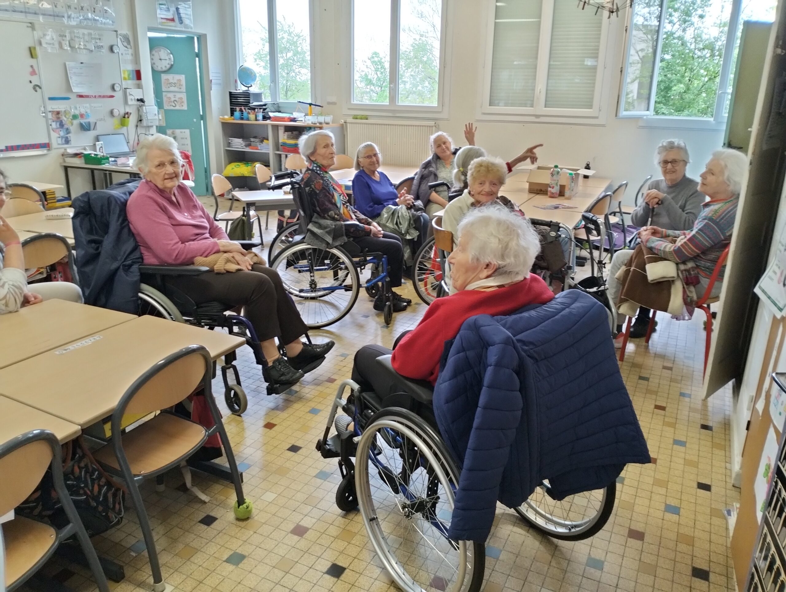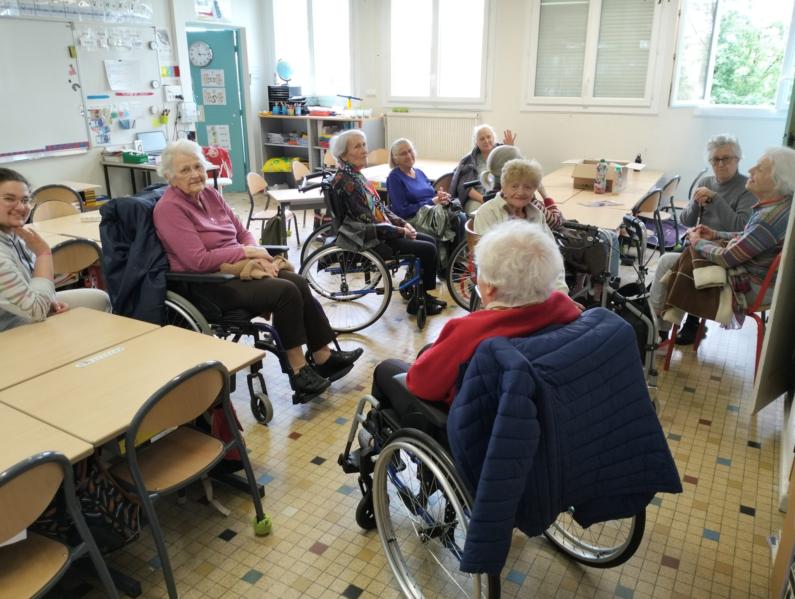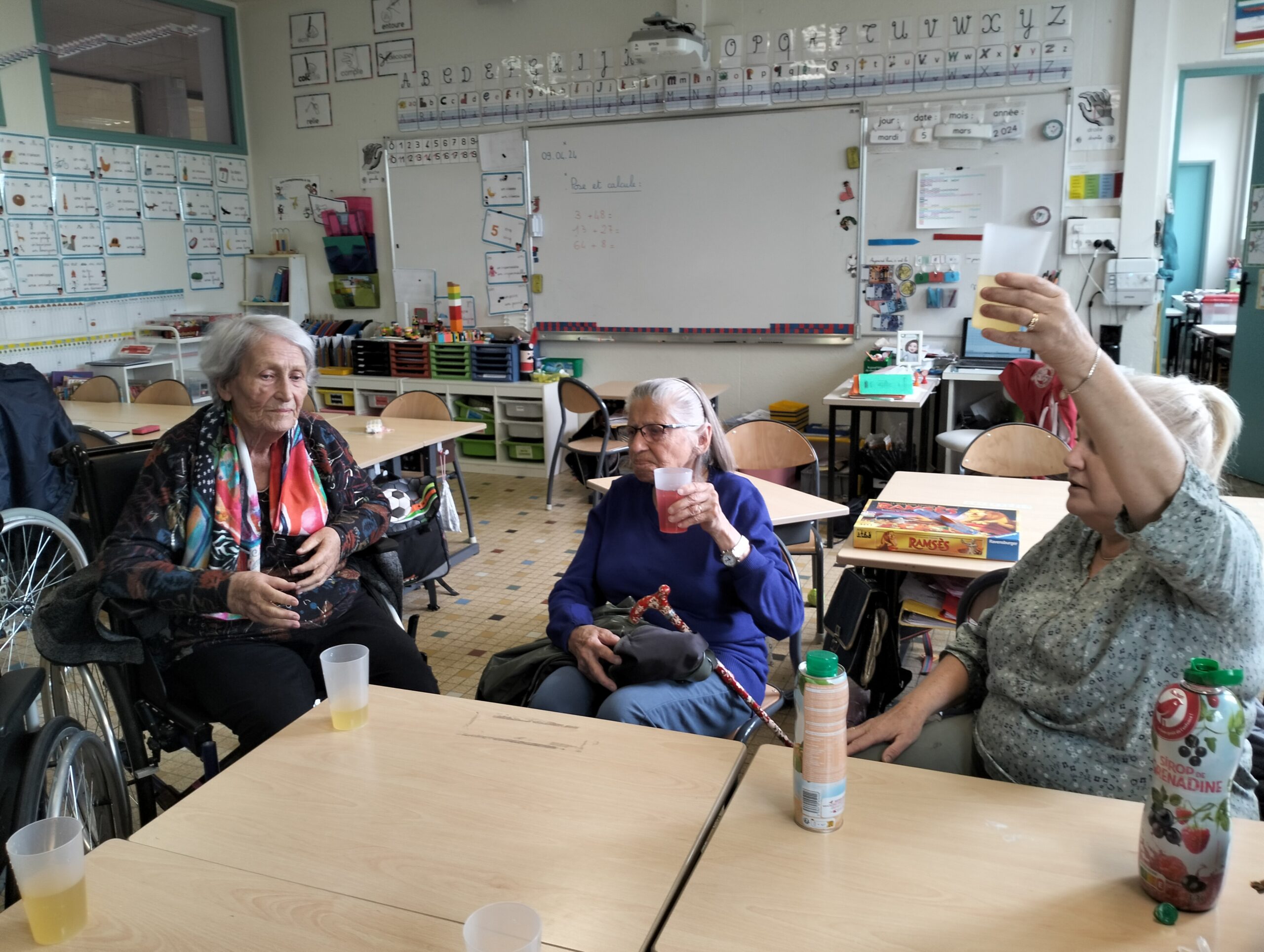 Les classes élémentaires de St Ursule ont invité les résidents des Amandines pour un après-midi jeux de société avec eux. Les résidentes se sont repartis dans quatre classes pour participer et faire des jeux, jeux de connaissances, jeux de culture générale, jeux de manipulations. Les résidents étaient très contents de rencontrer ces jeunes même si ils les ont trouvés quand même un peu bruyant.