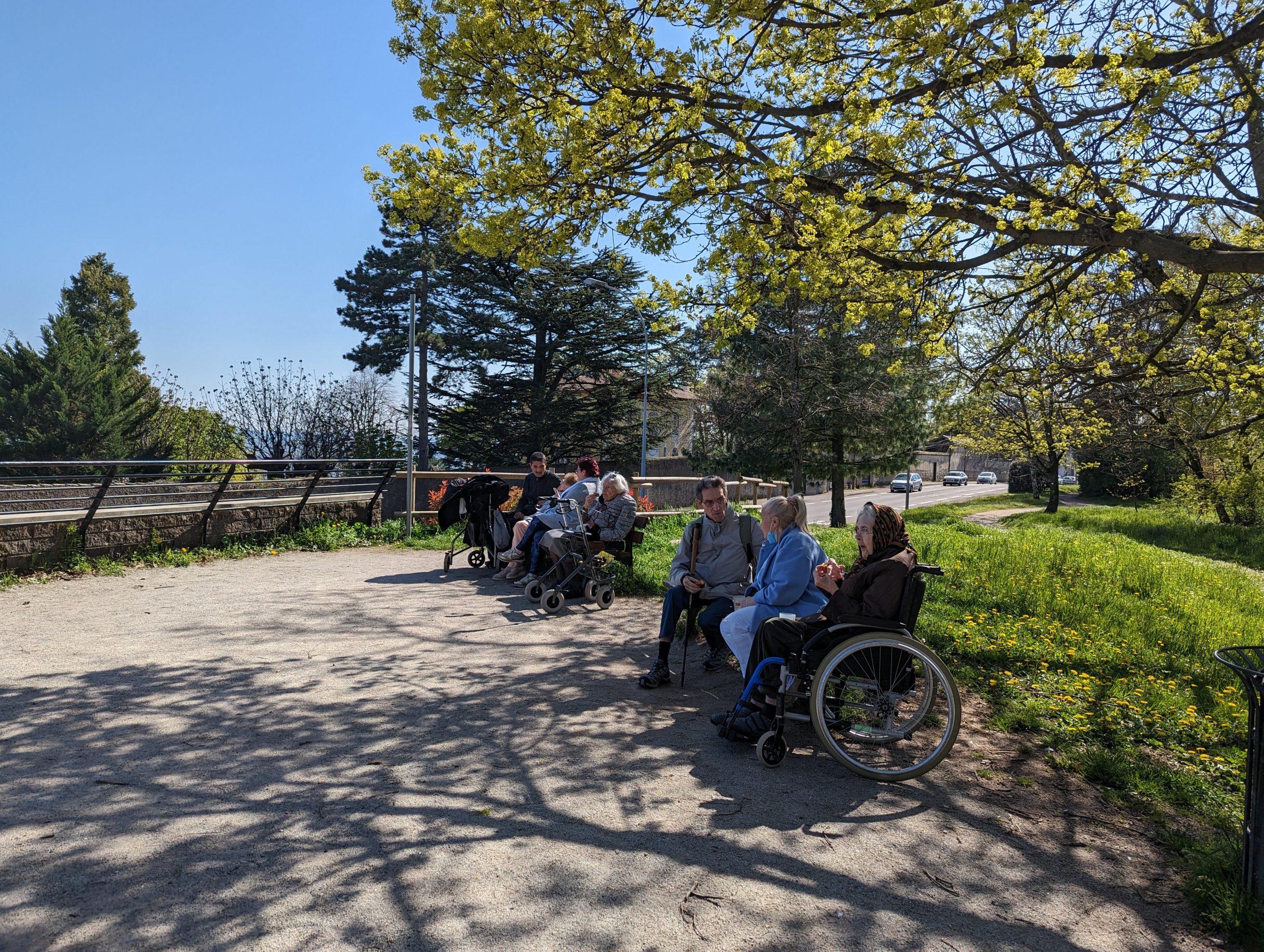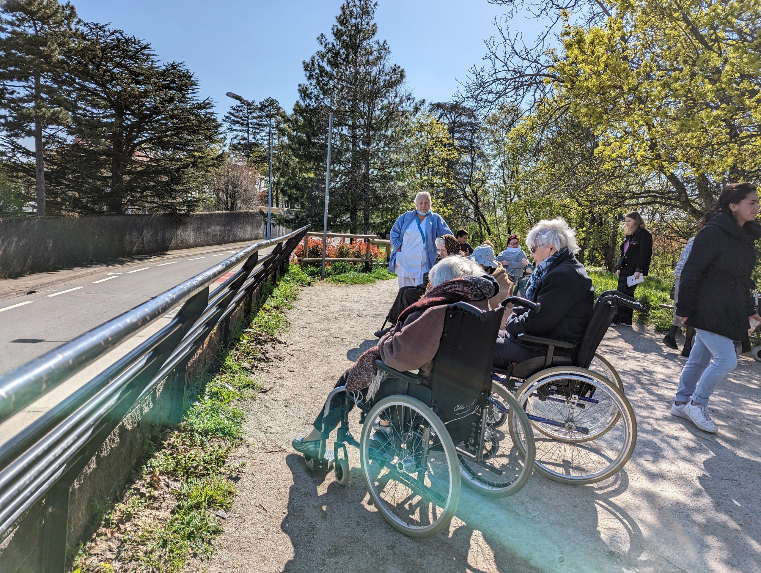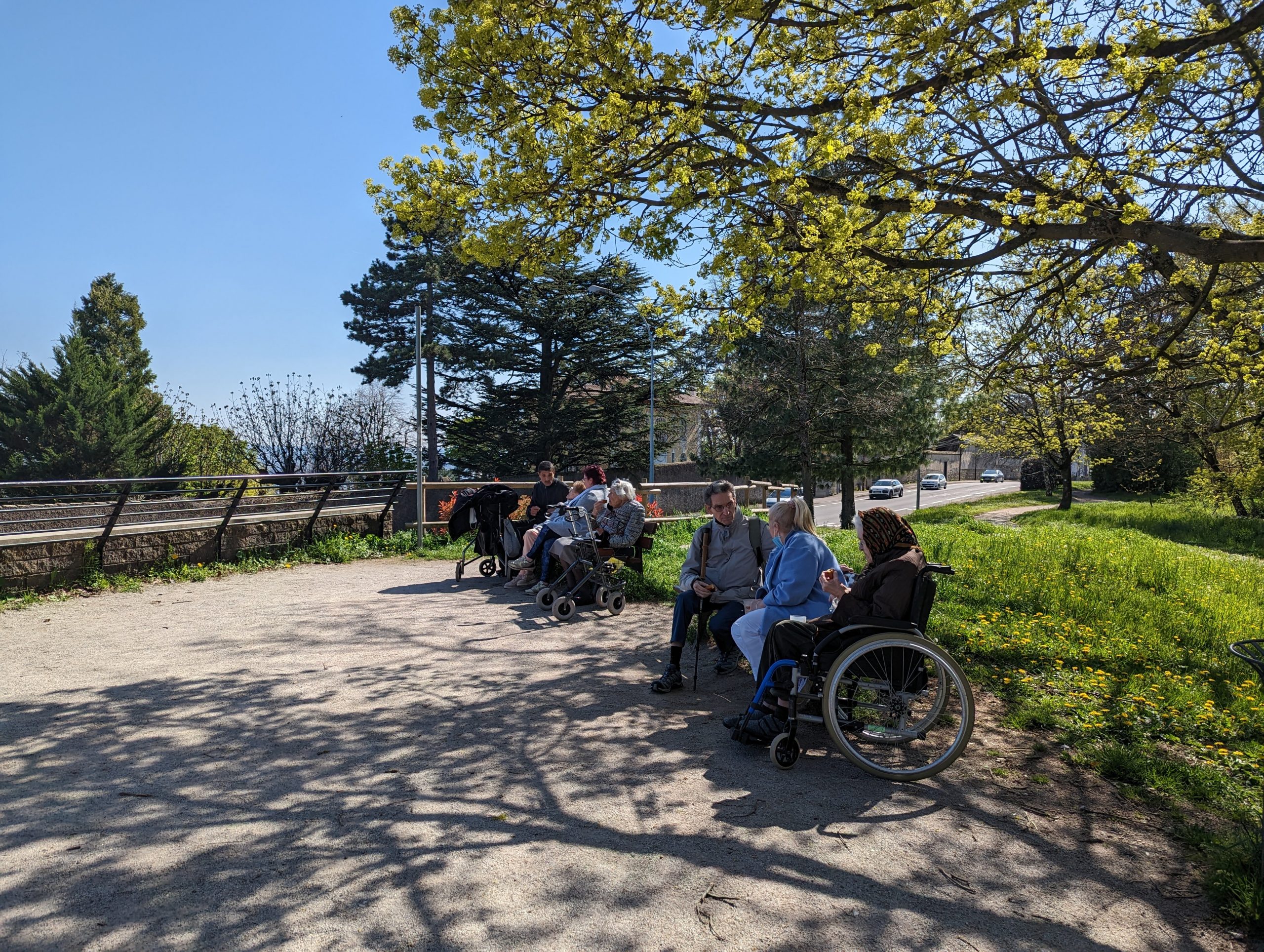 Mercredi 5 avril, les résidents ont profité du ciel bleu pour sortir au parc du Brûlet à St-Foy-Les-Lyon et se réchauffer au soleil. Après une belle ballade et beaucoup d’effort, les résidents ont admiré le panorama de Lyon et apprécié le bon goûter préparé par les cuisiniers des Amandines. Les résidents ont été heureux de retourner dans ce quartier où certains y ont habité. Merci aux différents accompagnants présents pour cette sortie.