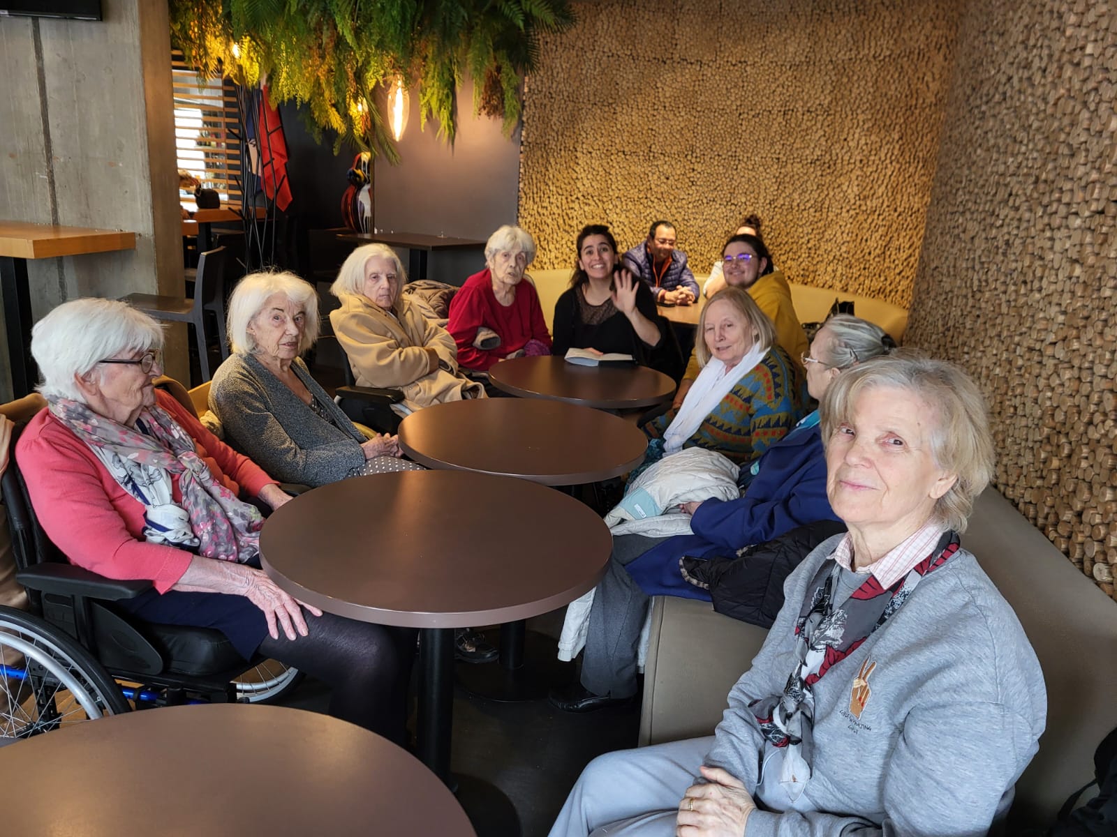 Les résidents de l’UPDP ont profité d’un après-midi ensoleillé pour aller goûter à Tassin dans un café. Accompagnés de Clara, Elisabeth, Arthur, Alexandre et la soignante de l’étage Thérèse, les résidents ont passé un moment convivial et gourmand avec des gaufres. Merci à la famille accompagnatrice qui nous a bien aidé.