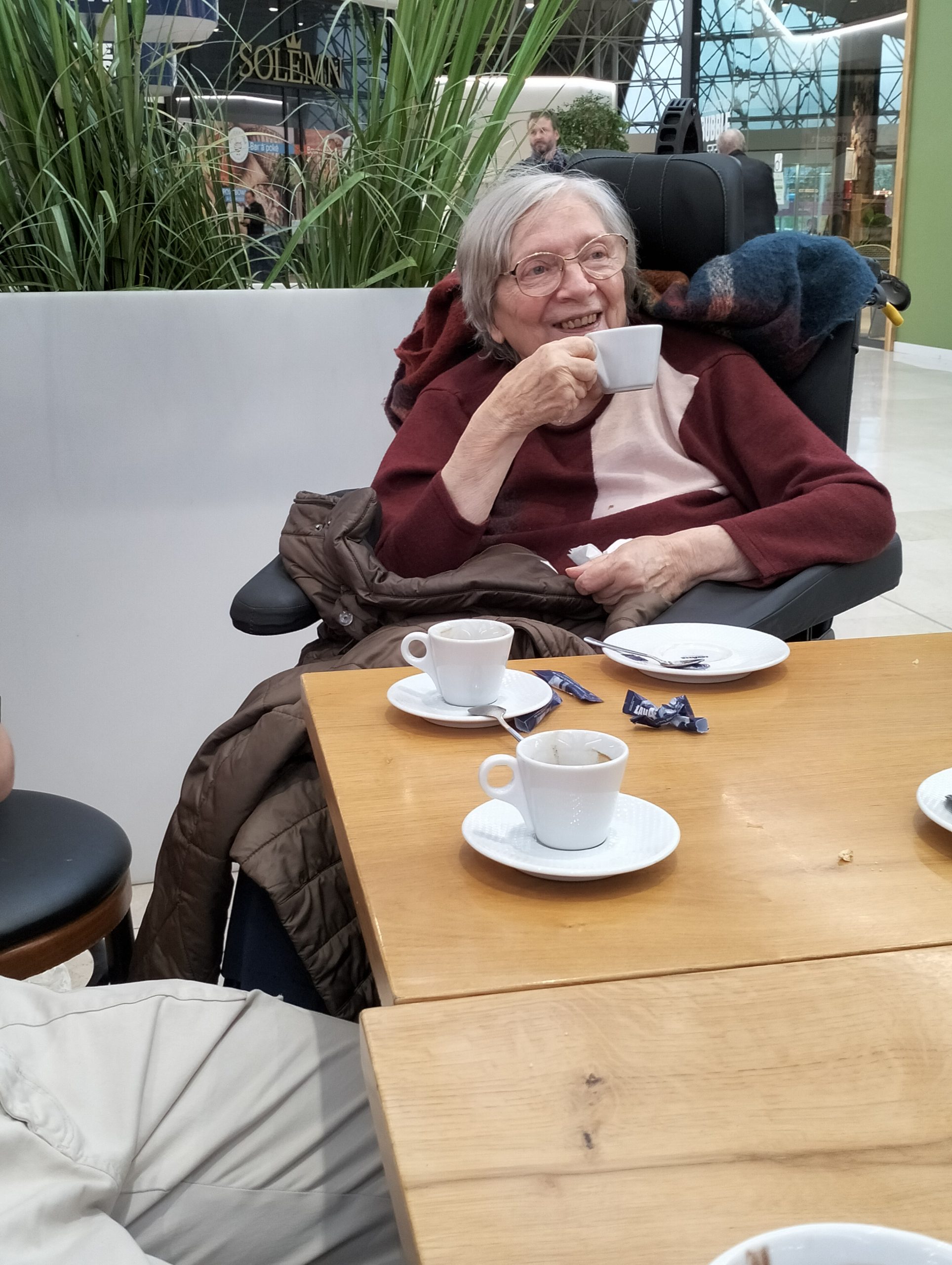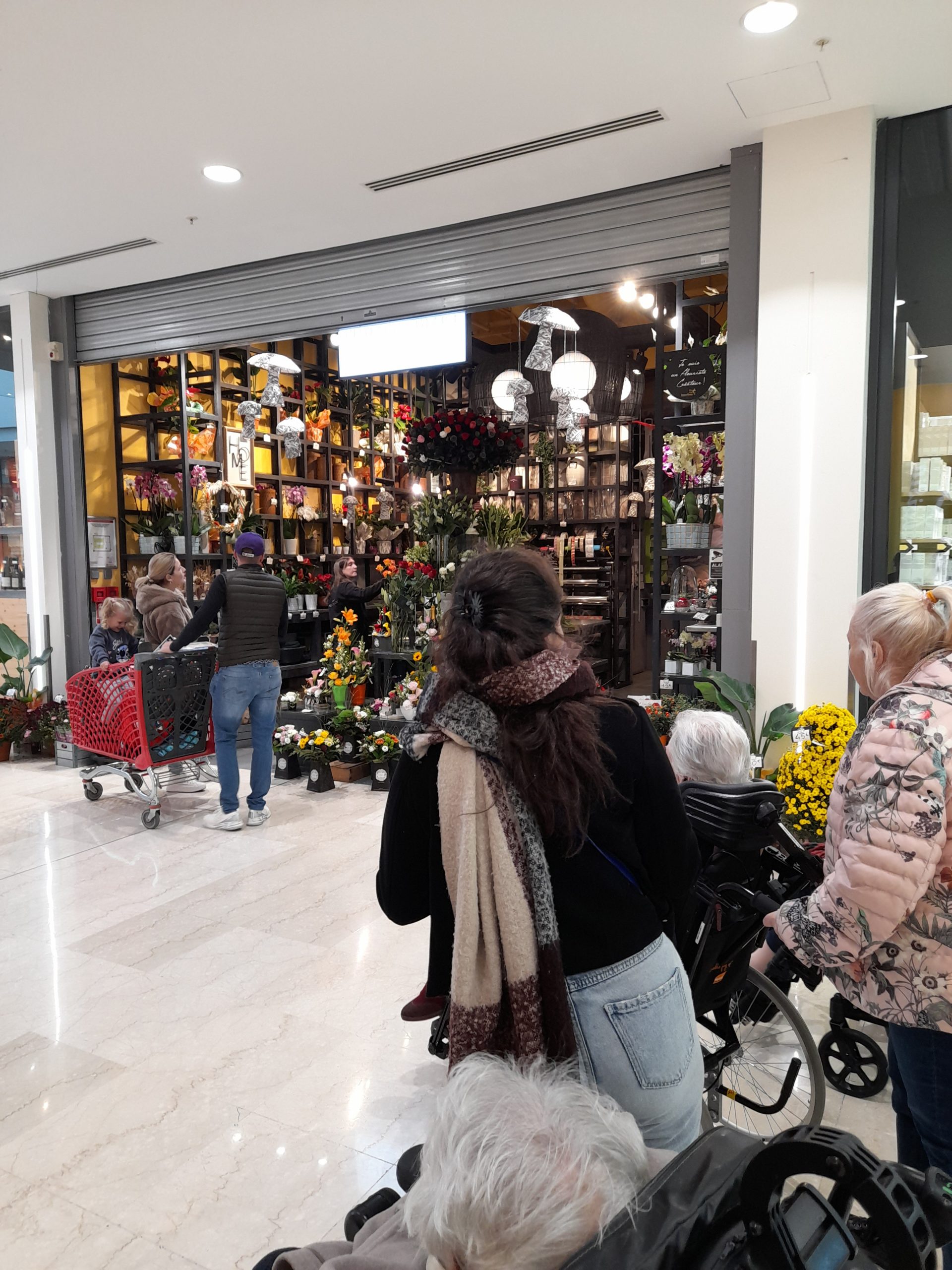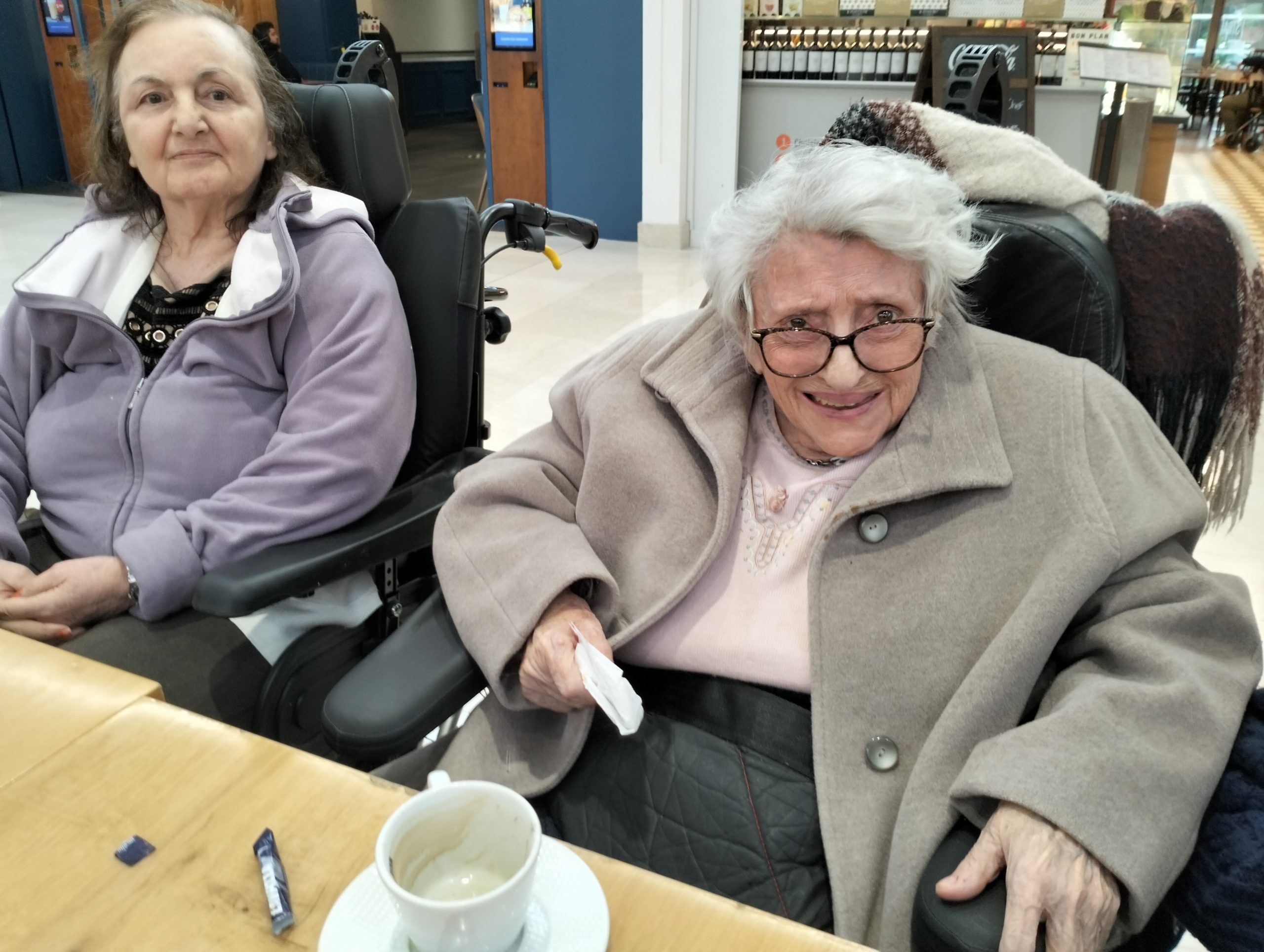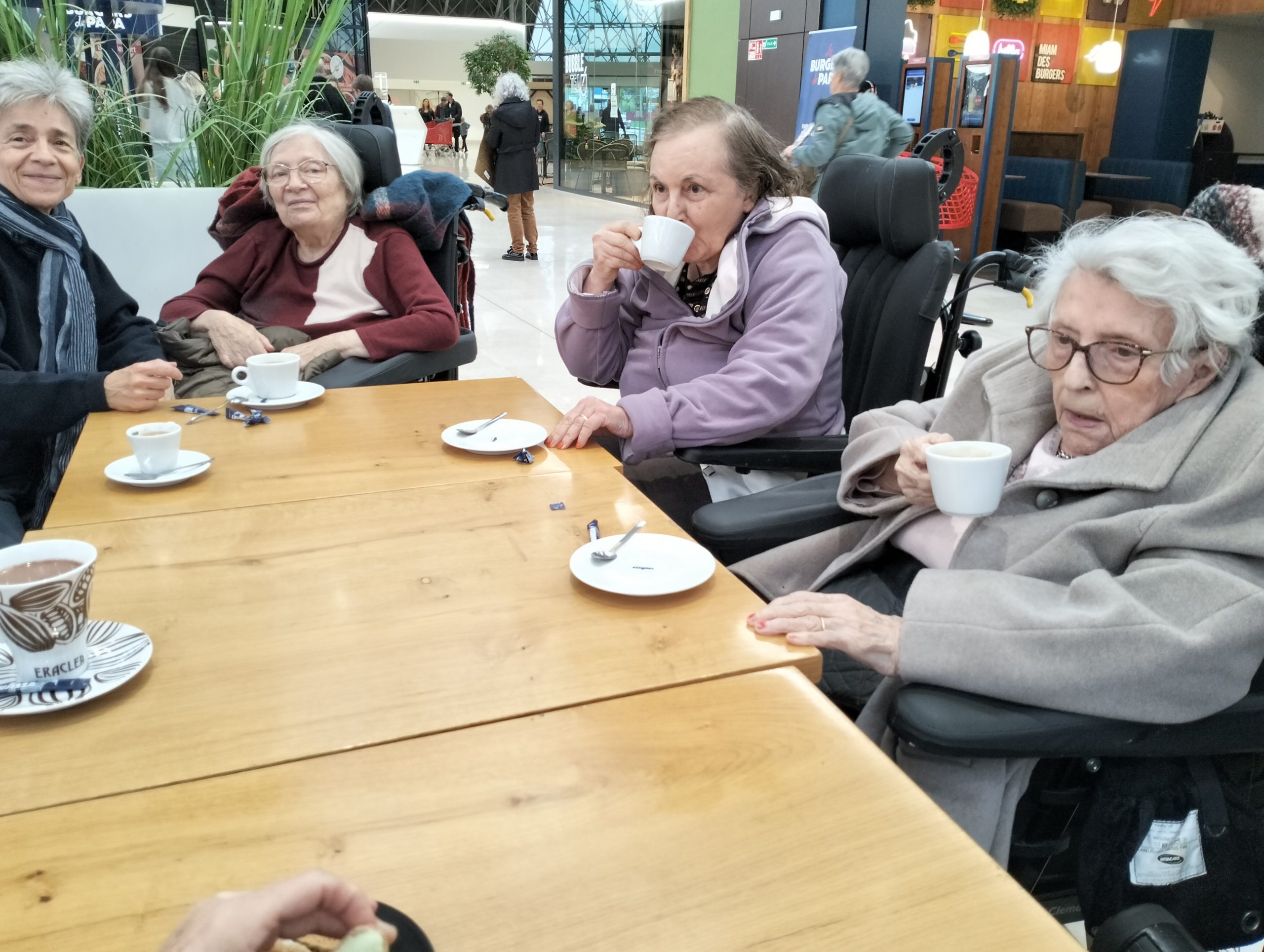 Régulièrement, nous louons un véhicule adapté pour permettre aux résidents en fauteuil confort sans appuis de pouvoir sortir. Jeudi 2 novembre, un groupe de résidentes accompagnées d’une famille, d’Elisabeth, de Clara et du binôme en service civique Arthur et Alexandre sont sortis dans une galerie marchande. Au programme, balade et découverte des magasins, observation des décorations d’halloween et du début déjà des décorations de Noël. Pour finir leur tour, ils ont fait une pause café et gouter. Ce moment a été fortement apprécié des résidentes qui n’avaient plus fait les magasins depuis longtemps et qui étaient contentes de flâner entre les boutiques.