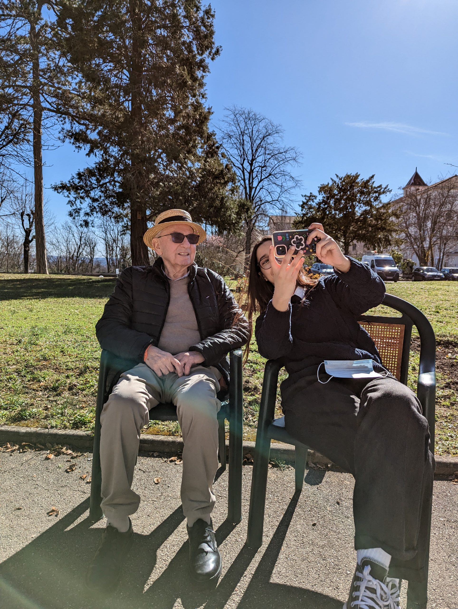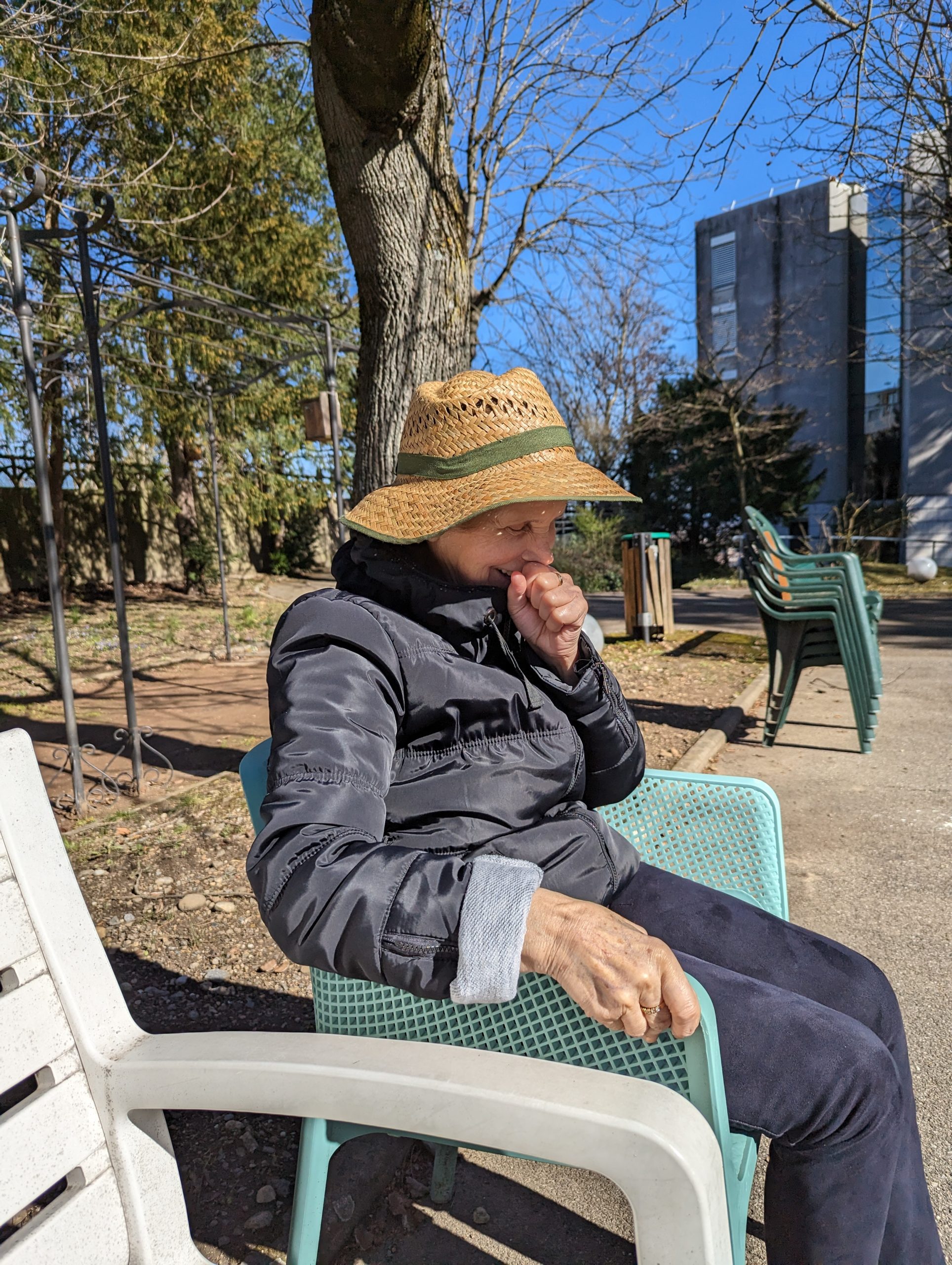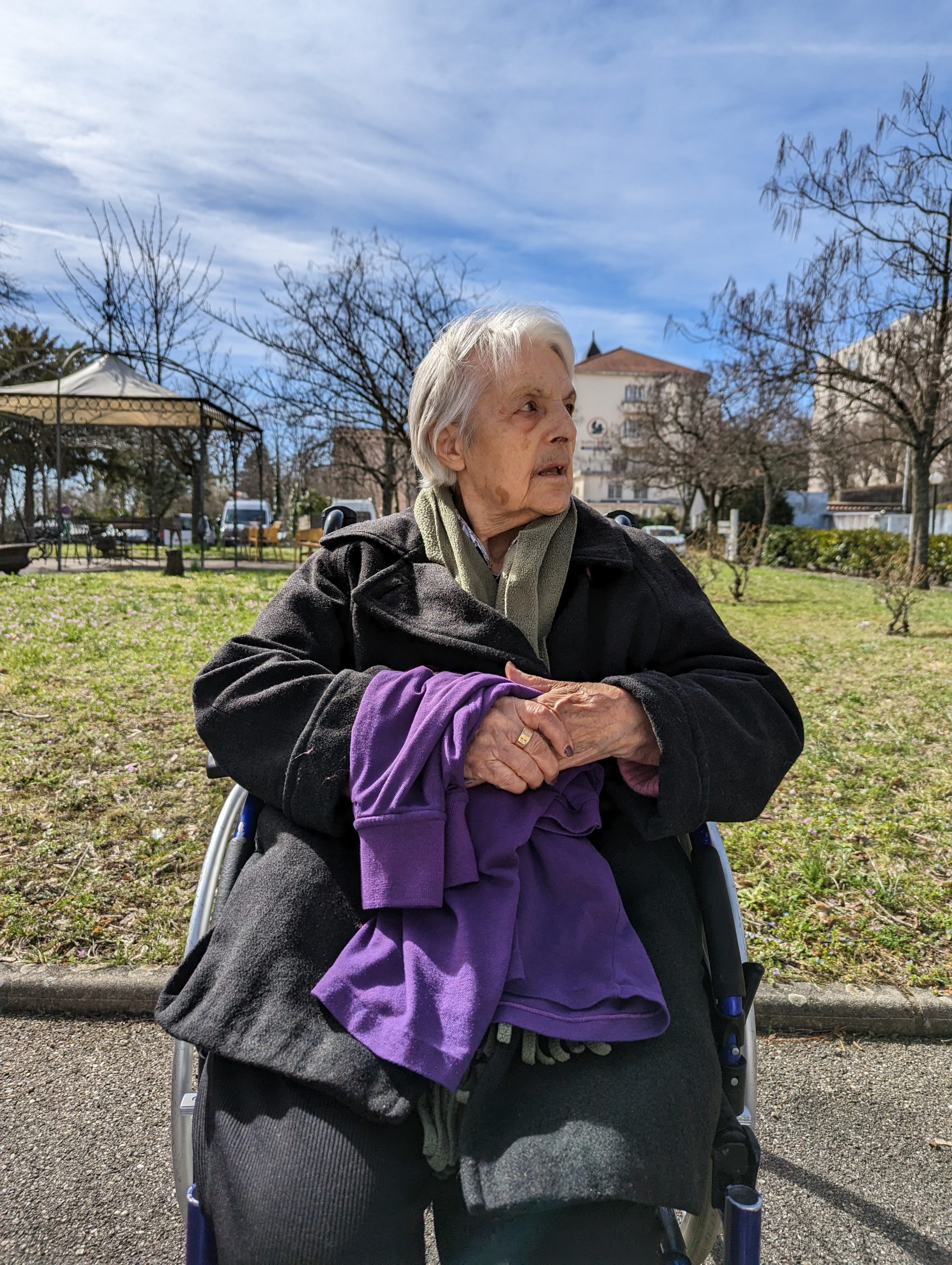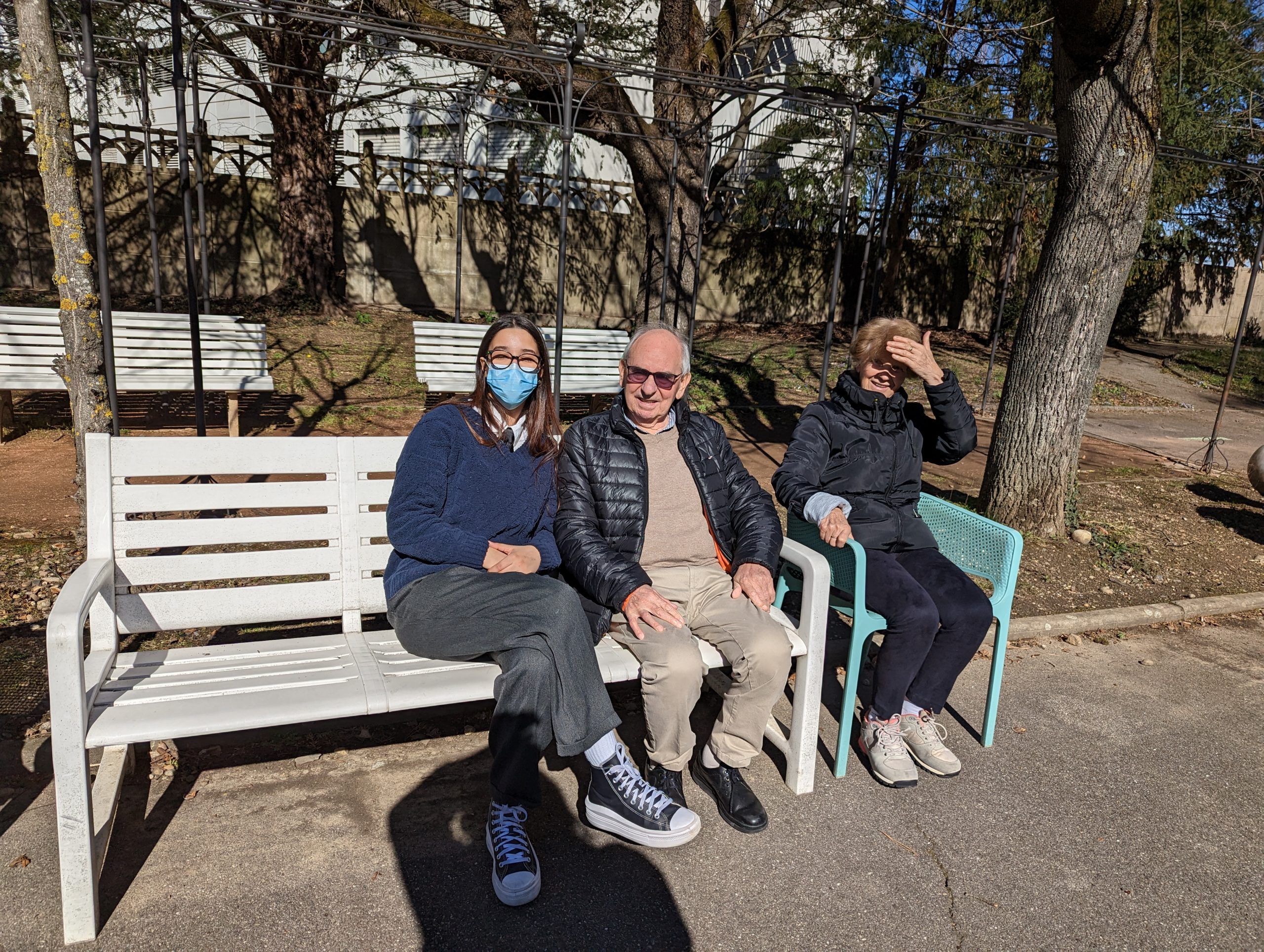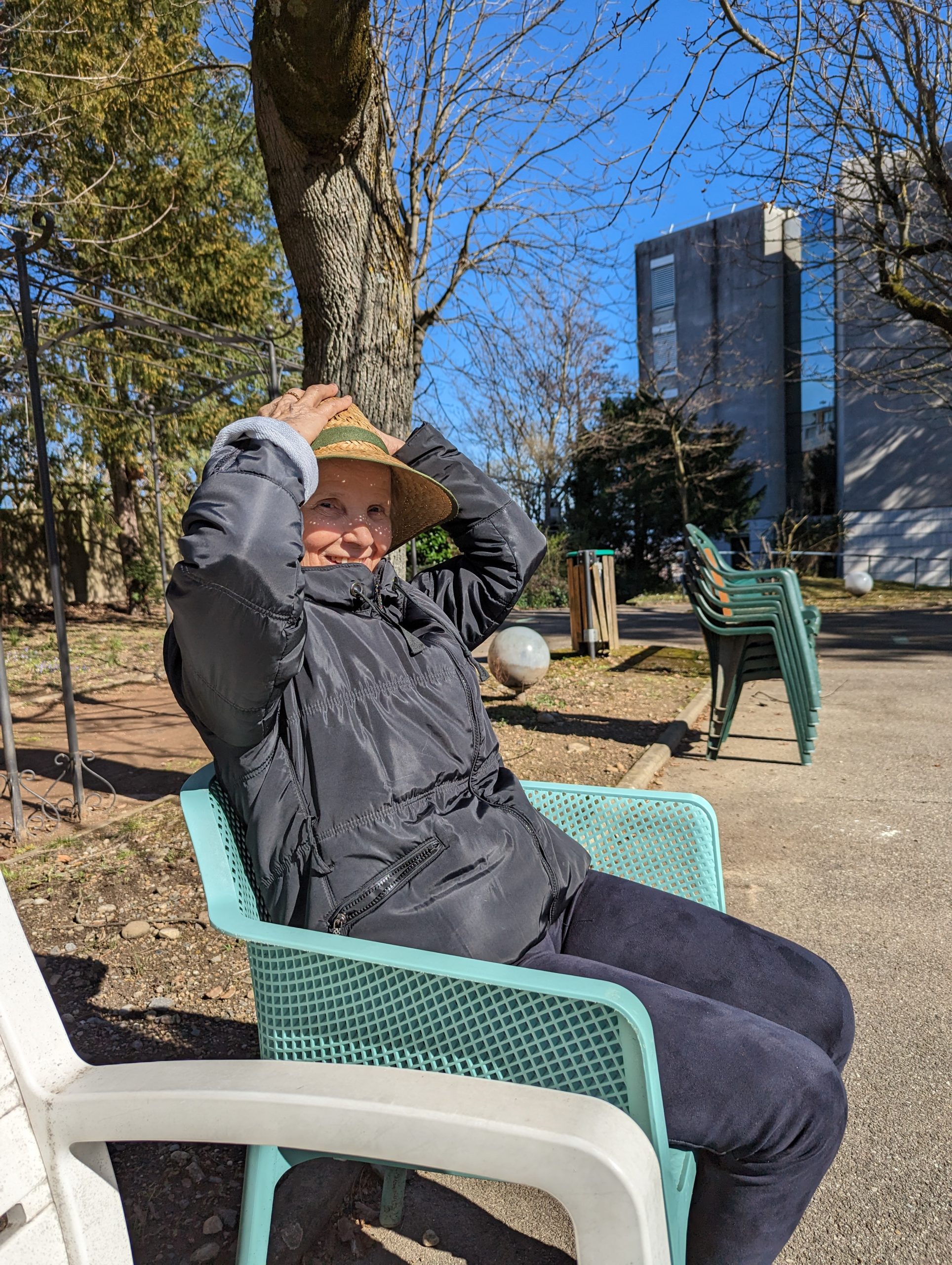 Chloé et Feyza en service civique aux Amandines profitent de l’arrivée des beaux jours pour proposer aux résidents de sortir dans le parc. Entre balade, discussion et jardinage, les résidents sont heureux de ces moments privilégiés qui leur permettent de prendre l’air.